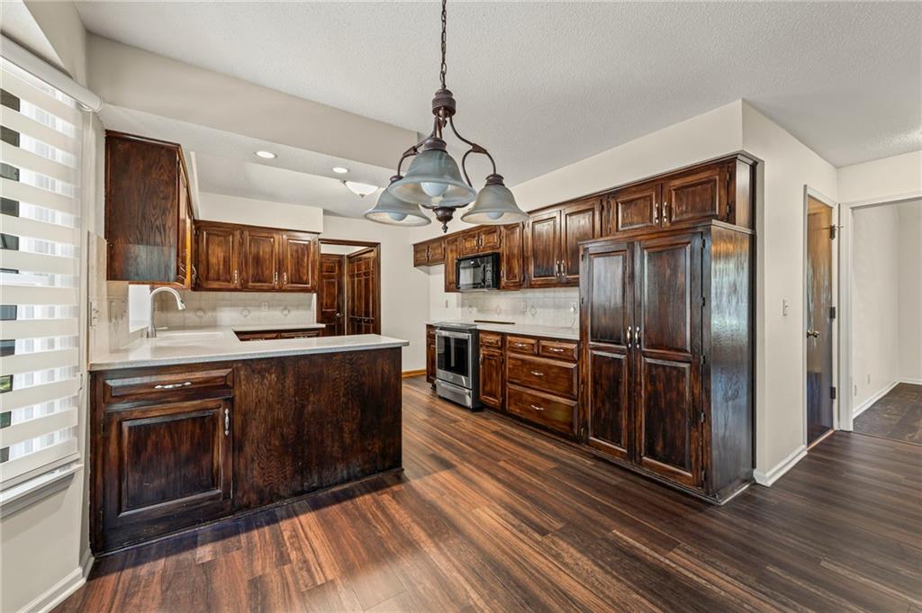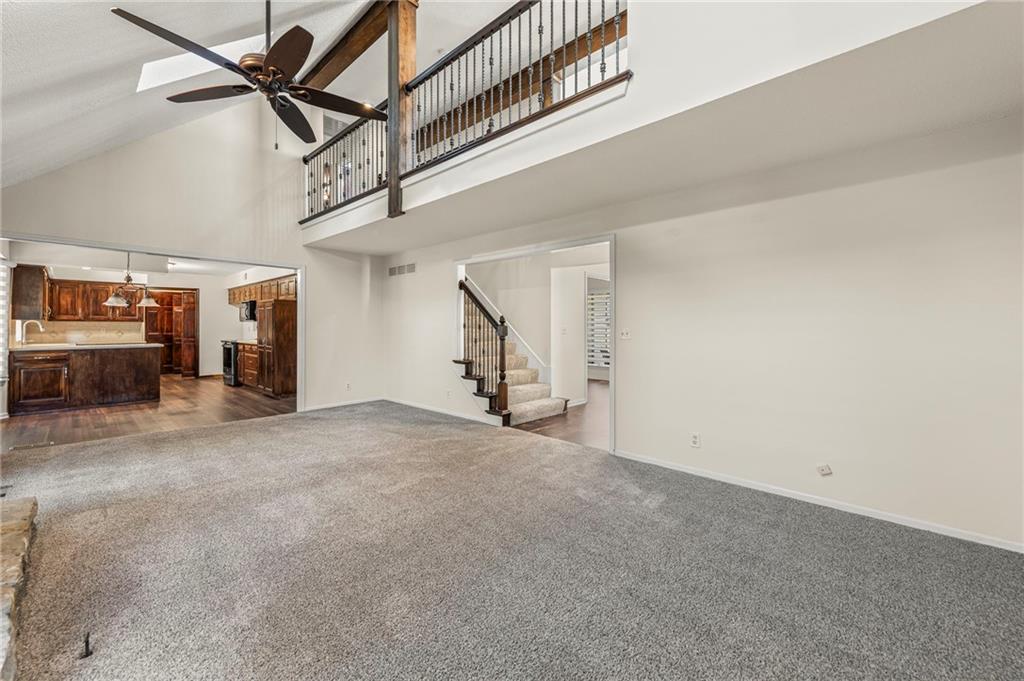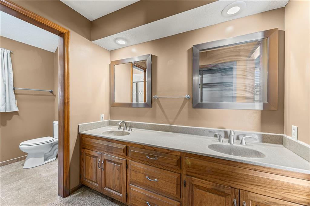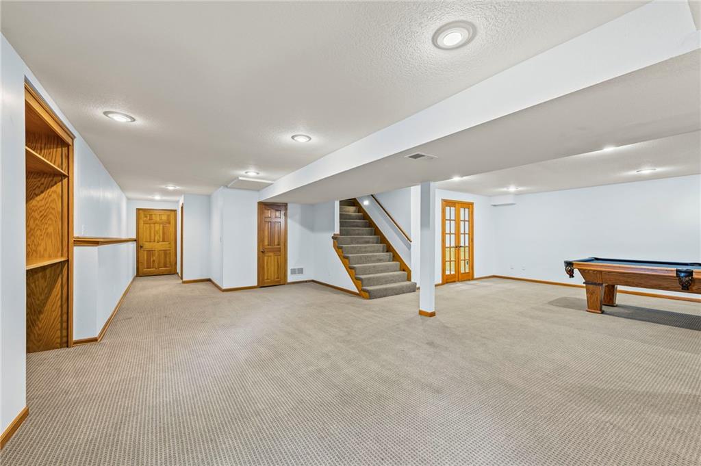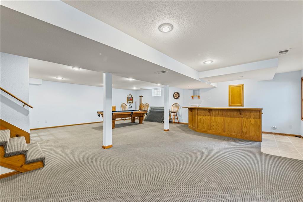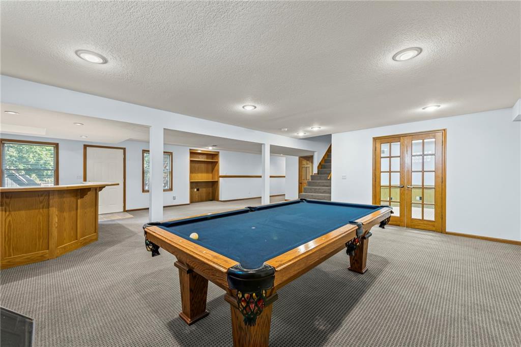 This beautifully maintained 1.5 story home being sold by the original owners in the desirable Summercrest neighborhood is not one to miss! It sits on a quiet street with a blend of young families and long term residents, and is also located in Blue Valley district with easy access to freeways and some of Overland Park's best shopping and food. In addition, Summercrest park at the end of the street with a playground, creek for fishing and walking path, making this an amazing location! On a generous lot, this home offers 4 bedrooms and 3.5 well-appointed bathrooms, ideal for growing families or anyone seeking main floor living. The kitchen boasts plenty of counterspace and ample cabinetry – perfect for whipping up family meals or hosting gatherings. Adjacent, the family room features a cozy stone fireplace inviting memories to be made. Also on the main floor, the primary bedroom offers an en-suite bathroom complete with dual vanities, and walk-in shower. The open concept basement has a recreation room complete with bar for hosting or family time and the pool table is included. Also find a private office on this floor, as well as a convenient walkout to the backyard. Outside, enjoy the fenced backyard, mature trees for shade and patio off the kitchen above – ideal for summer barbecues, gardening, or simply unwinding under the stars.