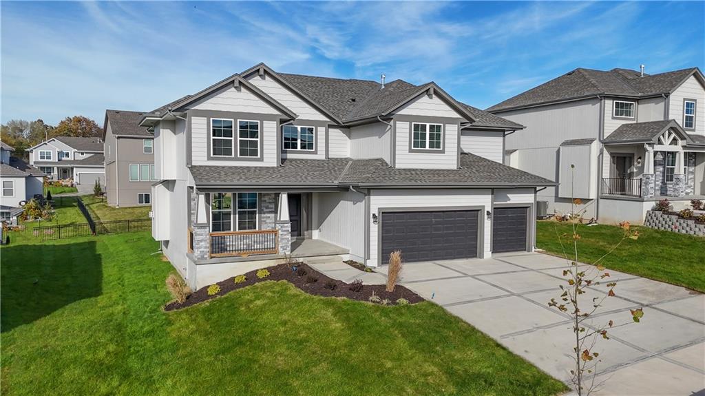 The popular Levi II by Prieb Homes is now available on a beautiful flat lot, with a tentative completion date of November/December 2025. This updated version of the beloved original Levi plan offers expanded square footage and premium upgrades throughout. The open-concept main floor features a spacious kitchen and breakfast area, a larger granite center island with ample seating, and upgraded granite countertops in the kitchen. Kitchen offers soft closet doors and drawers. Enjoy versatile living with a main floor flex room—perfect for a home office or 5th bedroom—plus a mud room with boot bench and entry closet. Upstairs, the expanded master suite boasts a separate sitting area, larger walk-in closet for 2 different sections, and an upgraded primary bath with a freestanding tub. The laundry room has been enhanced with additional workspace, and the open loft with window provides extra living space. Located within walking distance to Lake Olathe, this home also offers access to neighborhood amenities including trails, a pool, and playground. Don’t miss your chance to own this upgraded and spacious home in a prime location!