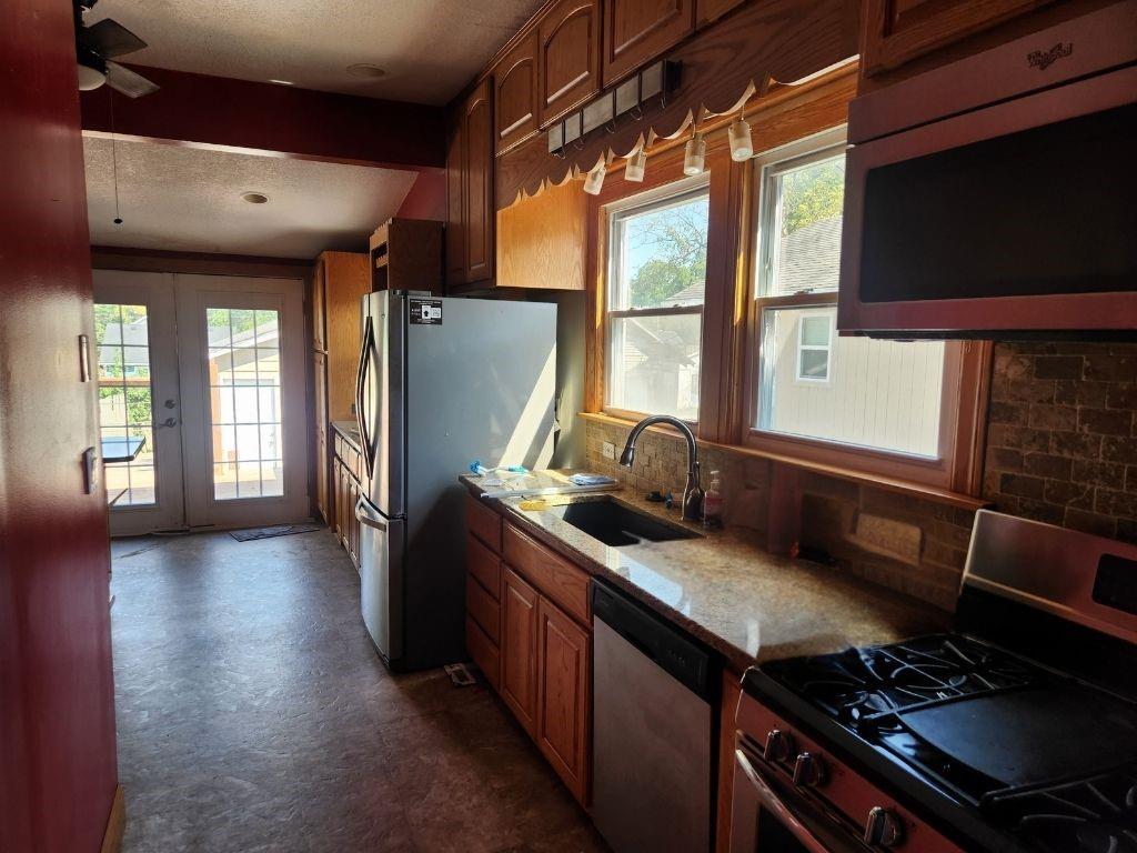 ALL OFFERS CONSIDERED. With a bit of TLC, this 3-Bedroom, 2-Bath 1½-Story Bungalow delivers plenty of charm and old-world character. You’ll love the beautiful original interior doors and hardwood floors throughout the main level. MAJOR UPDATES in the recent pass: 100-amp meter, thermal windows, roof replacement (14 yrs), zoned HVAC (12 yrs), and a 10-year hot water heater—plus a thoughtful kitchen remodel that added a laundry closet sized for stackable or side-by-side units and a convenient island. PRIMARY SUITE: Room for a king-size bed plus a sitting or office area and a large primary bath—your private retreat from the rest of the house. OUTDOOR LIVING: Relax on the covered front porch reminiscent of yesteryear, or host friends on the back deck that’s perfect for a big-screen TV and grill on game day. ULTIMATE GARAGE RETREAT: Oversized detached one-car garage with built-in workbench, separate 100-amp electrical service, extra insulation, overhead doors on both ends, and a separate service door. Open the back garage door to access the fenced yard for kids, pets, projects, or a garden. BONUS SPACE: Full unfinished basement—check the photos! LOCATION: Easy highway access and an easy walk to downtown. HOUSE HACK OPPORTUNITY: Purchase with a plan for repairs and upgrades and apply for Osawatomie’s Neighborhood Revitalization Program, which offers a potential 100% property-tax rebate in the first year and reduced taxes for the next five years when improvements increase value by $15,000 or more (verify with city/county). OWNER-AGENT. BRING ALL OFFERS. Sorry this will not go FHA at this time. Needs some repairs and painting and ownership seasoning.