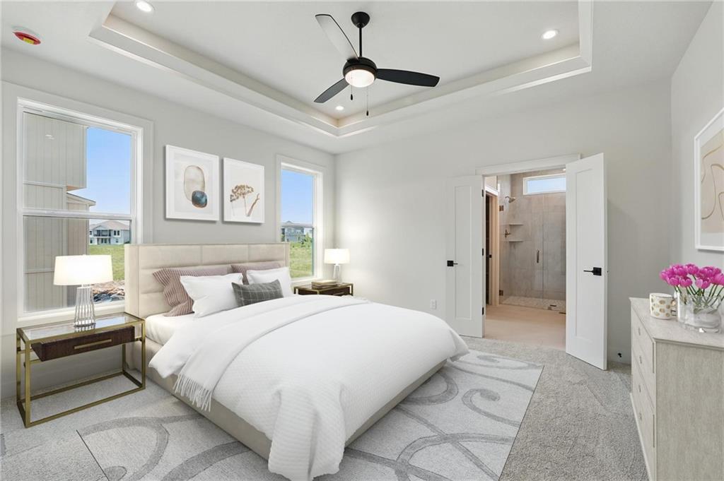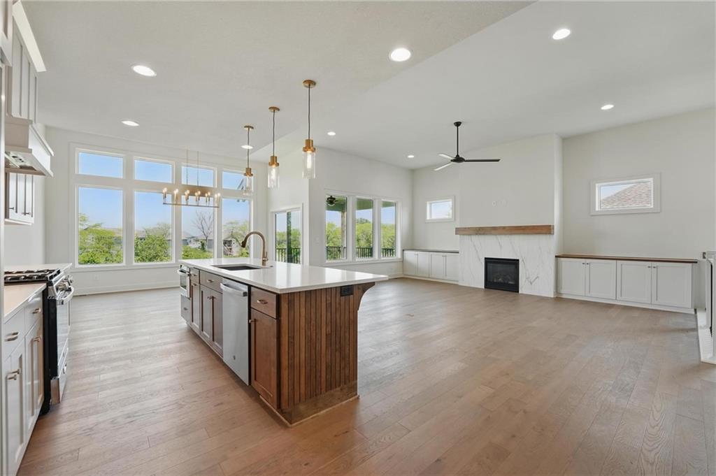 Model Home Now For Sale! New Price & Move In Ready!!! Stunning "Elm II" Ranch/Reverse 1.5 by Aspen Homes in a Prime Location! Discover the perfect blend of luxury and functionality in this Elm II Reverse 1.5, thoughtfully crafted by Aspen Homes. This exceptional home offers a spacious and inviting Great Room with gleaming hardwood floors, custom built-in cabinetry, and an abundance of natural light—creating an open, airy feel ideal for both relaxation and entertaining. The gourmet kitchen is a chef’s dream, featuring custom cabinetry, sleek quartz countertops, a generous walk-in pantry, a stylish designer backsplash, and a high-end gas range for all your culinary creations. Enjoy main-level living with a luxurious primary suite that includes a spa-like primary bath with a walk-in tiled shower, a double vanity, and an expansive walk-in closet. Additionally, the main level includes secondary bedroom and a versatile 3rd bedroom/office space with a stunning feature wall and elegant glass French doors. The finished lower level provides even more living space with plenty of windows and a fabulous wet bar, perfect for hosting gatherings or unwinding. Step outside onto the covered composite deck, where you can enjoy your premium walkout lot backing to serene trees and green space. Located in the highly sought-after Staley High School boundaries, within the Hunt Midwest Communities, this home is just a short walk from Platte Purchase Park, and comes with access to fantastic community amenities, including a swimming pool and walking trails. This home also boasts a variety of energy-efficient features, including Energy Star windows, Energy Star appliances, blown insulation, a tankless water heater, a self-balancing ERV system, a 96% efficiency furnace, and even a car charging outlet, making it both eco-friendly and cost-efficient. Cadence residents enjoy access to a community pool, winding walking trails, and nearby Platte Purchase Park.