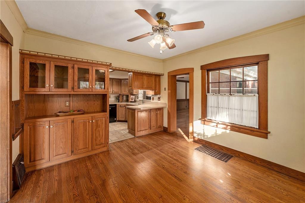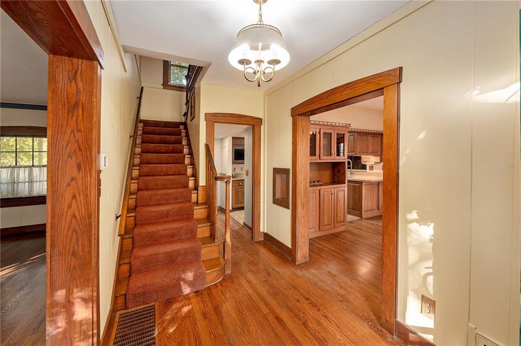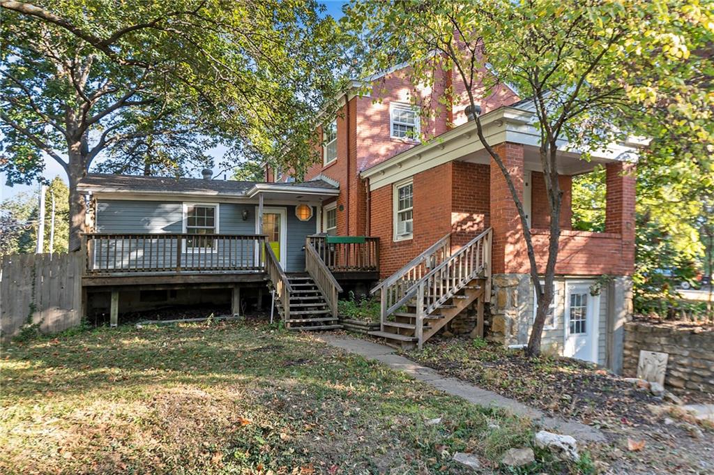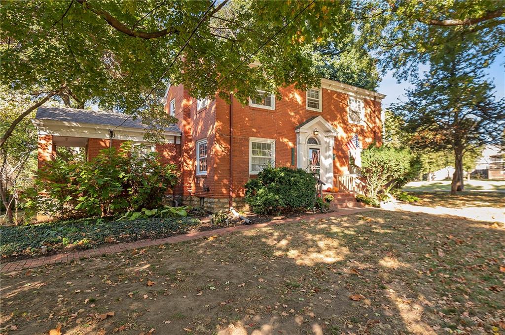 Welcome to this charming all-brick home set on a spacious corner lot surrounded by mature trees. Offering 4 bedrooms and two and a half baths, this home features a thoughtful addition that expands the main level with a private primary suite, complete with two walk-in closets and its own bath, a main-floor laundry room with multiple built-ins and pull down ironing board, and a convenient hall half bath. From here, step out onto the large deck that is ideal for gatherings or quiet evenings outdoors. There is a second addition off of the kitchen and dining rooms that adds even more functionality to the main floor. This warm and inviting family room features a gas log fireplace insert, and two large built-in bookcases on either side. The main living room has original built-in bookcases that add charm and maintain the historic value of the home while the gas log fireplace offers a cozy setting on those cold winter evenings. A small library/sitting room is off of the living room and has a door to a covered porch. Three secondary bedrooms upstairs and a hall bath complete the interior of this home. Outside you will discover a generous 2-car garage with a loft above that provides excellent storage, while a side carport adds additional parking options or lawn equipment storage. There is also a walkout/walkup basement that might have been an original garage. New replacement windows were recently added in the family room and primary suite. With it's blend of comfort, space, and classic appeal, this home is ready to welcome its next owners.