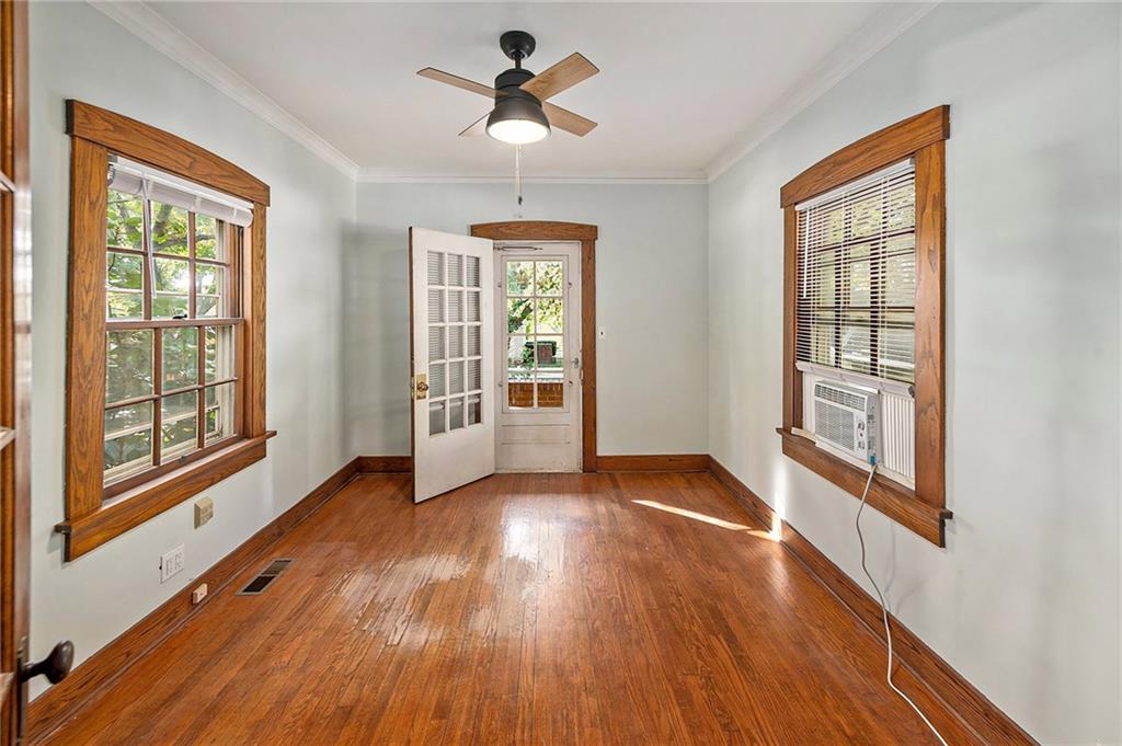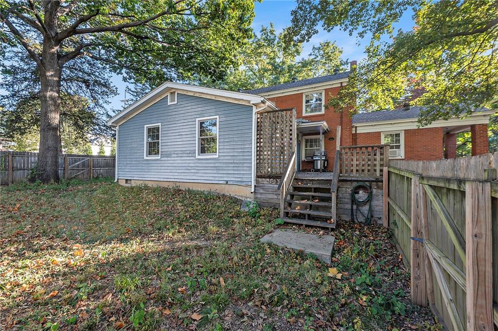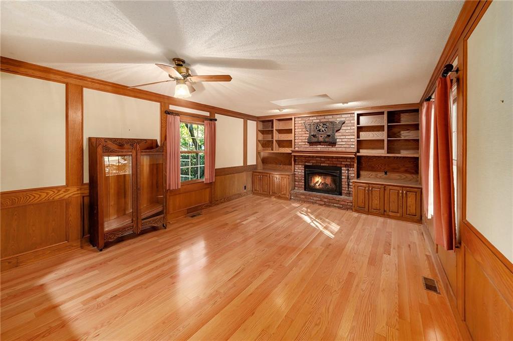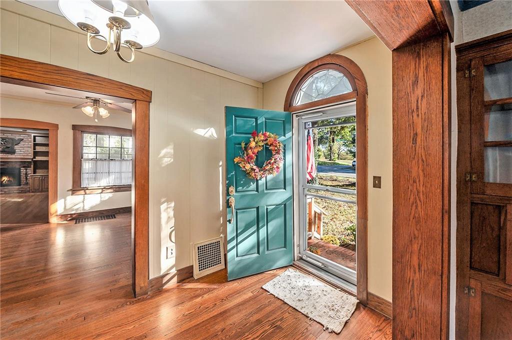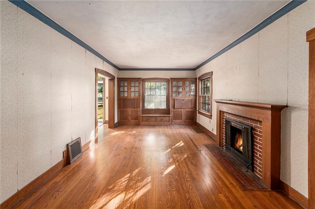 Welcome to this charming all-brick home set on a spacious corner lot surrounded by mature trees. Offering 4 bedrooms and two and a half baths, this home features a thoughtful addition that expands the main level with a private primary suite, complete with two walk-in closets and its own bath, a main-floor laundry room with multiple built-ins and pull down ironing board, and a convenient hall half bath. From here, step out onto the large deck that is ideal for gatherings or quiet evenings outdoors. There is a second addition off of the kitchen and dining rooms that adds even more functionality to the main floor. This warm and inviting family room features a gas log fireplace insert, and two large built-in bookcases on either side. The main living room has original built-in bookcases that add charm and maintain the historic value of the home while the gas log fireplace offers a cozy setting on those cold winter evenings. A small library/sitting room is off of the living room and has a door to a covered porch. Three secondary bedrooms upstairs and a hall bath complete the interior of this home. Outside you will discover a generous 2-car garage with a loft above that provides excellent storage, while a side carport adds additional parking options or lawn equipment storage. There is also a walkout/walkup basement that might have been an original garage. New replacement windows were recently added in the family room and primary suite. With it's blend of comfort, space, and classic appeal, this home is ready to welcome its next owners.