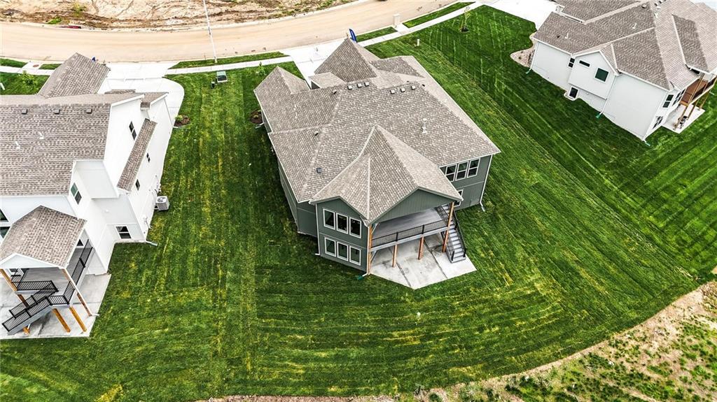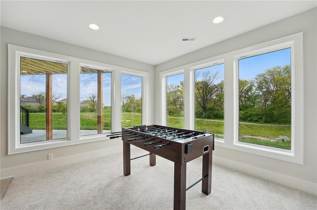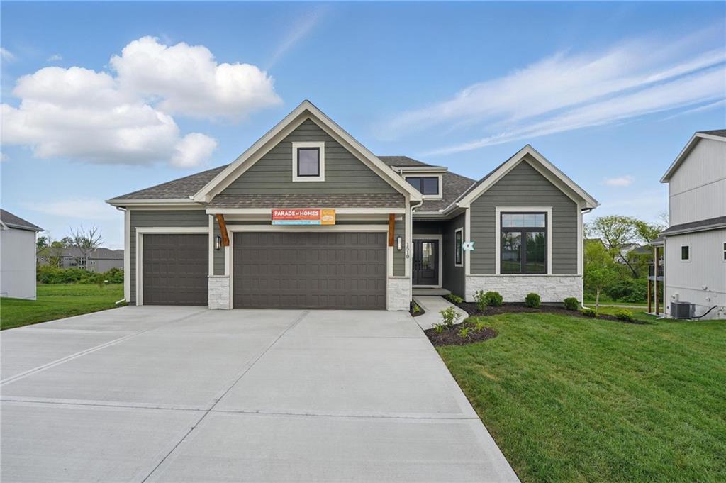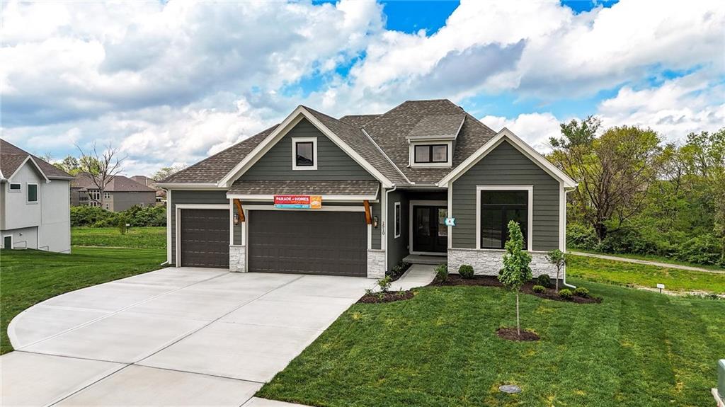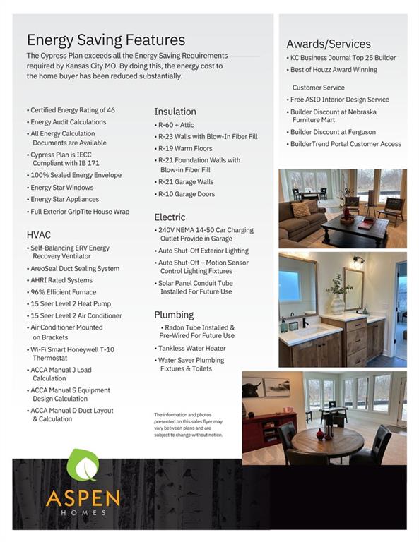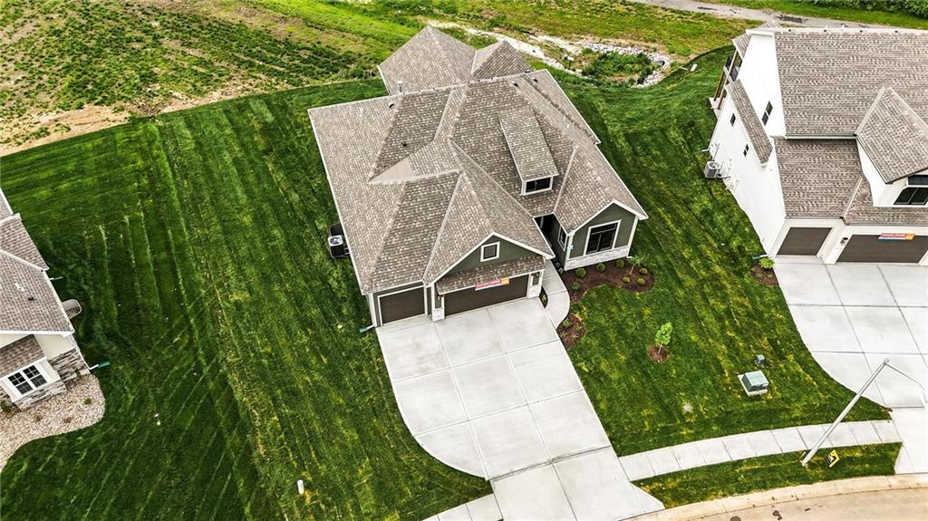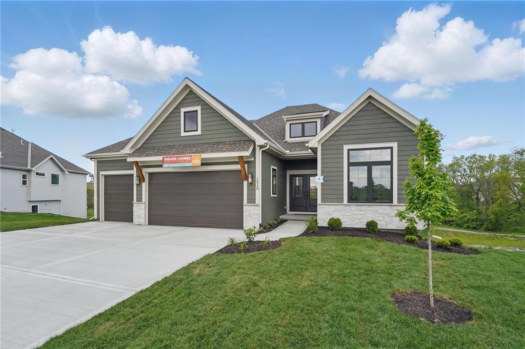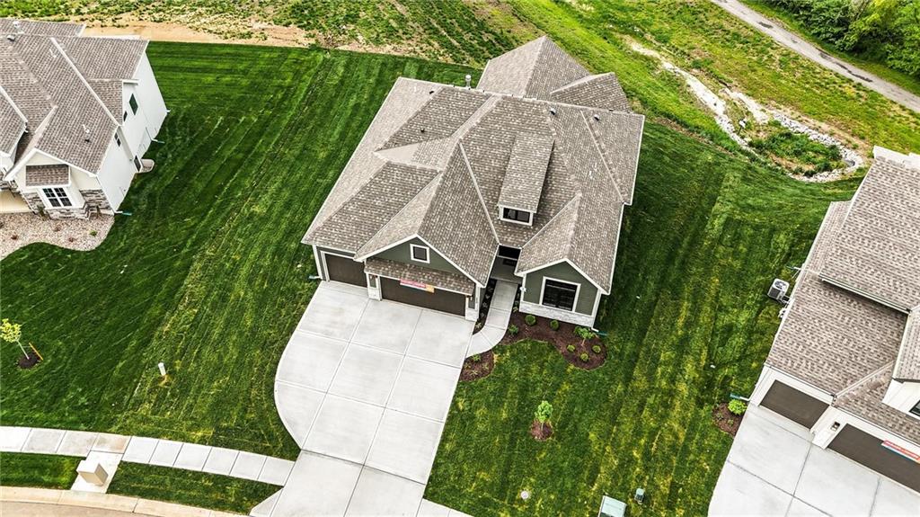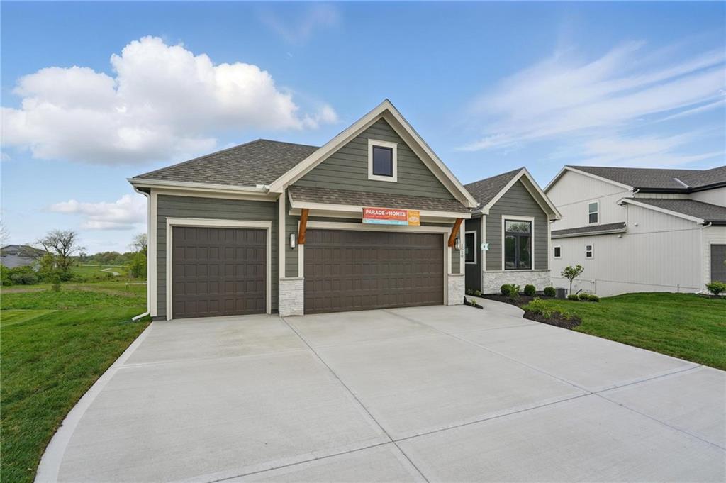 Model Home For Sale! Stunning Aspen Homes "Cypress" Reverse 1.5 Story, beautifully positioned on a walkout lot that backs to serene trees, offering both privacy and nature-filled views. This meticulously crafted home is nearing completion and promises a blend of modern design & luxurious finishes throughout. The kitchen is a chef’s dream, featuring sleek quartz countertops, custom-built cabinetry with glass uppers, a generous walk-in pantry, & a gas stove – perfect for both everyday meals & entertaining. The open floor plan flows effortlessly into the great room, where you'll find built-ins surrounding a striking floor-to-ceiling tile fireplace, creating a warm and inviting focal point. The primary suite is a true retreat, offering an elegant accent wall, walk in closet, spacious double vanity & quartz counters. Relax in the free standing soaker tub, surrounded by trendy tile, or enjoy the zero-entry shower with rain showerhead. On the main level, you'll find a secondary bedroom with hardwood floors that can also be used as a stylish office space. The angled breakfast room offers beautiful views of the treed lot, providing the perfect spot to enjoy a meal or your morning coffee. The finished lower level extends the living space with two additional bedrooms, a wet bar, and an abundance of windows that bring in natural light, creating a bright and airy atmosphere. Designed with energy efficiency in mind, this home boasts a Certified Energy Rating of 46. Enjoy the benefits of Energy Star windows and appliances, blown-in insulation, a tankless water heater, and an energy-efficient HVAC system with a self-balancing ERV energy recovery ventilator and Aeroseal duct sealing to maximize comfort and reduce energy costs. Located within the award-winning North Kansas City School District in the Staley High attendance area. The Hunt Midwest Community offers a completed swimming pool and walking trails. Furniture not included. Taxes & SqFt estimated