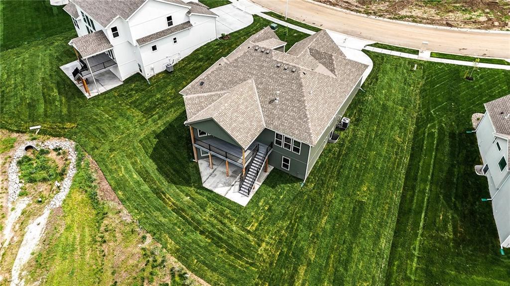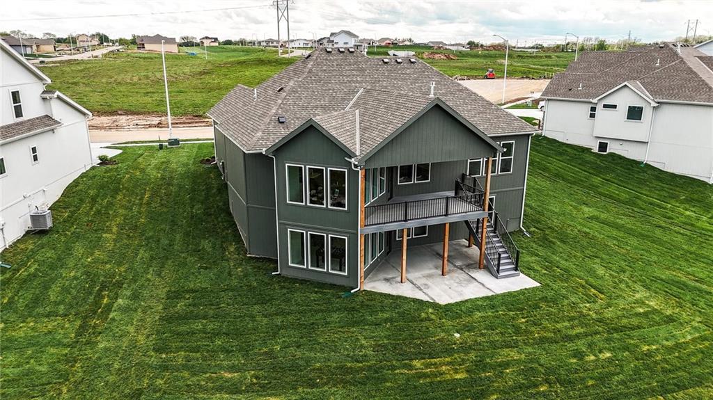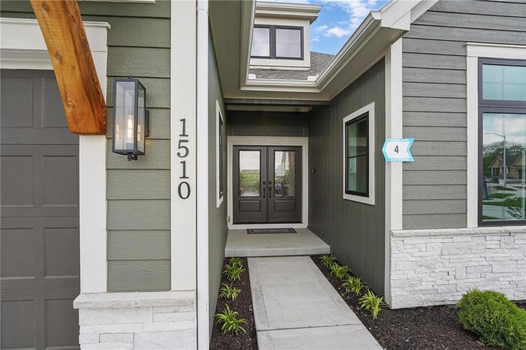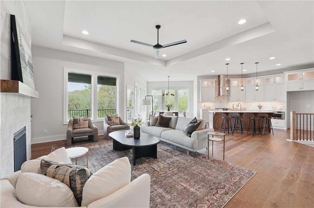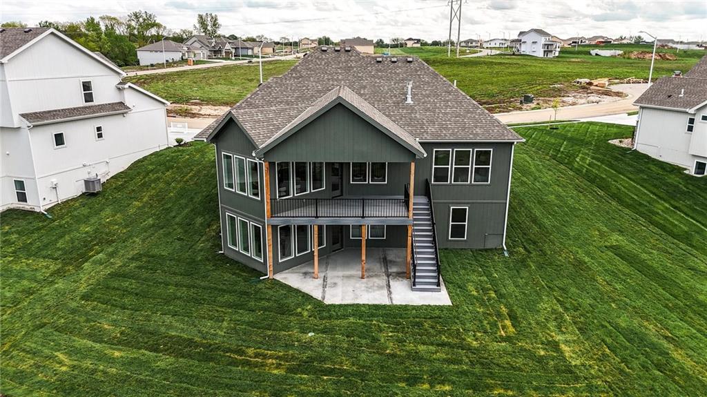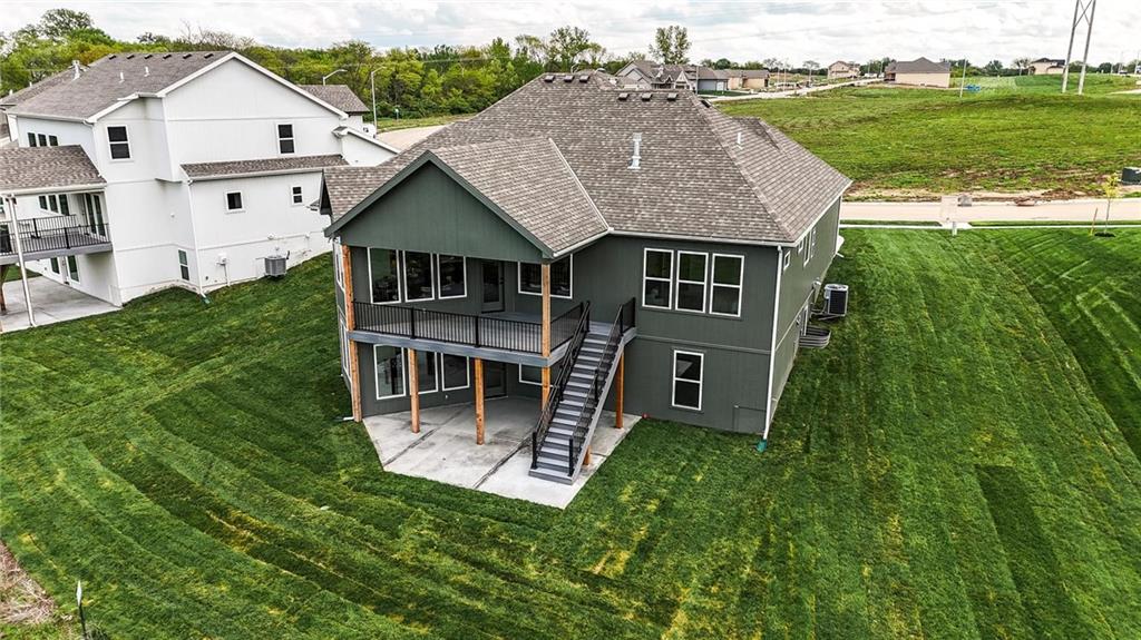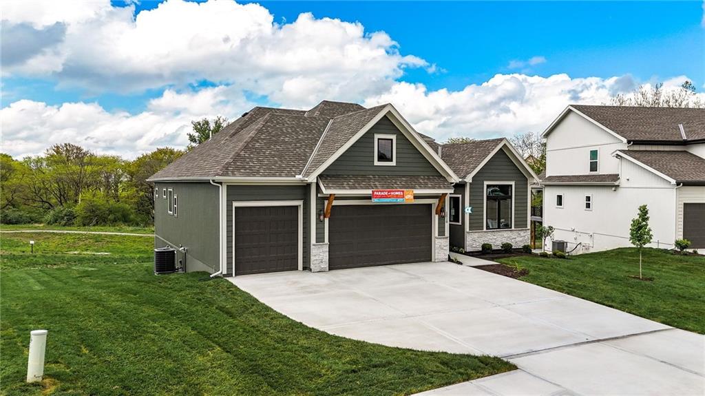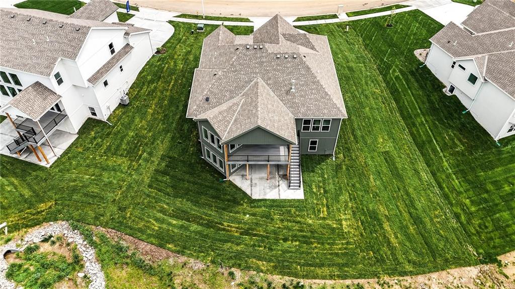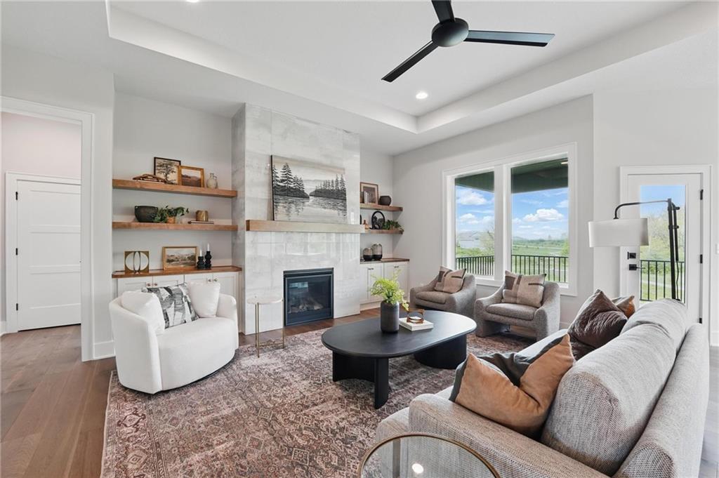 Model Home For Sale! Stunning Aspen Homes "Cypress" Reverse 1.5 Story, beautifully positioned on a walkout lot that backs to serene trees, offering both privacy and nature-filled views. This meticulously crafted home is nearing completion and promises a blend of modern design & luxurious finishes throughout. The kitchen is a chef’s dream, featuring sleek quartz countertops, custom-built cabinetry with glass uppers, a generous walk-in pantry, & a gas stove – perfect for both everyday meals & entertaining. The open floor plan flows effortlessly into the great room, where you'll find built-ins surrounding a striking floor-to-ceiling tile fireplace, creating a warm and inviting focal point. The primary suite is a true retreat, offering an elegant accent wall, walk in closet, spacious double vanity & quartz counters. Relax in the free standing soaker tub, surrounded by trendy tile, or enjoy the zero-entry shower with rain showerhead. On the main level, you'll find a secondary bedroom with hardwood floors that can also be used as a stylish office space. The angled breakfast room offers beautiful views of the treed lot, providing the perfect spot to enjoy a meal or your morning coffee. The finished lower level extends the living space with two additional bedrooms, a wet bar, and an abundance of windows that bring in natural light, creating a bright and airy atmosphere. Designed with energy efficiency in mind, this home boasts a Certified Energy Rating of 46. Enjoy the benefits of Energy Star windows and appliances, blown-in insulation, a tankless water heater, and an energy-efficient HVAC system with a self-balancing ERV energy recovery ventilator and Aeroseal duct sealing to maximize comfort and reduce energy costs. Located within the award-winning North Kansas City School District in the Staley High attendance area. The Hunt Midwest Community offers a completed swimming pool and walking trails. Furniture not included. Taxes & SqFt estimated