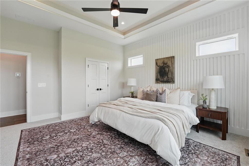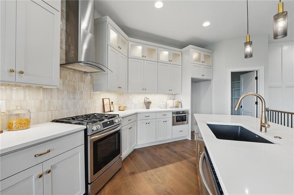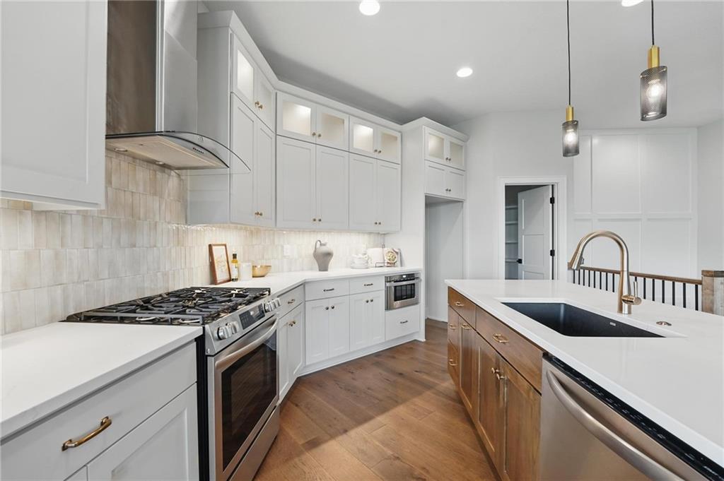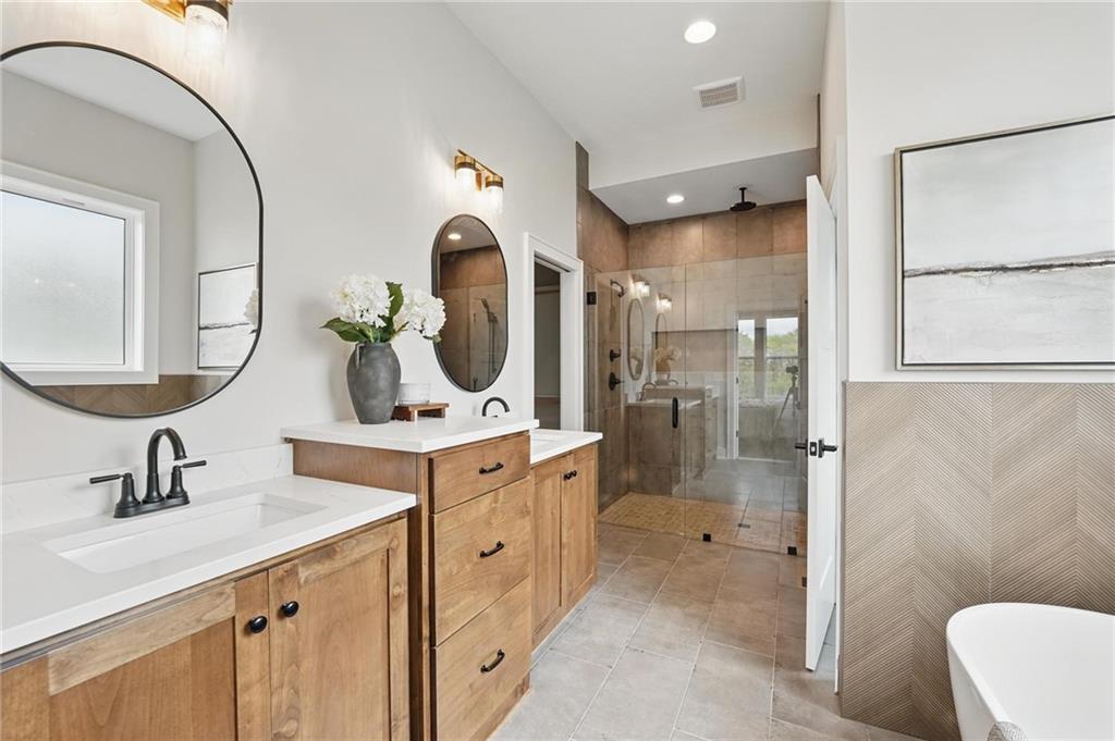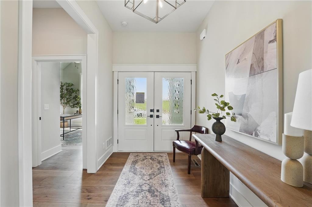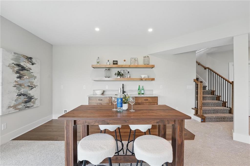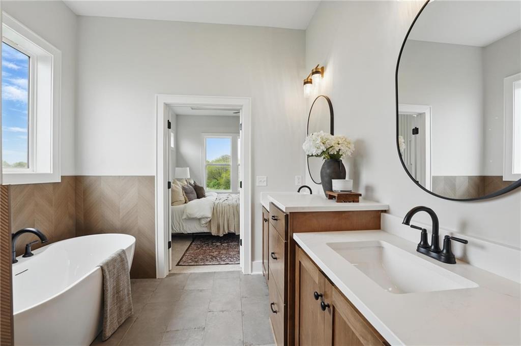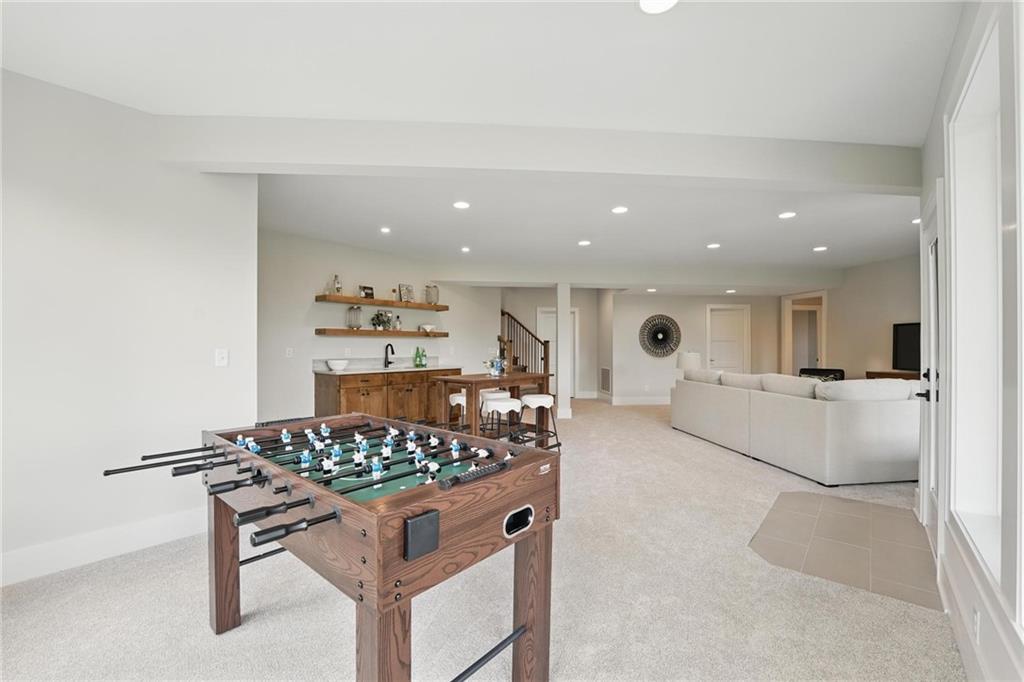 Model Home For Sale! Stunning Aspen Homes "Cypress" Reverse 1.5 Story, beautifully positioned on a walkout lot that backs to serene trees, offering both privacy and nature-filled views. This meticulously crafted home is nearing completion and promises a blend of modern design & luxurious finishes throughout. The kitchen is a chef’s dream, featuring sleek quartz countertops, custom-built cabinetry with glass uppers, a generous walk-in pantry, & a gas stove – perfect for both everyday meals & entertaining. The open floor plan flows effortlessly into the great room, where you'll find built-ins surrounding a striking floor-to-ceiling tile fireplace, creating a warm and inviting focal point. The primary suite is a true retreat, offering an elegant accent wall, walk in closet, spacious double vanity & quartz counters. Relax in the free standing soaker tub, surrounded by trendy tile, or enjoy the zero-entry shower with rain showerhead. On the main level, you'll find a secondary bedroom with hardwood floors that can also be used as a stylish office space. The angled breakfast room offers beautiful views of the treed lot, providing the perfect spot to enjoy a meal or your morning coffee. The finished lower level extends the living space with two additional bedrooms, a wet bar, and an abundance of windows that bring in natural light, creating a bright and airy atmosphere. Designed with energy efficiency in mind, this home boasts a Certified Energy Rating of 46. Enjoy the benefits of Energy Star windows and appliances, blown-in insulation, a tankless water heater, and an energy-efficient HVAC system with a self-balancing ERV energy recovery ventilator and Aeroseal duct sealing to maximize comfort and reduce energy costs. Located within the award-winning North Kansas City School District in the Staley High attendance area. The Hunt Midwest Community offers a completed swimming pool and walking trails. Furniture not included. Taxes & SqFt estimated