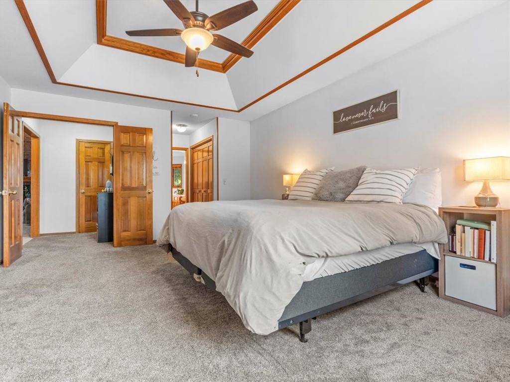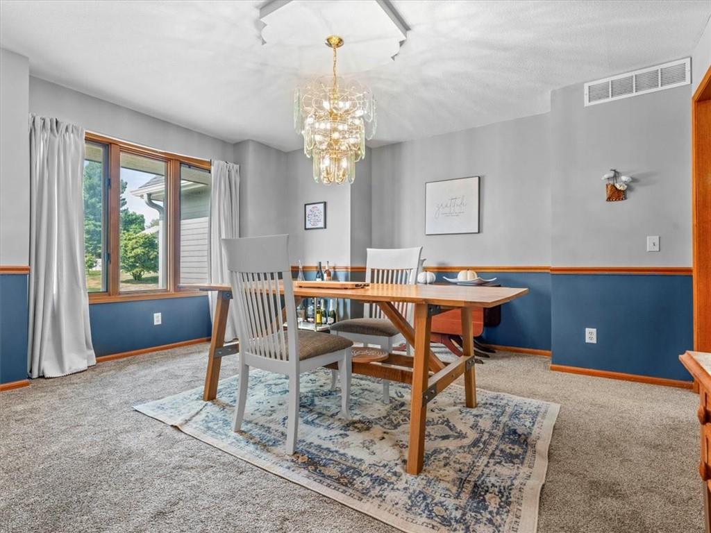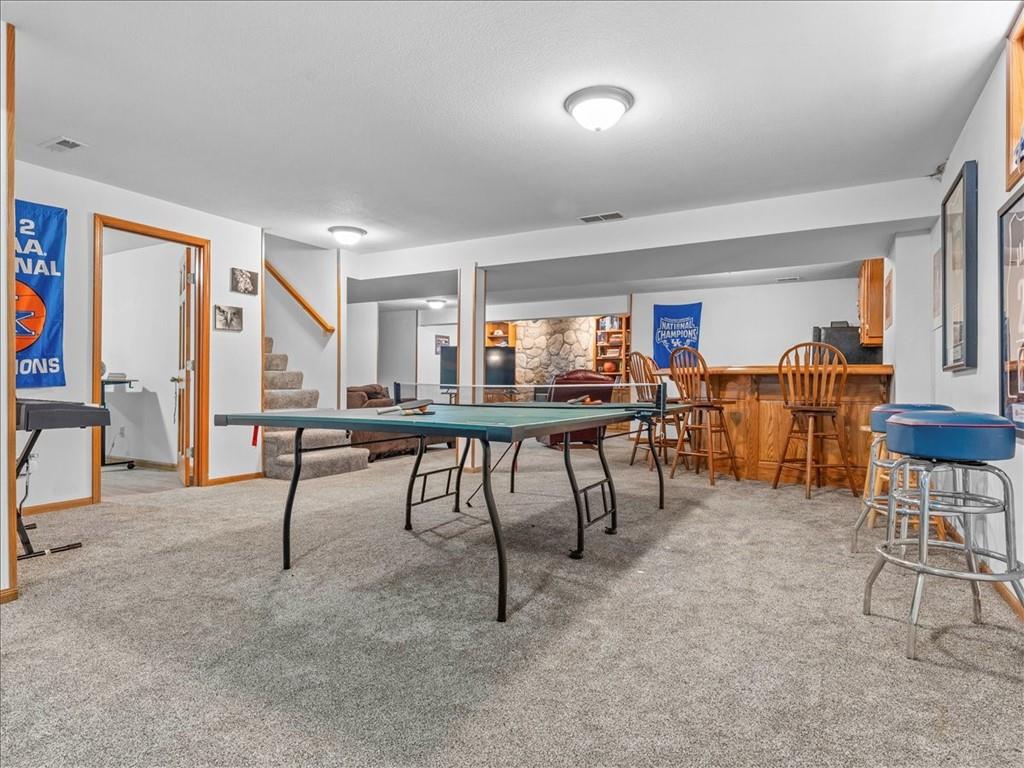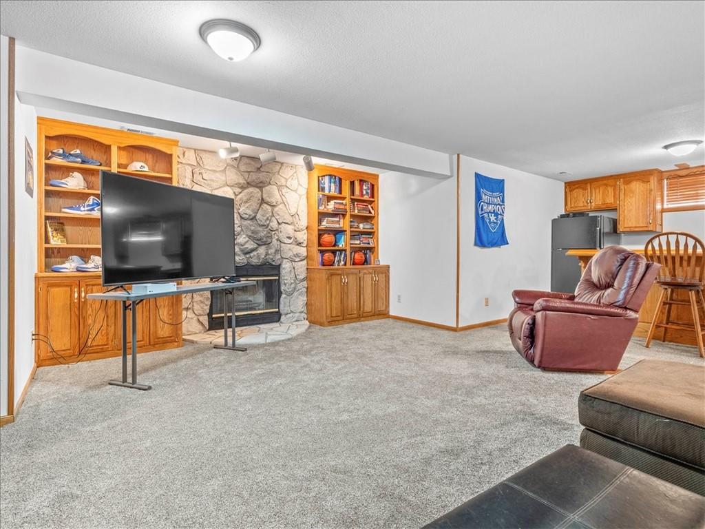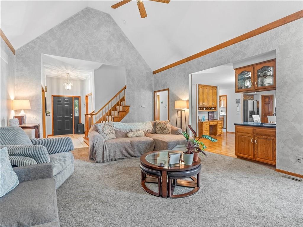 This beautifully maintained 1.5-story home offers an abundance of space and flexibility in a sought after neighborhood. The main floor boasts a warm living room with a brick fireplace, a formal dining room, and a spacious kitchen with a breakfast area. You’ll love the oversized primary suite with a tray ceiling, a spa-like bathroom, plus the convenience of main-floor laundry, a half bath, and a 2 car garage. Upstairs, find three comfortable bedrooms and a full bath, while the finished basement is made for fun - featuring a large rec room, full bath, wet bar, and a non-conforming bedroom or exercise room, along with plenty of storage. A brand new roof, security system, and all electric living finish off the amazing features of this home. With multiple living areas and thoughtful details throughout, this home is perfect for both entertaining and everyday living.