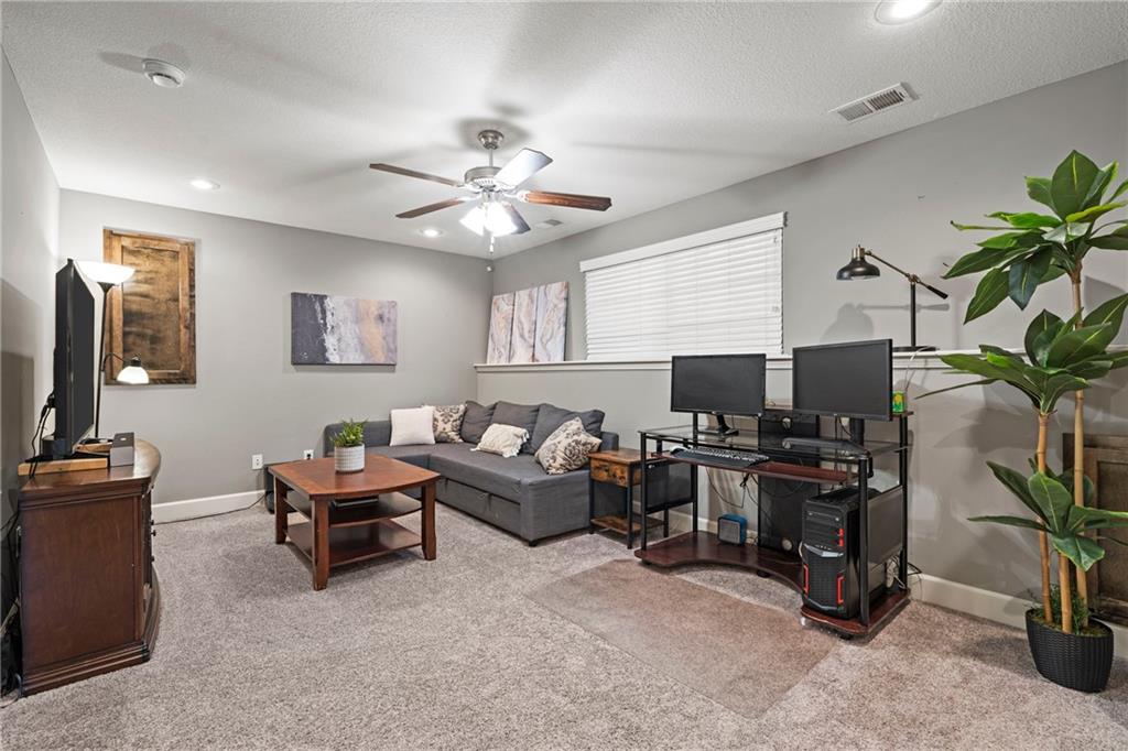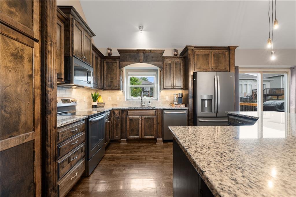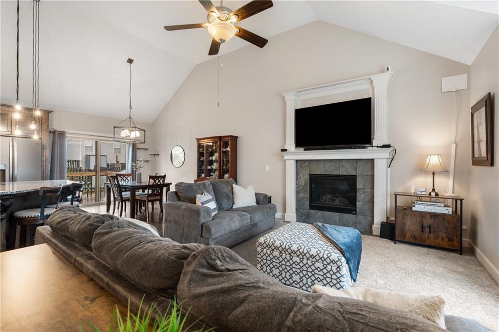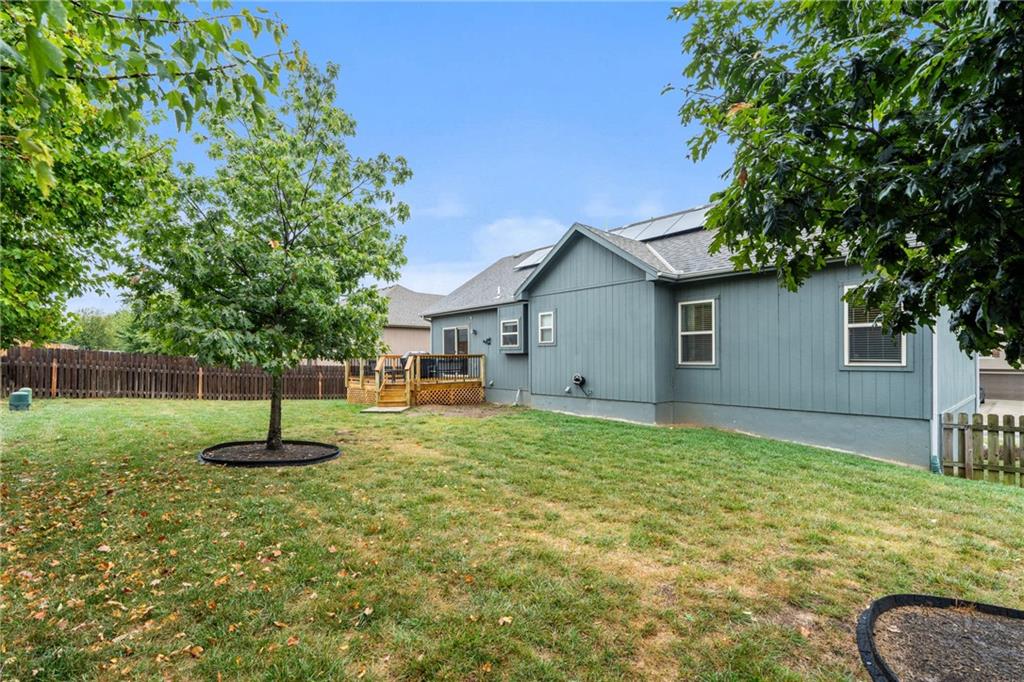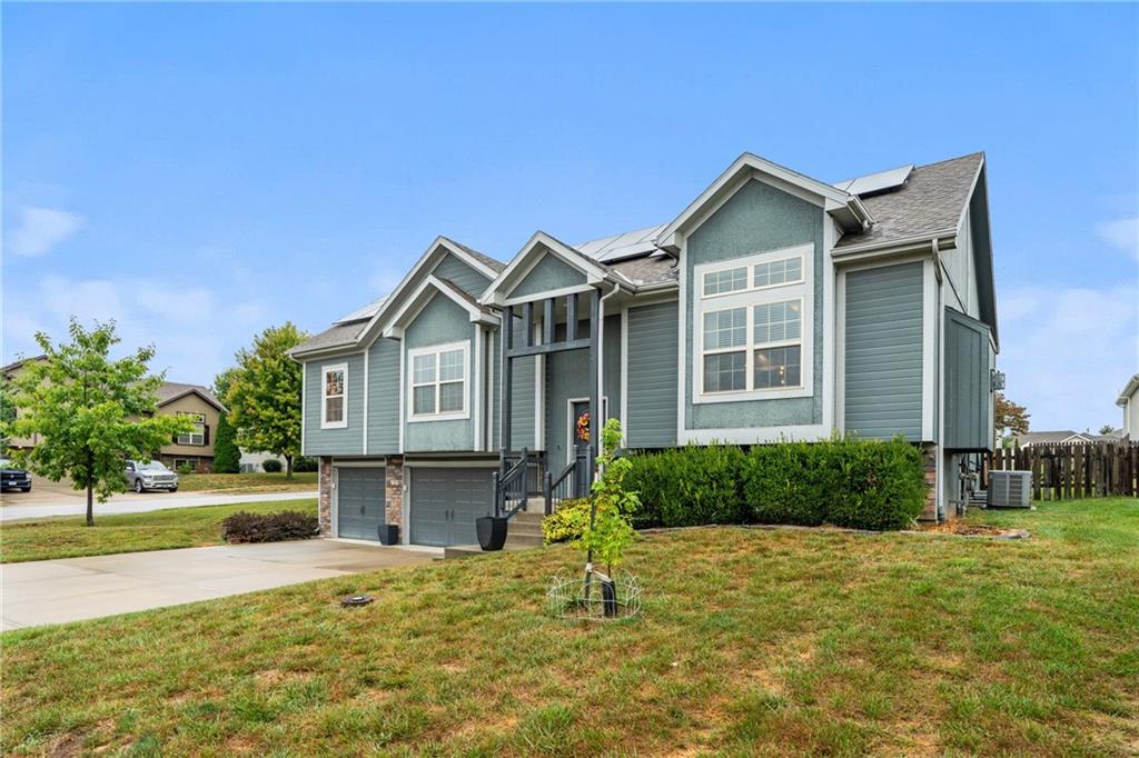 STUNNING and meticulously maintained 4-bed, 3-bath home on a corner lot/fenced yard with upgrades galore! Living area is open to kitchen with soaring vaulted ceilings, cozy gas fireplace, and an expansive kitchen with a giant oversized granite island, newer dishwasher/microwave, under-cabinet lighting, and stylish industrial pendants/chandelier. The primary suite offers a spa-like retreat with double vanities and abundant counter space, a whirlpool tub, and walk-in closet. 2 more good sized bedrooms and linen closet line the hall with a large walk-in laundry room has extensive built-in shelving for organization/storage. Iron spindles accent the staircase leading to a separate lower-level living area featuring its own bedroom, FULL bath, and separate living space! Step outside to enjoy the brand-new extended deck with black metal spindles and refreshed landscaping. A central vacuum system provides convenient quick cleaning! Located in Chapman Farms and down the street from the elementary school, this home offers easy access to shopping, dining, and amenities in both Blue Springs and Lee’s Summit! Priced to sell, must see!