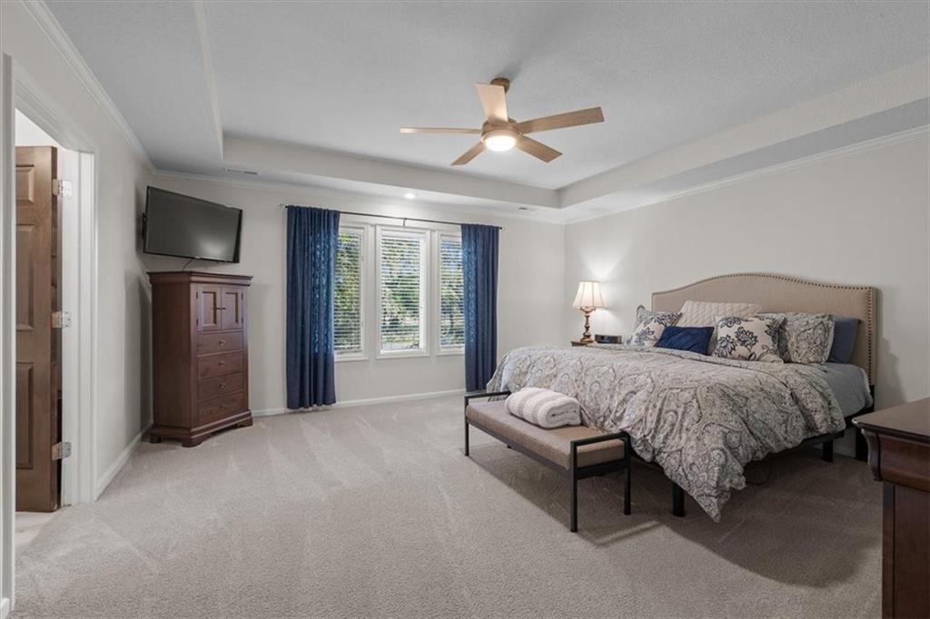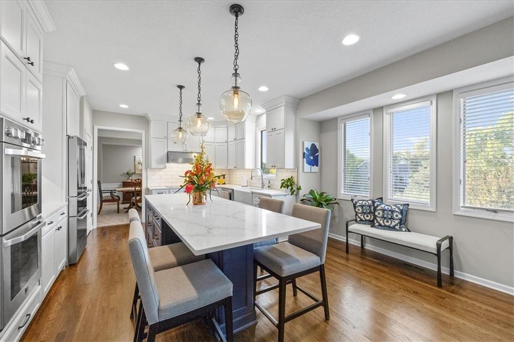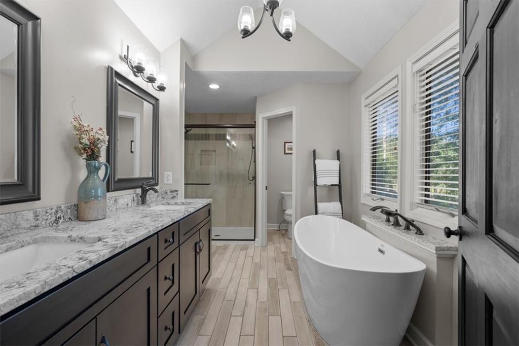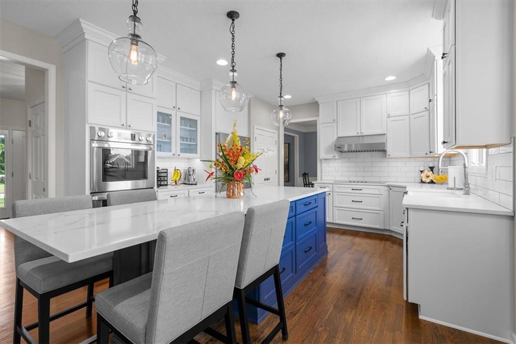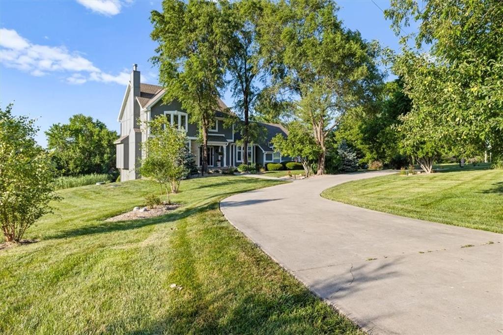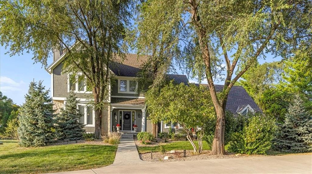 Step inside and feel right at home. This is the comfortable, spacious haven where privacy meets modern living and real long-term value. Nestled on 1.55 lush, tree-lined acres across from future 236 acre Camp Branch nature park, this beautifully updated 5 bedroom, 5 bathroom (3 full, 2 half) home is a rare opportunity in the Blue Valley School District. Inside, the newly renovated chef’s kitchen features quartz countertops, stainless steel appliances, a custom pantry with pullout drawers, and generous prep space- perfect for hosting dinners or weekend entertaining. The open layout flows into a spacious main living area, private home office, and light filled dining spaces. Upstairs, the expansive primary suite offers a spa inspired bath and walk-in closet. The fully finished walkout lower level features a full wet bar and adds flexible space for a second living room, gym, guest quarters, or playroom. The property includes a large backyard, an oversized deck with stunning sunset views, and beautiful, mature gardens, built for outdoor living. A new county park and walking paths slated for 2026 completion is just across the street, and a local winery is a short walk or golf cart ride away. This home offers both everyday serenity and weekend escapes.