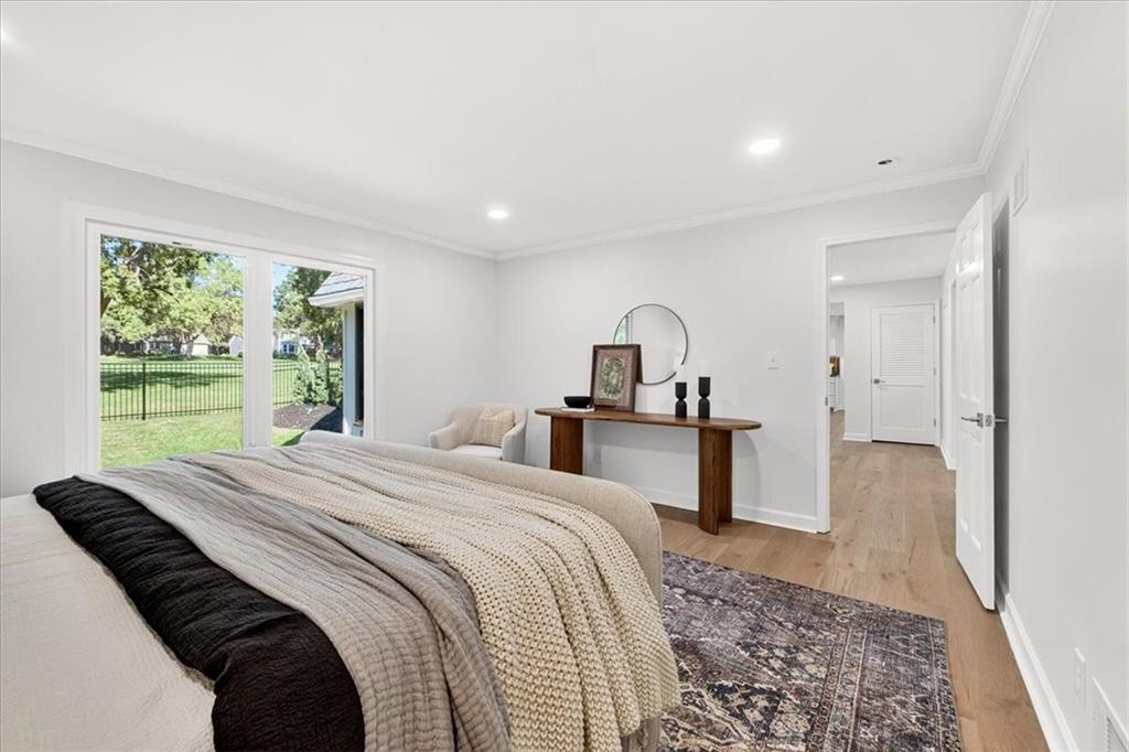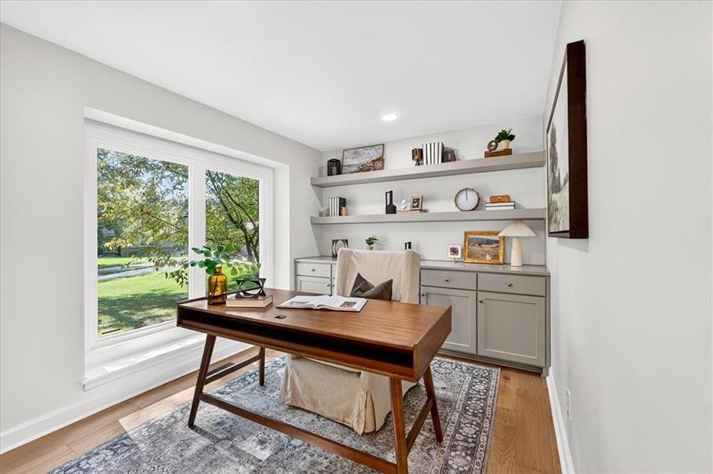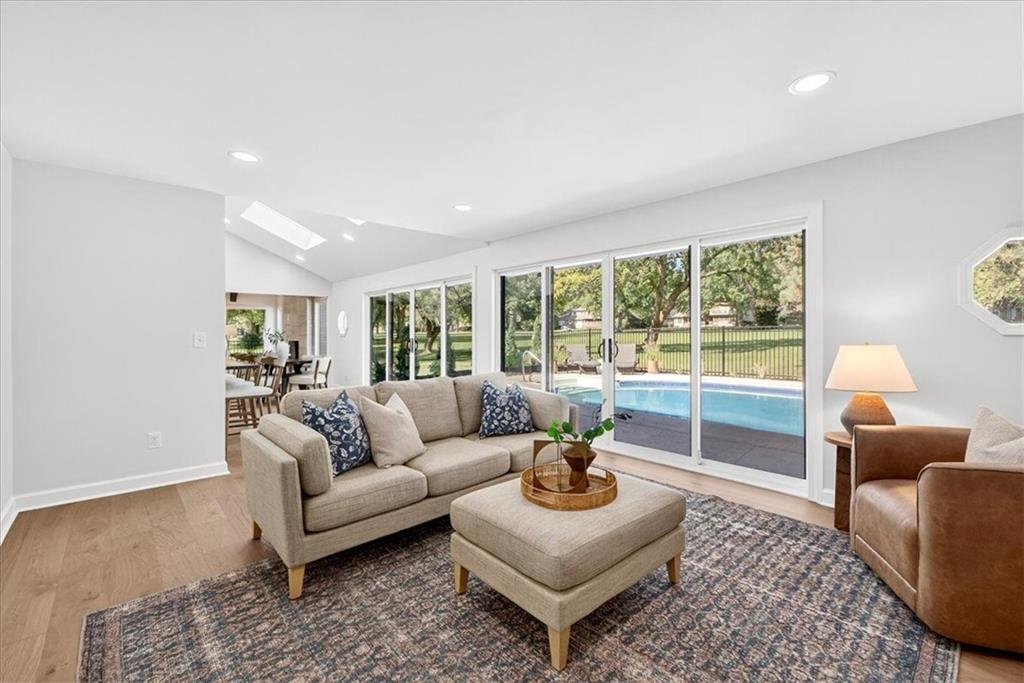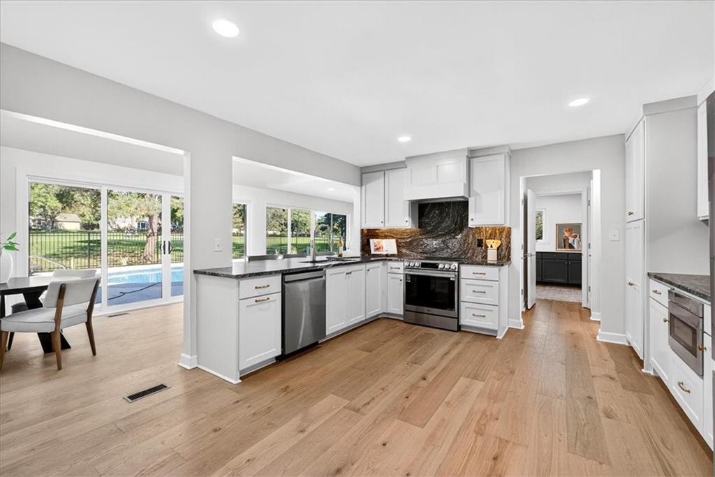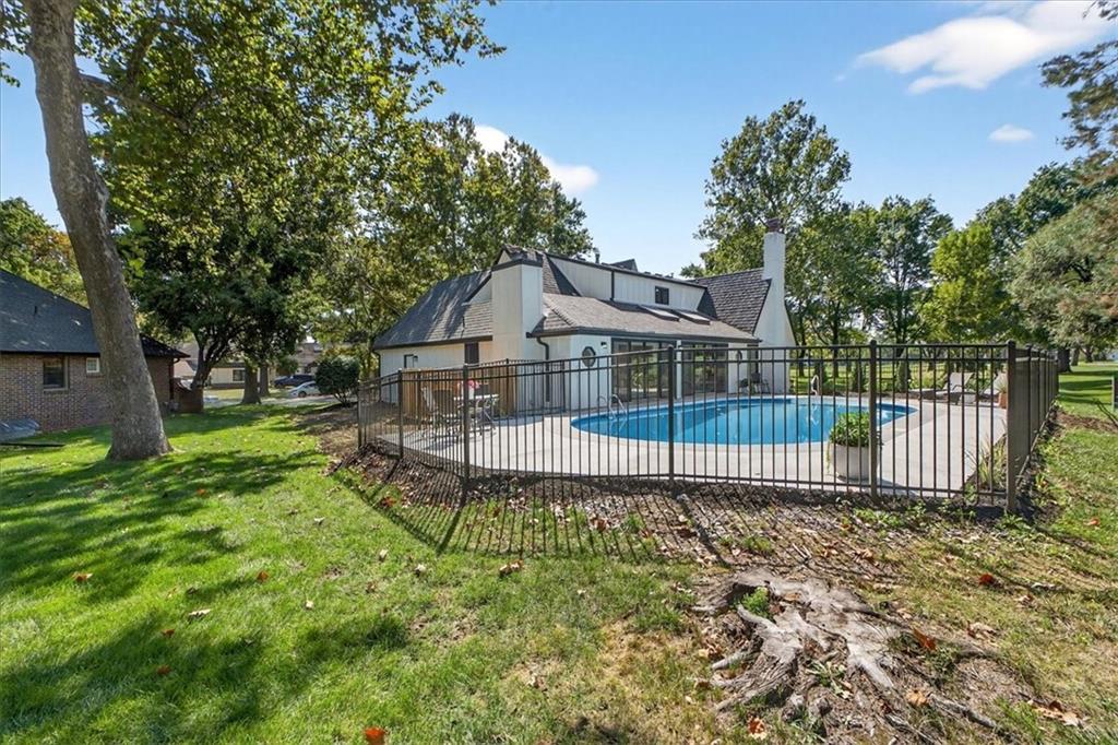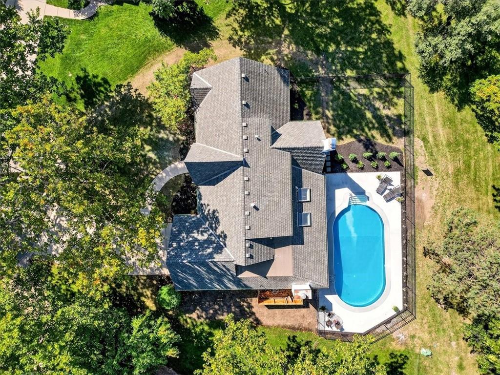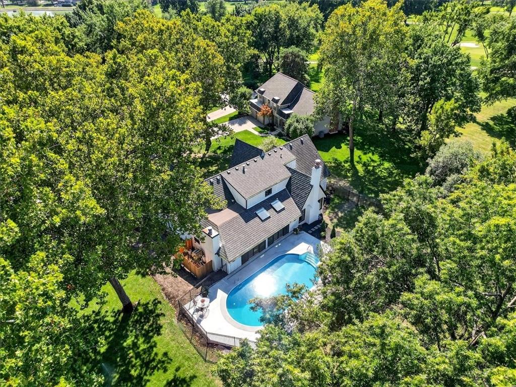 Hidden away on one of Leawood South's most coveted and private cul-de-sacs, this fully renovated residence with a sparkling pool sits on what is truly one of the best streets in the neighborhood. Perfectly positioned on the 9th hole of the Country Club of Leawood, this 4-bedroom, 3.5-bath home offers an unmatched combination of privacy, elegance, and resort-style living. Every detail has been elevated with designer finishes and modern upgrades, including brand-new windows, HVAC, and water heater. The main level features soaring ceilings, a dramatic floor-to-ceiling chiseled marble fireplace, and dual 7 foot sliding doors that frame spectacular golf course views while opening seamlessly to the pool and patio. A modern kitchen with custom cabinetry and a spacious mudroom with built-ins bring both sophistication and convenience. The primary suite captures peaceful views and features a spa-like marble walk-in shower and an expansive walk-in closet. The finished lower level extends the home's living space with a cozy fireplace-warmed rec room, a 5th non-conforming bedroom, exercise room, bonus room, and full bath. Outdoors, the newly poured concrete patio, refreshed landscaping, and sparkling pool create a private retreat overlooking manicured fairways ideal for both entertaining and serene relaxation. Located within the award-winning Blue Valley School District and minutes from upscale shopping and dining, this Leawood South masterpiece offers a rare opportunity to own a hidden gem on the golf course's most desirable street.