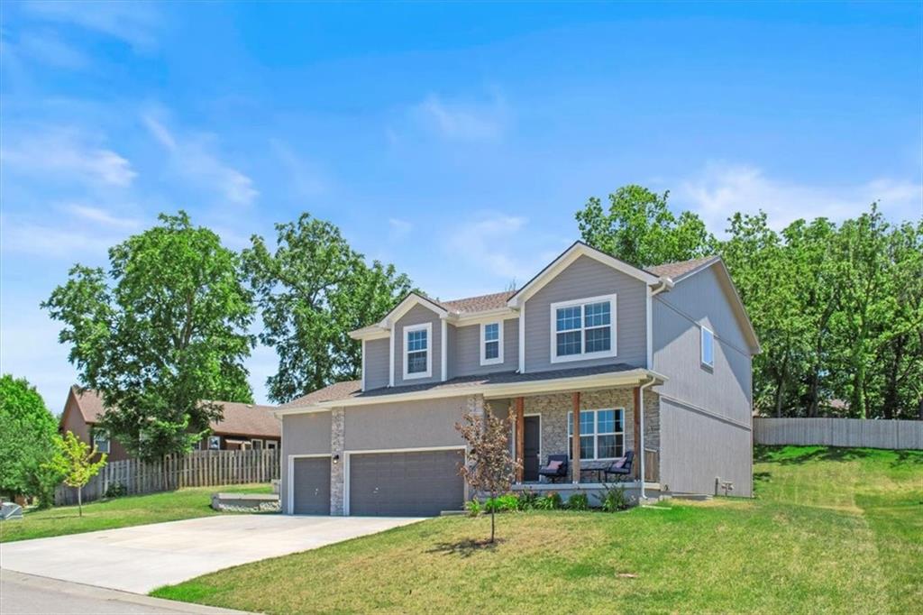 This spacious 2,658 sq ft two-story home offers 4 bedrooms and 2.5 bathrooms, thoughtfully designed for modern family living and entertaining. The main level features an open-concept layout seamlessly connecting the living, dining, and kitchen areas, creating a welcoming space for gatherings. Upstairs, you’ll find all four bedrooms along with a convenient walk-in laundry room, adding practical ease to daily routines. Enjoy outdoor living with a large covered patio, perfect for relaxing or soaking in a hot tub. The attached three-car garage includes an electric vehicle (EV) charging station, catering to contemporary needs. The amazing finished basement features a wonderful rec room and bonus room currently used as an office and still offers generous storage space or can be used as it currently is as an amazing home gym! Located on a nearly quarter-acre lot within the Woodbury community, this home is zoned for the highly regarded Grain Valley schools, including Prairie Branch Elementary, Grain Valley North Middle, and Grain Valley High School. Don’t miss the chance to make this versatile and inviting home yours.