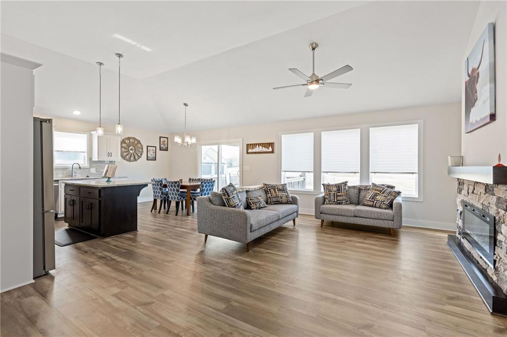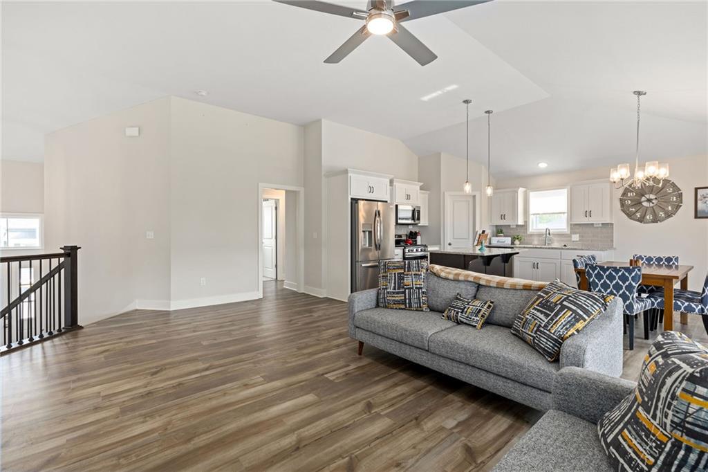You’re in luck—no waiting on new construction! Unlike starting from scratch, 1325 already includes the upgrades you want: a fully fenced yard, mature grass, garage door openers, and the kitchen refrigerator—all staying for you. You’re getting today’s floor plans, energy efficiency, and finishes—just without the “brand new” price tag. Step inside and you’ll immediately notice this isn’t your typical split entry. The open main floor seamlessly connects the living room, dining, and kitchen, creating the perfect space for everyday living and entertaining. A sleek linear fireplace becomes the focus of the room, while a wall of windows along the back fills the space with natural light. Luxury vinyl plank flooring runs throughout the main living areas and hallway for both durability and style. The thoughtful plan places two bedrooms on one side of the home and the primary suite on the other, offering privacy while keeping everyone on the same level. The primary suite features a dreamy walk-in closet, large linen closet, water closet, and double vanity—a true retreat at the end of the day. Downstairs, you’ll find a large family room with a drop zone right off the garage, a fourth bedroom with a walk-in closet, a full bathroom, and plenty of dedicated storage space for organizing. Located in a community with a neighborhood pool and conveniently situated right off Interstate 435, you’ll enjoy a Kansas City address paired with the highly regarded Smithville School District. Why wait on new construction when you can be settled into this home by the holiday season?