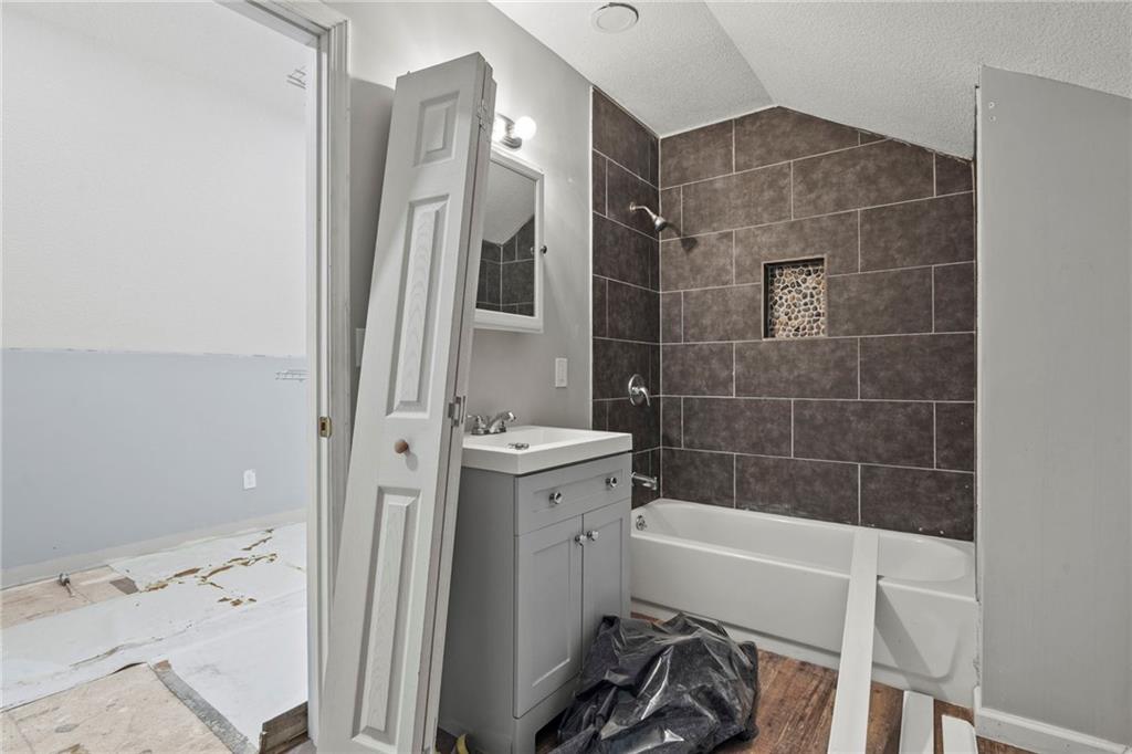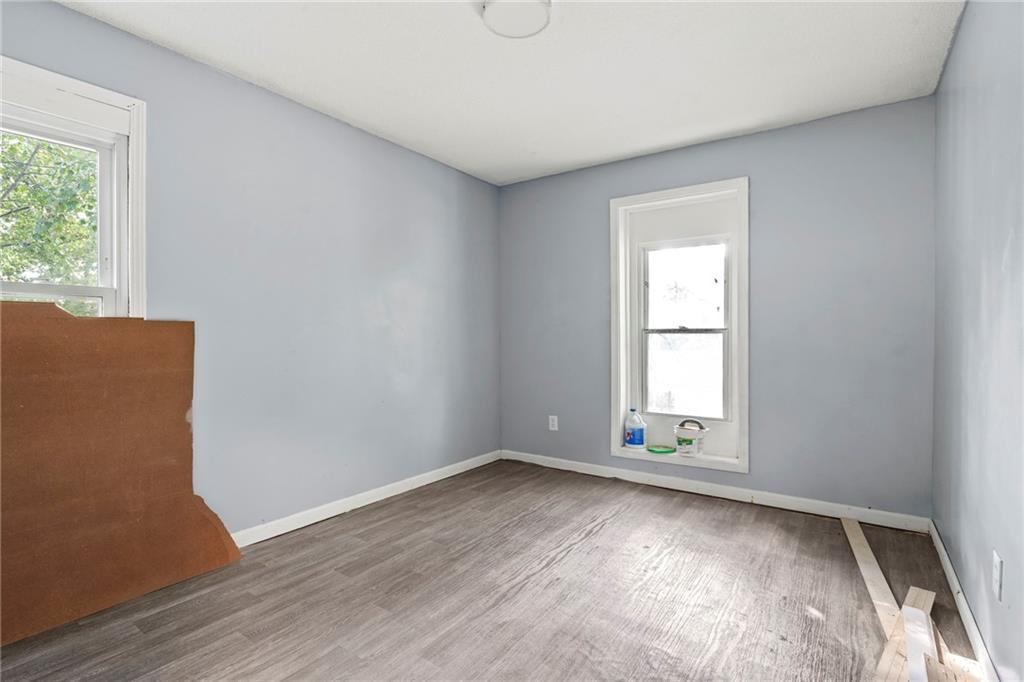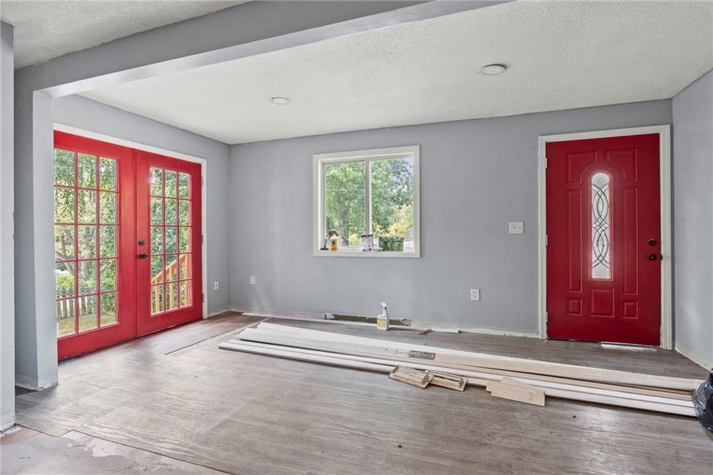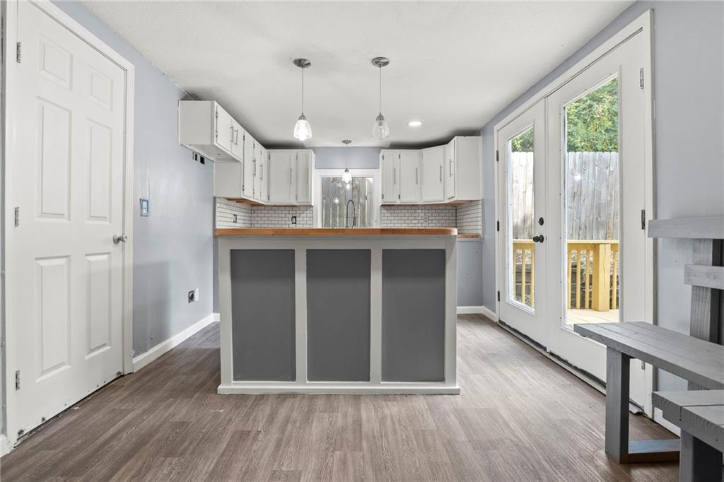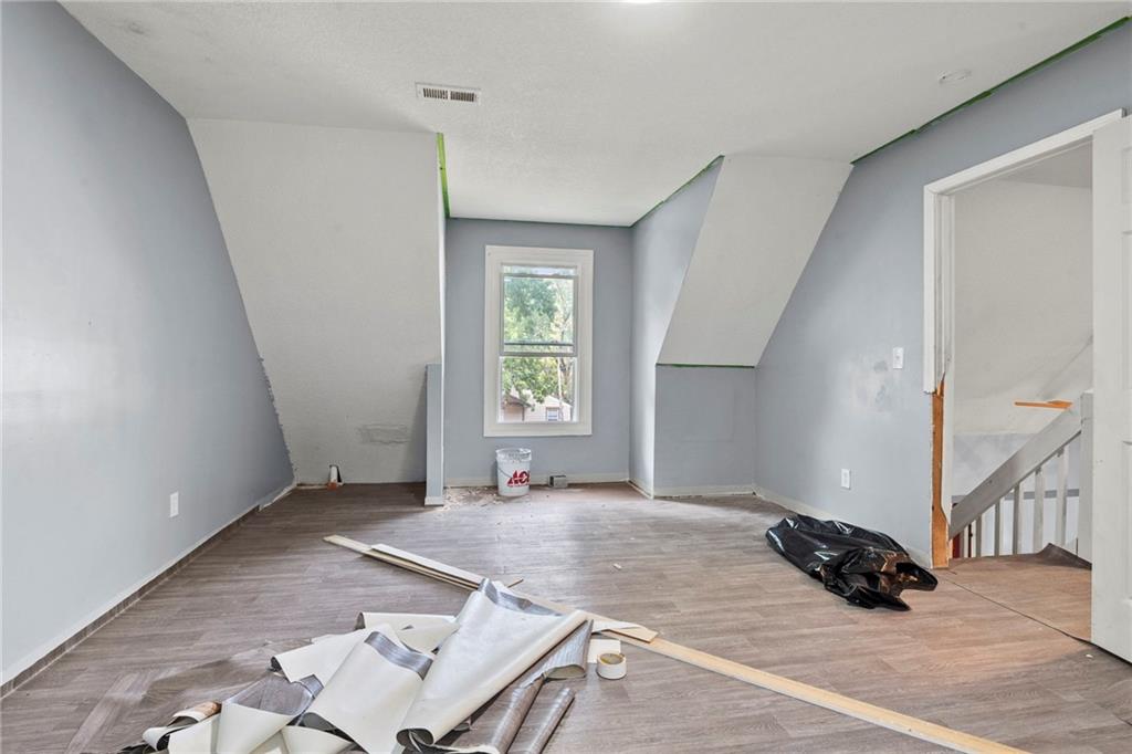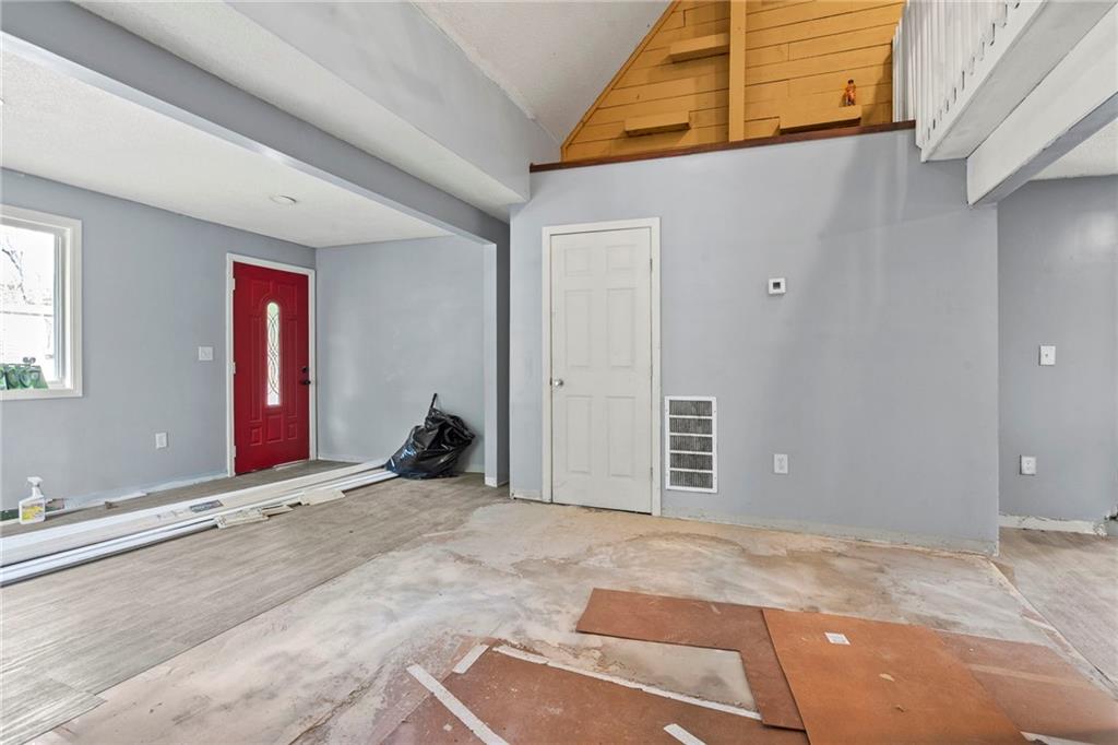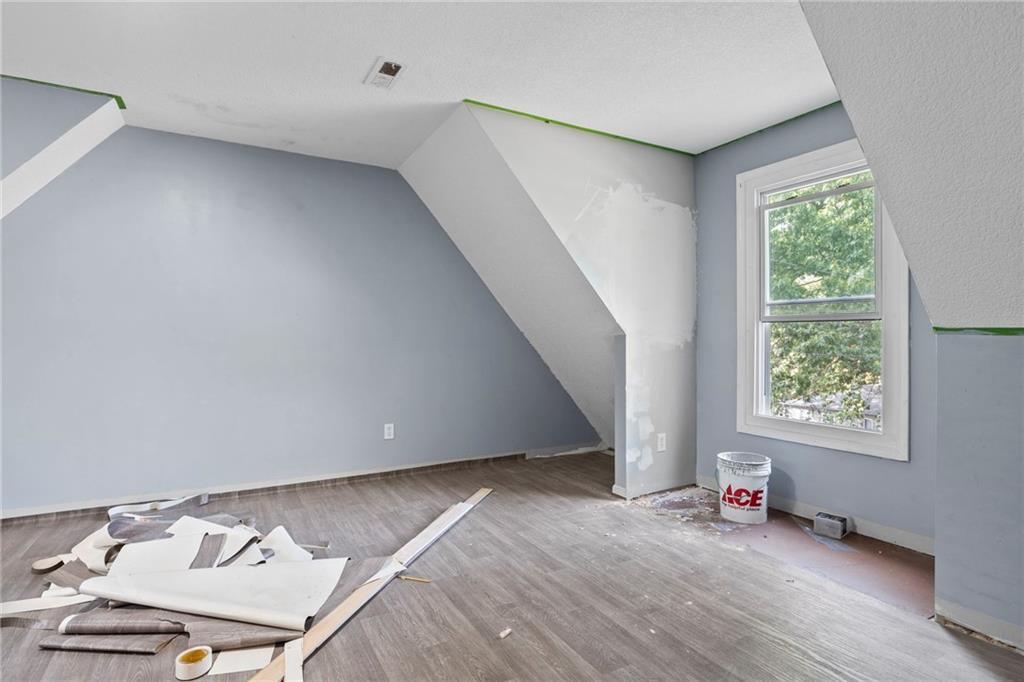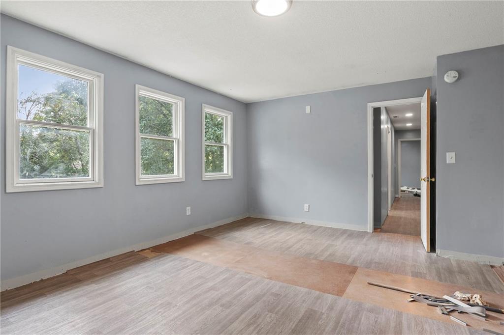 Opportunity knocks with this spacious 1.5-story traditional home. The exterior already has great curb appeal with white trim and a bold red front door. Inside, much of the heavy lifting has been started—updated flooring, modern lighting, and a kitchen with painted cabinets, subway tile backsplash, butcher block counters, and a center island. French doors off the kitchen open to a new deck and private backyard, creating a strong foundation for finishing touches. The main level features a light-filled living room, dining space, updated kitchen, full bath, and two bedrooms. Upstairs, you'll find a generous primary suite with an expansive walk-in closet, ensuite bath, plus another large bedroom and full hall bath. With laundry on the bedroom floor, the layout works for both owner-occupants and rental potential. With an attached garage and cosmetic projects already underway, this property is primed for an investor to complete renovations and unlock strong equity. Located on a city lot with quick highway access, this home has all the right bones—bring your vision and finish it out for a solid return.