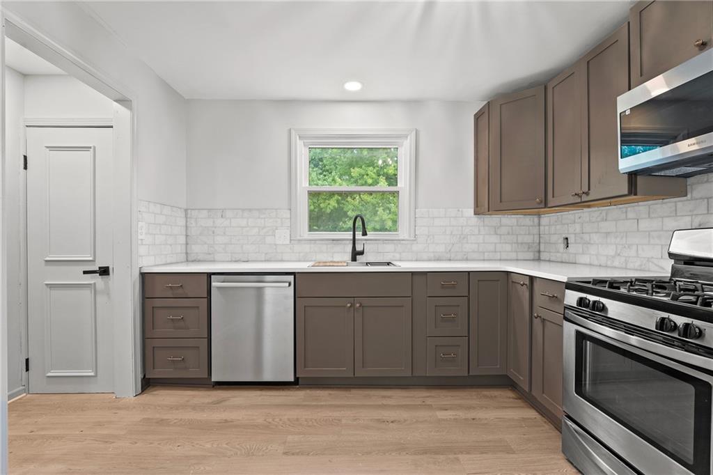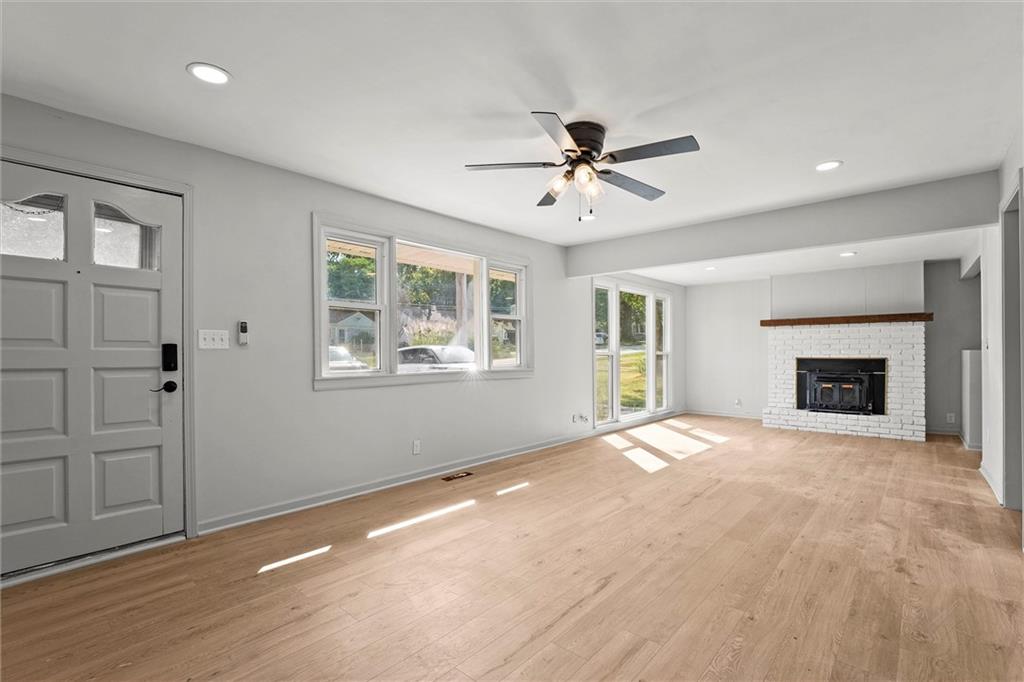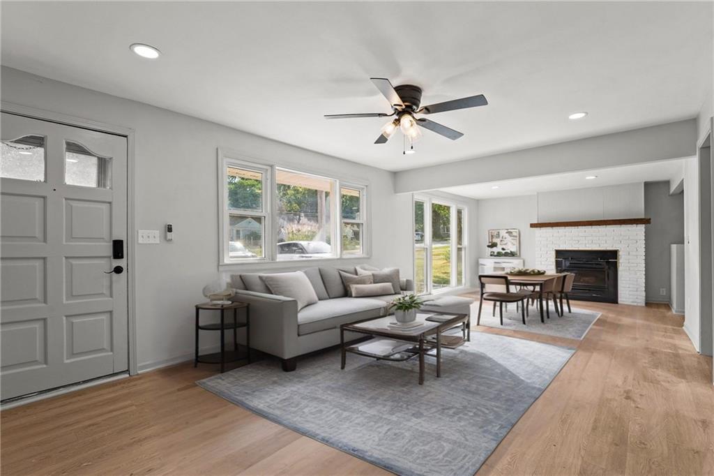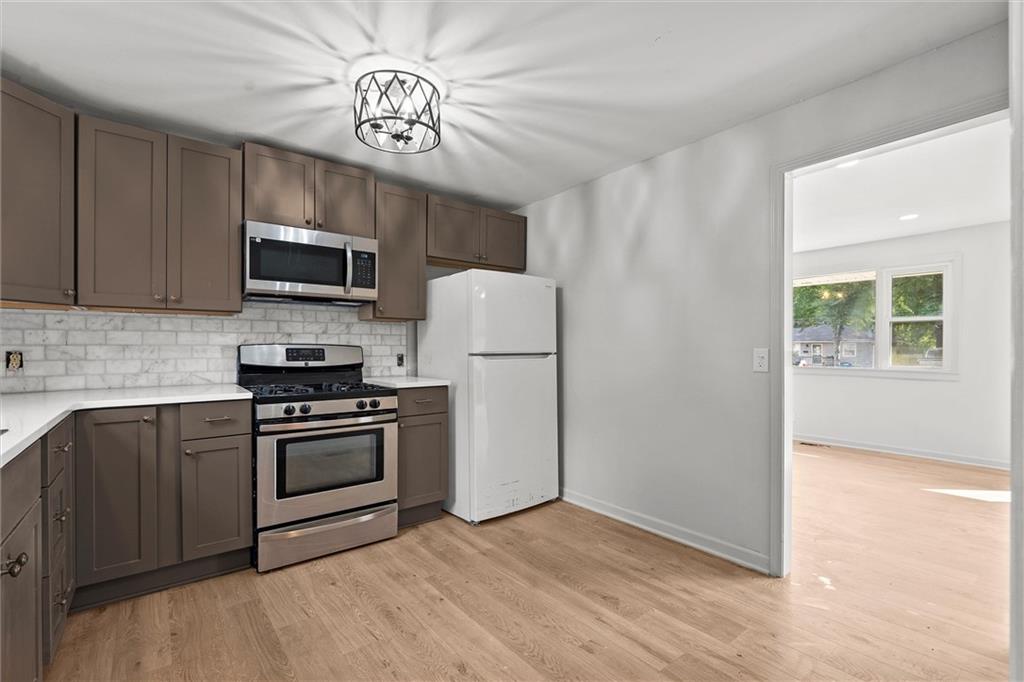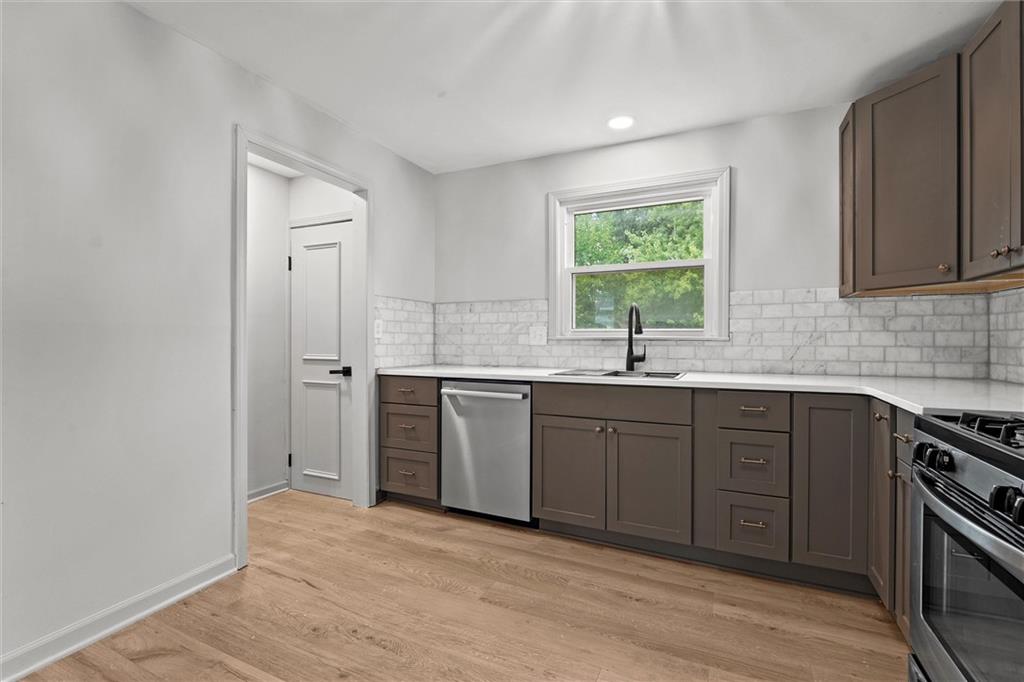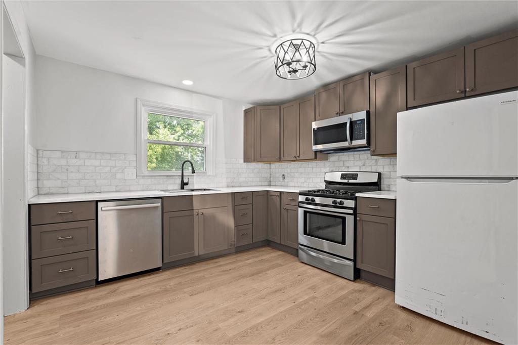 Completely renovated ranch on a spacious, fully fenced 0.6± acre lot, featuring 3 spacious bedrooms, 1 bath, a 1-car garage, and a large horseshoe driveway for additional parking. Step inside to a bright and inviting living and dining space, complete with expansive windows and a cozy fireplace. The brand-new kitchen boasts custom cabinetry, granite countertops, marble backsplash, farmhouse sink, walk-in pantry, and new SS microwave and dishwasher. Convenience is key with a large main-floor laundry and mudroom leading to the private, fully fenced backyard -- ideal for entertaining, gardening, or play. The home also offers three comfortable bedrooms and a beautifully updated bathroom retreat. Recent upgrades include newer windows, newer roof, hot water heater, luxury flooring throughout, updated lighting, fresh paint, new landscaping, and more. Located just off 40 Highway, minutes from both I-435 and I-70, and only a mile from Arrowhead and Kauffman Stadiums, this home is perfect for first-time buyers, families, downsizers, or investors. With an AT ASKING or ABOVE offer, seller is willing to provide $2,500 Credit to buyer.