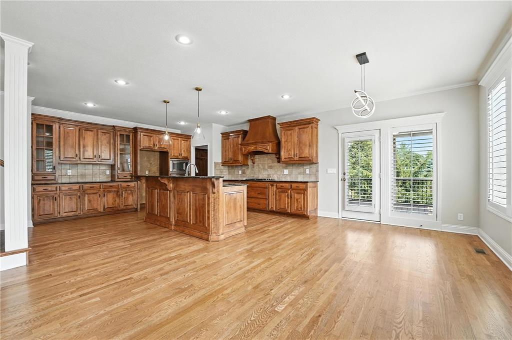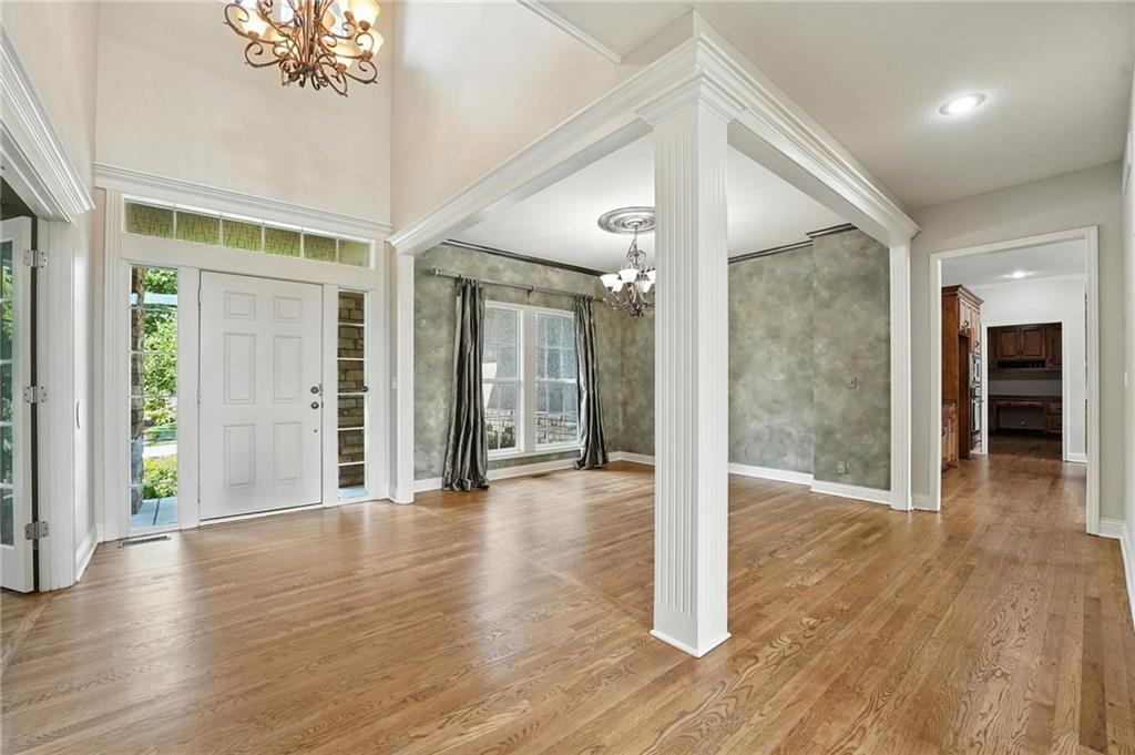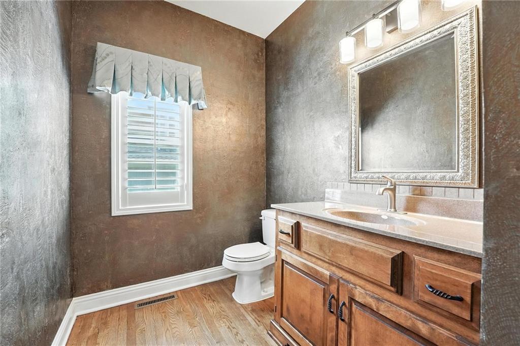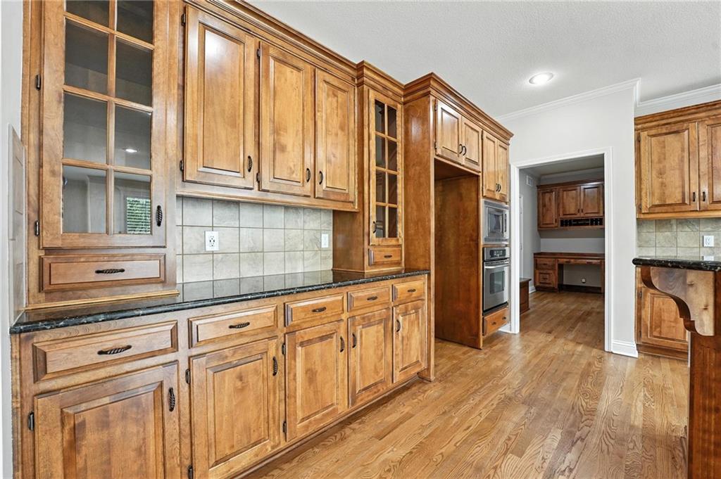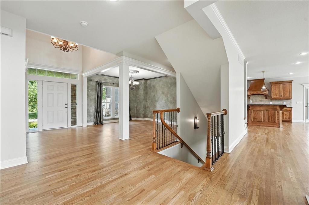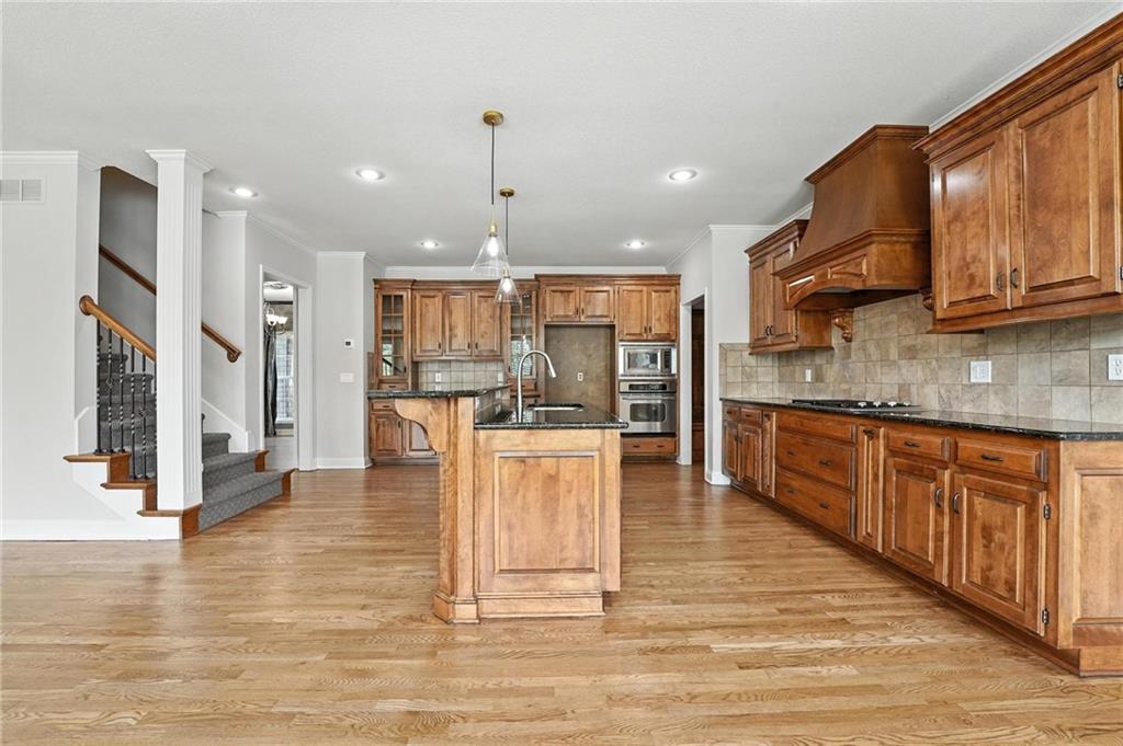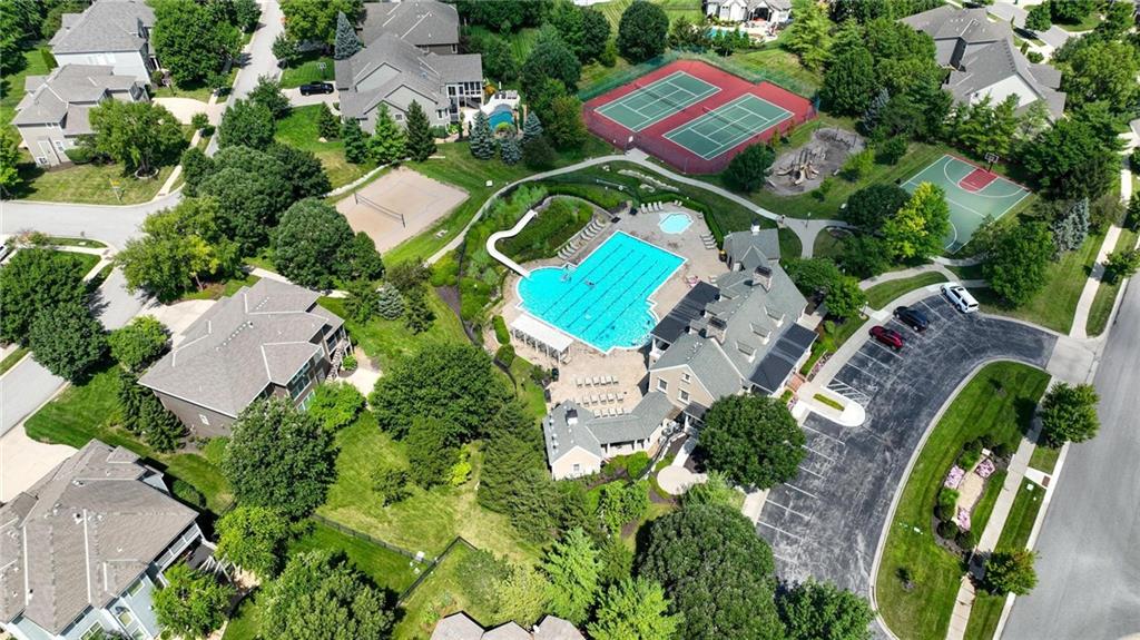 Welcome home to this amazing move-in ready 2-story home in the highly desirable Wilshire Farms. This former model home features a SPACIOUS OPEN floor plan and a FINISHED WALK-OUT basement. Gleaming hardwood flooring throughout 1st and 2nd level, GRAND 2-story tall formal living room features a gorgeous fireplace, and floor to ceiling windows with remote controlled roller shades. Main level flex room can be used as a private home office or a 5TH BEDROOM. Gourmet kitchen features beautiful stained cabinets, large island, stainless appliances with desirable gas cooktop and vent hood. Large hearth room has a 2nd fireplace. Formal dining, Breakfast room, Mud room, Secondary office space with built-in desk, Laundry room, and large walk-in Pantry completes the main level. On 2nd level you will find 4 spacious bedrooms and 3 full bathrooms, large master suite comes with coffered ceiling, master bath has double vanities, jetted soaking tub and a huge walk-in closet. Bright walk-out Basement is an entertainers dream with an open layout rec and family room, full bar and a huge exercise area big enough for a golf simulator. Outside you will love the covered screened-in deck, concrete patio and lush mature landscaping. Top notch amenities includes pool, clubhouse, sand volleyball, tennis/pickle ball courts and play ground. Highly Rated Blue Valley Schools, Walk to BluHawk Shopping and Entertainment, Quick access to 69 Hwy.