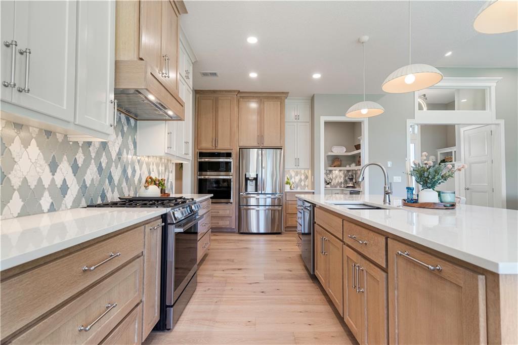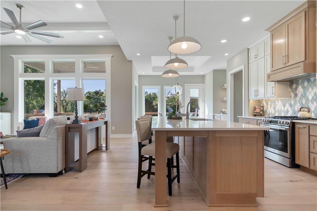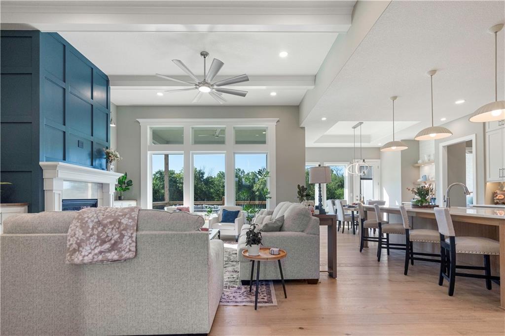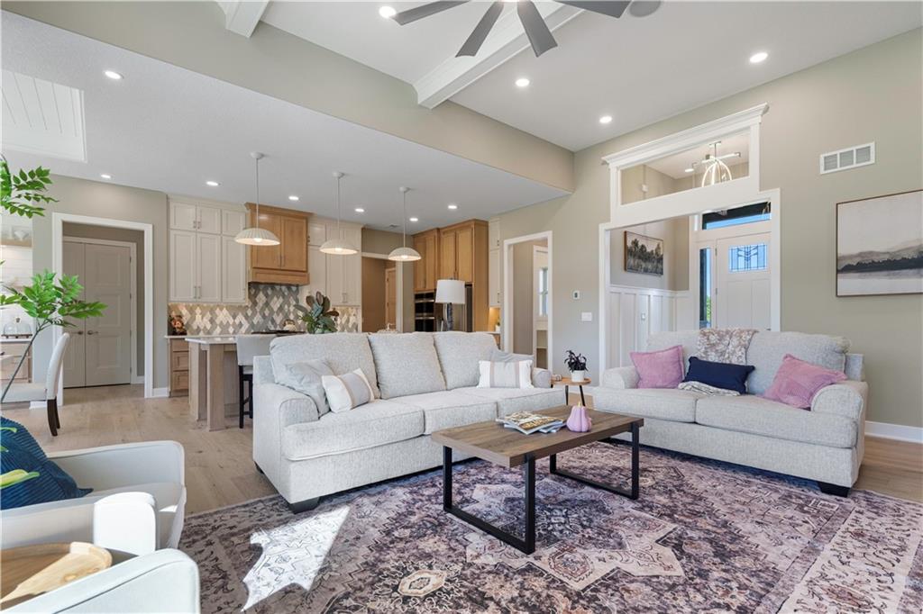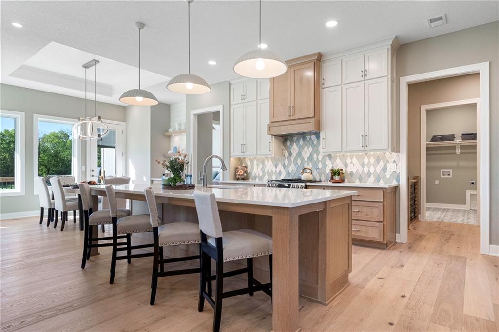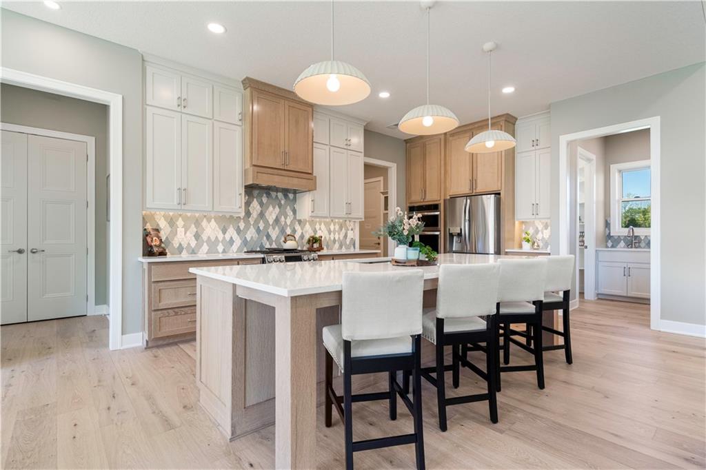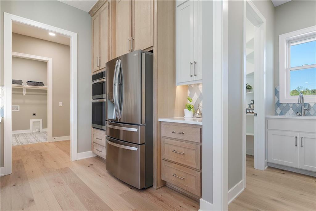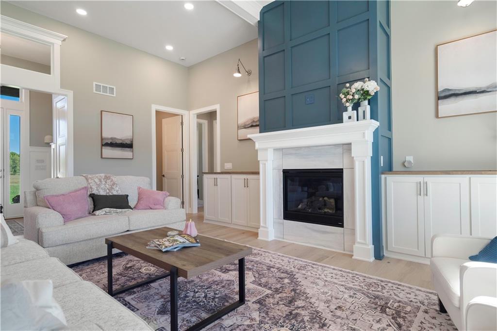 BRAND NEW Reverse 1.5 story by PCDI Homes! This stunning 5-bedroom, 4.5-bath home offers over 4,000 sq. ft. of expertly designed living space on a large 2.51-acre lot. With thoughtful details at every turn, this property combines high-end finishes, modern function, and outdoor living. The main level features soaring 12’ ceilings, white oak hardwood floors, and an open layout anchored by a custom fireplace with wood and tile accents. The gourmet kitchen is a showstopper, boasting a 10’ island, quartz counters, stainless steel appliances, double ovens, prep kitchen, custom tiled backsplash, and built-in hutch in the dining area. The luxurious main-floor primary suite is a true retreat, featuring a vaulted ceiling with wood beams, a cozy coffee bar, and private deck access for enjoying your morning cup with a view. The spa-inspired bath offers a double vanity with quartz counters, an oversized custom-tiled shower with bench, and a freestanding soaking tub. A spacious walk-in closet with tall ceilings and pull-down rods provides smart storage and convenience. Complemented by two additional bedrooms on the main level with a custom-tiled bath and a powder room bath off the entry. A convenient laundry is located on both levels. The finished lower level is an entertainer’s dream with a spacious rec room, wet bar, game area, plus two more bedrooms and two full baths. Car enthusiasts will love the oversized 4-car garage with workshop, sink, epoxy flooring, and a car lift. Outdoor living shines with a covered deck, patio, and firepit — perfect for gatherings. Located in the sought-after Basehor-Linwood school district, this property offers space, style, and sophistication inside and out. *BUILD YOUR DREAM OUTBUILDING / MANCAVE ON THE PROPERTY*