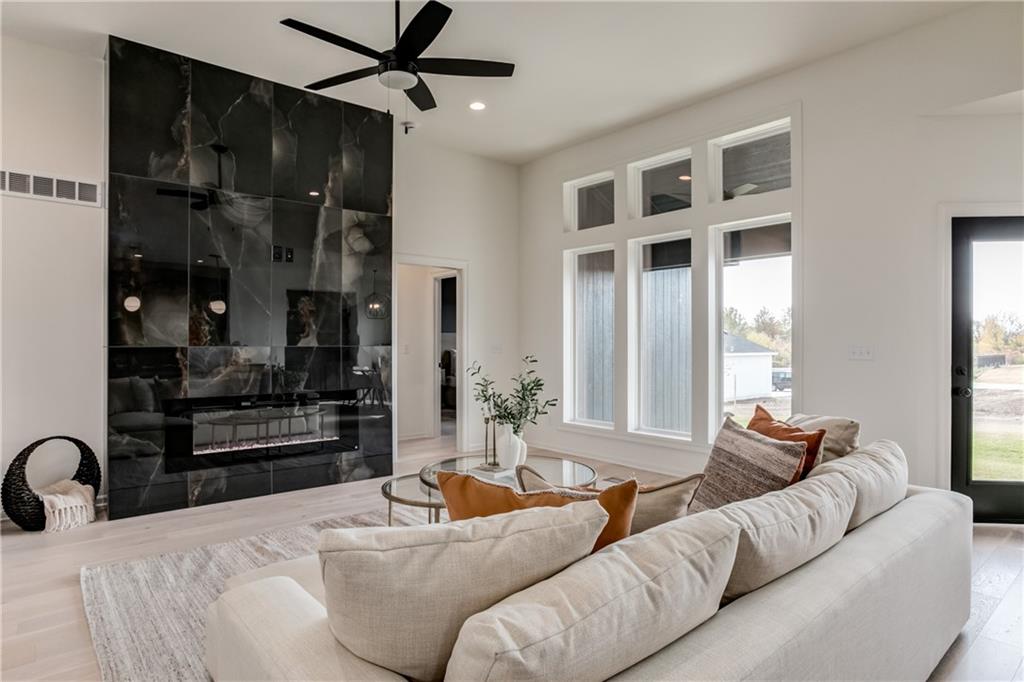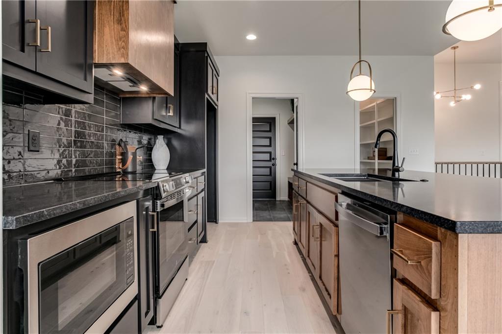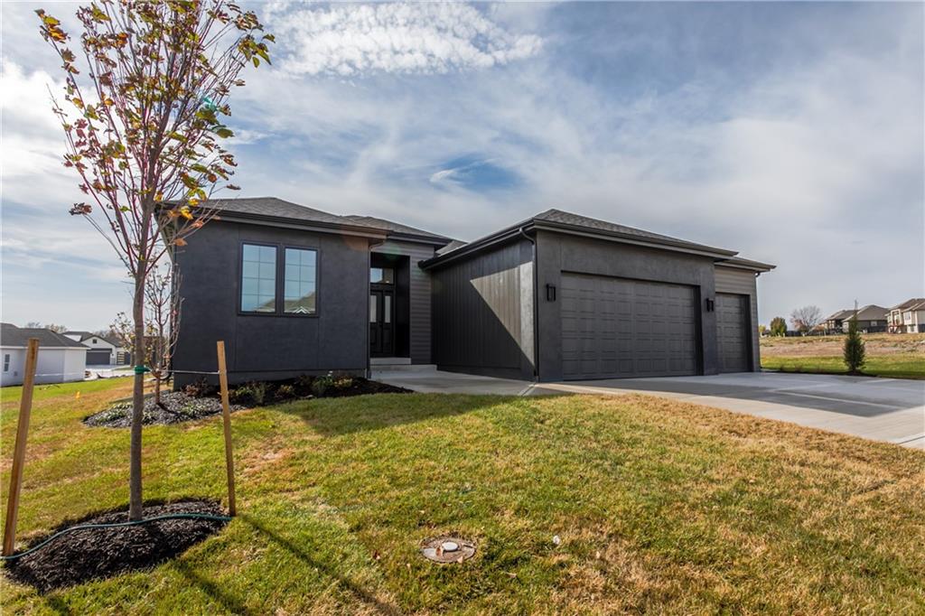 The Woodland II plan features a modern design and a WOW around every corner! Enjoy an open layout flooded with natural light, chef inspired kitchen, walk-in pantry, built-in buffet at the dining nook, covered rear deck, and a spacious finished lower level with stunning wet-bar. This home is located in the Grain Valley School District. **Photos are of a previous model.