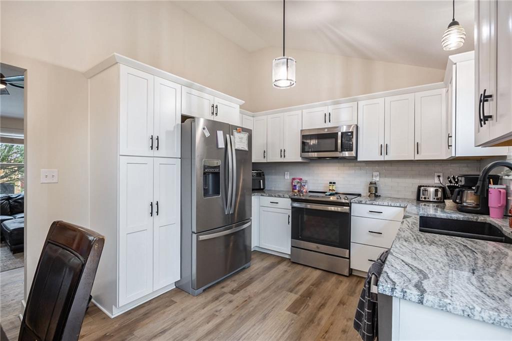 This is a shortsale property! Welcome to this stunning 3-bedroom, 1.5-bath home nestled in an established neighborhood in the Liberty School District. Thoughtfully updated from top to bottom, this home features fresh interior and exterior paint, new doors and windows, luxury vinyl plank flooring, and plush carpet in the bedrooms. The fully remodeled kitchen is a showstopper, boasting brand-new cabinets, granite countertops, stainless steel appliances, and a dining area that overlooks the brand-new deck and spacious fenced backyard perfect for entertaining or relaxing outdoors. The main living room offers a warm and inviting space with a cozy gas fireplace and an impressive 60 ceiling fan, ideal for family gatherings. The finished lower level includes a second living area with a wood-burning fireplace, a convenient walk-out to the patio, a half bath with laundry, and access to an oversized garage with plenty of space for storage or a workshop. Additional updates include a brand-new HVAC system, updated plumbing, and electrical. Be sure to check the supplements for a full scope of work this home is move-in ready and wont last long!
