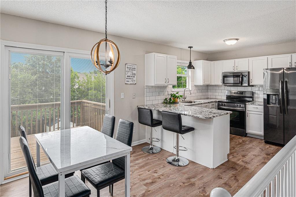 Are you looking for a lovely home in a quiet neighborhood in Gardner? Come make this one yours! Step into this Double Gate open vaulted ceiling living room then up a few stairs to eat-in kitchen with brand new refrigerator and just over 1 year old granite countertops, backsplash, stove, dishwasher and microwave with walk-out to deck overlooking privacy fenced in back yard! Down the hall to the full main bathroom, 2 bedrooms and primary bedroom featuring walk-in closet and full primary bath. Back down the stairs and down another set to the lower level, you'll find a 2-car garage, newly finished 4th bedroom with walk-out to back yard as well as plenty of storage space in the unfinished crawl space and just over 1 year old washer and dryer! Additional updates and repairs just over a year old include light fixtures and ceiling fans, carpet and LVP flooring throughout, interior and exterior paint, driveway and sewer line!