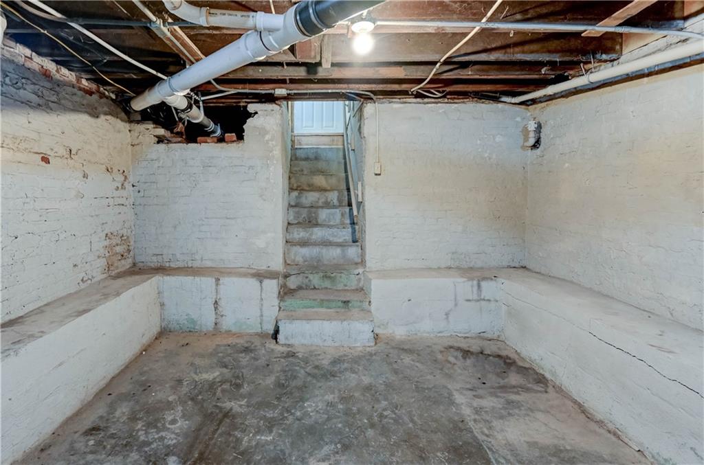 4 bedroom 1.5 bath home. Has newer paint and flooring. Home has bedroom on main level and 3 bedroom upstairs. Home does have a basement. Home also has detached 2 car garage.