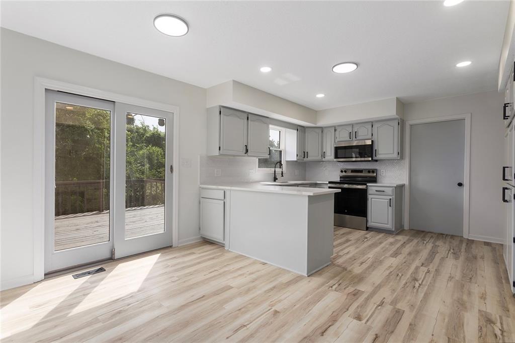 Appraisal in hand for $430,000. Move-in ready with all the updates you want. Fresh interior & exterior paint, new LVP flooring, modern fixtures, and new appliances set the tone. The bright living room showcases oversized windows, while the refreshed kitchen features quartz countertops, painted cabinetry with sleek black hardware, and a handy pantry/desk nook. The generous primary suite offers a walk-in closet and spa-style bath with a custom tiled shower; secondary bath is fully updated with designer tile. Enjoy outdoor living on the expansive deck overlooking a deep, grassy yard, plus a walkout lower level with patio for extra hangout space. Attached garage, convenient location near shopping, dining, and parks.