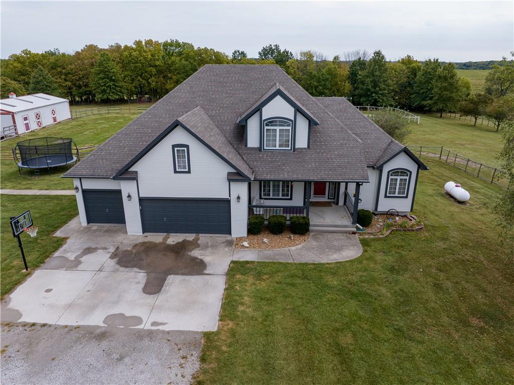 Welcome to your dream country retreat! This spacious and versatile home offers four bedrooms, two full bathrooms, and two half baths. The main living area boasts a stunning vaulted ceiling and a cozy fireplace, creating a warm and inviting space. The finished basement includes its own fireplace and a second full kitchen, perfect for multigenerational living, entertaining guests, or game day parties. Step outside and you'll be greeted by a beautiful tree-lined driveway that blooms white in spring and bursts into vibrant fall colors. The front yard features two large grassy areas, perfect for family games, events, and gatherings. Don't miss what comes outside with a large barn with horse stalls, a corral, and a fenced area—ideal for horse owners or hobby farmers. A screened-in that perfect for relaxing outside, A gun range for recreational shooting, a Chicken coop ready for your starter flock and Ample space for ATV/UTV riding. For all you dog lovers there is an integrated dog kennel connected to the garage for convenience and care. The homes comes with a New air conditioner, furnace, water heater, microwave, dishwasher, and garbage disposal—all within the past 2 years This property offers the peace and beauty of rural living with easy access to town.