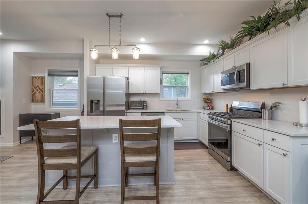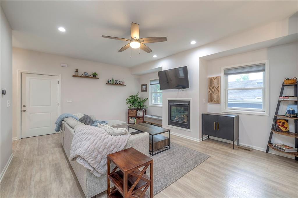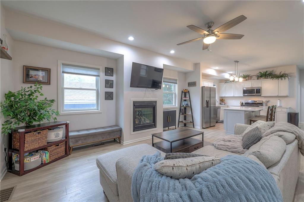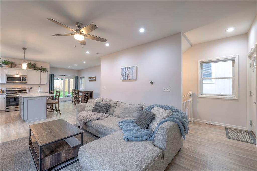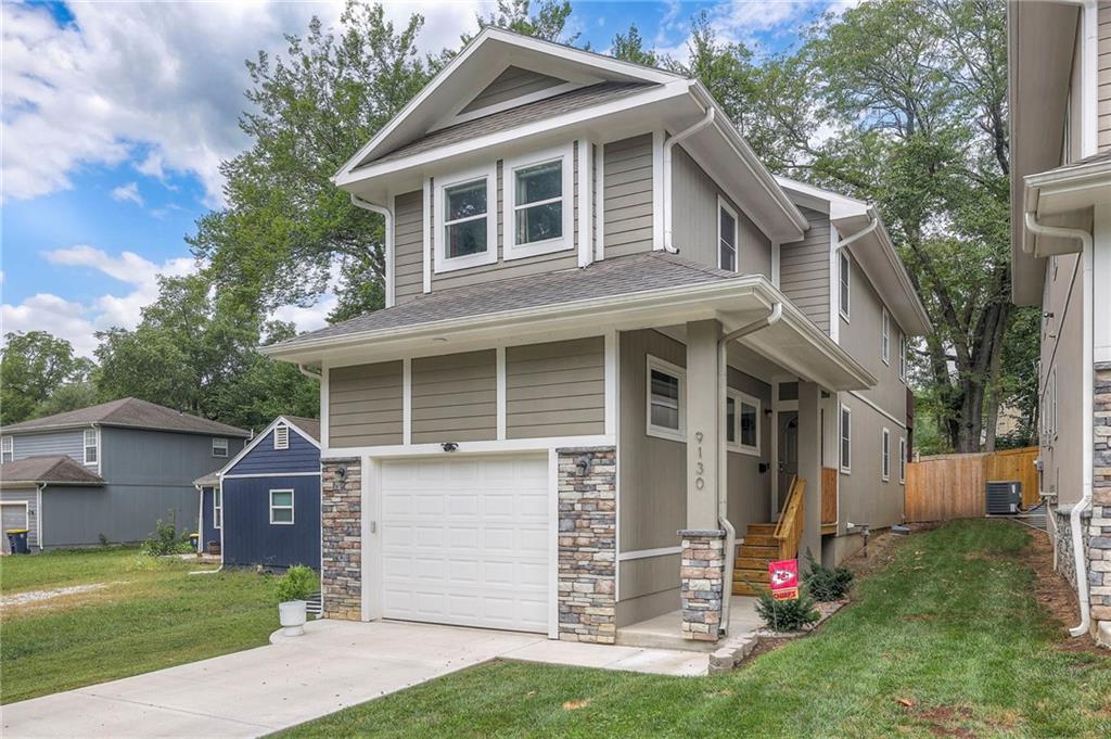 This almost new 2-story home offers 3 bedrooms, 3.5 baths, and an open-concept layout in a prime location just minutes to Waldo, The Plaza, and the Power and Light District. The main level features a light, neutral palette, a cozy fireplace, and a stylish kitchen with stainless steel appliances (including gas range), quartz countertops, and an oversized island—perfect for gatherings. Upstairs, the primary suite is a true retreat with a private deck off the bedroom, huge walk-in closet, and spa-like bath. Laundry is conveniently located on the bedroom level. The finished lower level with half bath offers flexibility for a home office, rec room, or movie nights. Outside you'll find a great backyard including a patio and a wood fence, creating a private backyard oasis for pets, play, or entertaining. This home is only 3 years old! Move-in ready and waiting for you!
