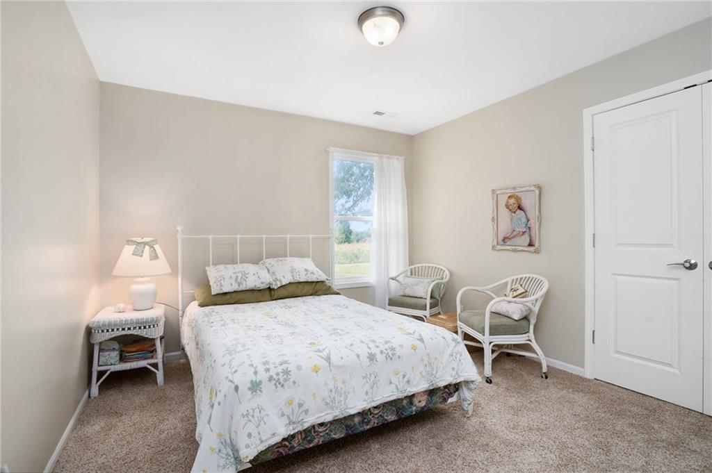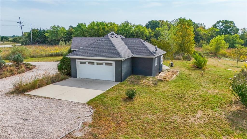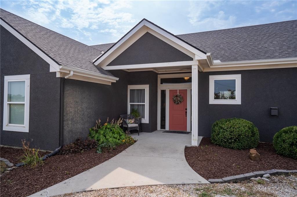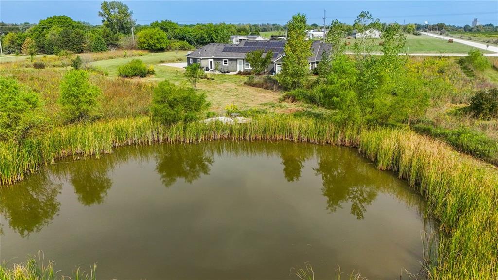 Welcome to Prairie Paradise! An exceptional, custom built, ranch style home with main-level living tucked away on 5 acres of serene countryside. This beautiful home features 4 spacious bedrooms, 2.5 bathrooms, a sunroom, sitting room, plus so much more!! As you step into the entryway, you are greeted with an open floorplan design, surrounded by large picture windows flooded with natural light & exceptional views. The spacious living room showcases a fireplace and beautiful built-ins, as well as an additional gathering space perfect for a piano, added seating, or area to entertain. The dining room, complete with a serving area/coffee bar, opens to the stunning kitchen with beautiful countertops and backsplash, a generous island for culinary space & seating for four, plus a huge walk-in pantry. Retreat to the private primary suite offering both comfort and relaxation, large windows, spacious walk-in closet, and access into the laundry area. Relax in the adjacent sunroom with your morning coffee or in the evening watching nature. Two additional bedrooms share a sitting area, perfect for guests, along with a jack and jill bathroom with hallway access to the 4th bedroom. Let's not forget the generous closet space, garage storm shelter, solar panels, geothermal, and radiant heat flooring. Step outside onto the peaceful back porch perfect for relaxing after a long day, or take a nature walk to the private pond. For those who love to entertain, explore, or retreat to a private & peaceful country lifestyle, this property has it all, while still being within reach of amenities in quaint downtown Baldwin City, and within an easy commute to KC, Lawrence, Ottawa, KC and surrounding.