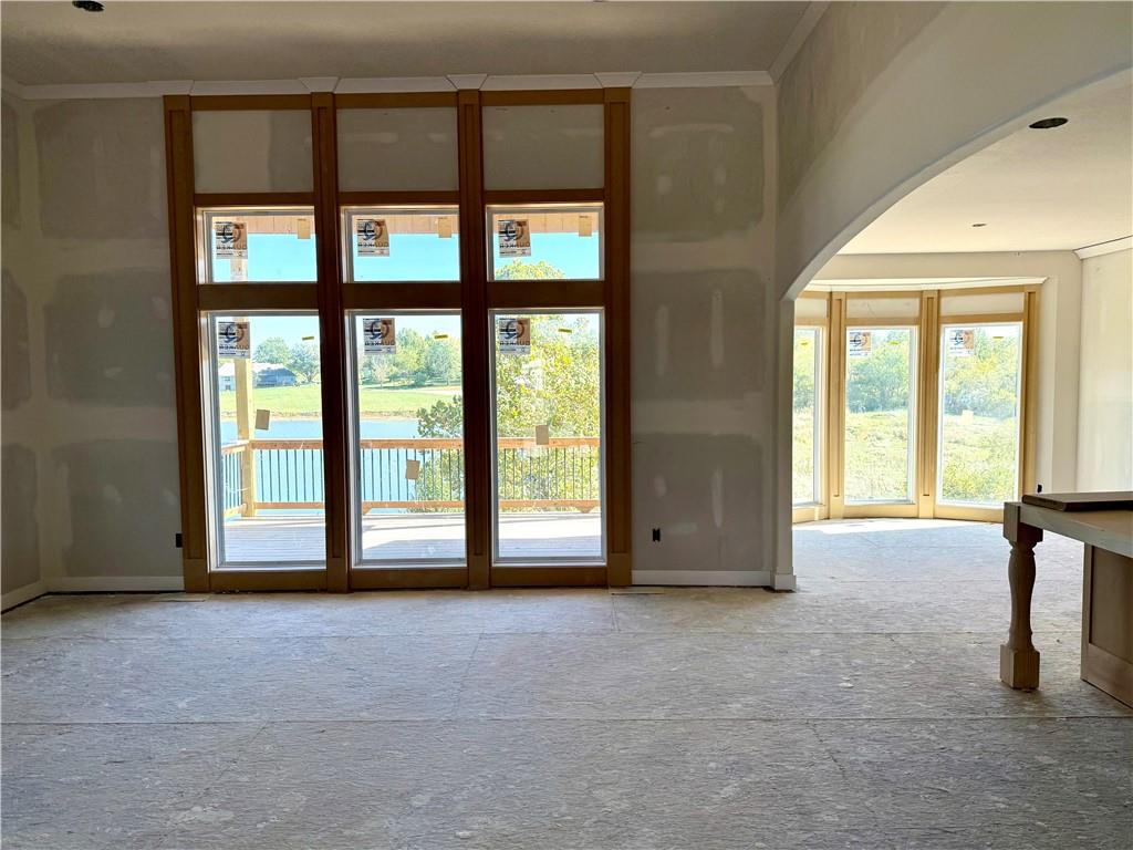 The "NOAH" by Robertson Construction! Positioned on a PREMIUM LAKE-BACKED LOT offering an outstanding view! This Stunning Reverse 1.5-Story offers 2822 sq. ft. with a beautifully designed living space and exceptional detail throughout! Floor-to-Ceiling windows overlook the backyard creating a seamless connection between indoor and outdoor living! The open concept design features a Corner Stone Fireplace, Real Hardwood Floors, Private Master Suite with a Luxurious Bath, Walk-in Shower, Huge Soaker Tub and access to the Laundry Room which is complete with a utility sink. Bedroom 2 is also on this level, ideal as a guest room or home office and 2nd Full Bath. The gourmet Kitchen is well designed with Custom Built Cabinets, Solid Surface Countertops, and Walk-in Pantry. The oversized Deck has easy access from both the Breakfast Room and Master Suite. A Finished Lower Level WALKOUT offers more Floor to Ceiling Windows, WET BAR with Beverage Fridge, 2 more Bedrooms, 2 Baths, Family Room and a GENEROUS AMOUNT OF STORAGE in 2 STORAGE ROOMS. Patio at the Walkout offers another great view leading to the backyard.