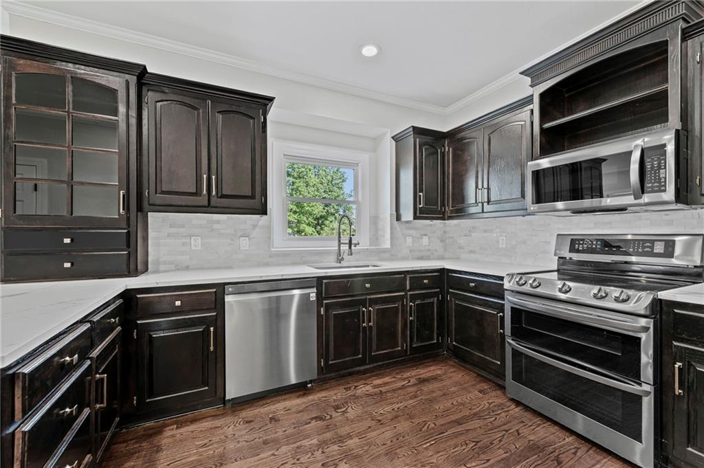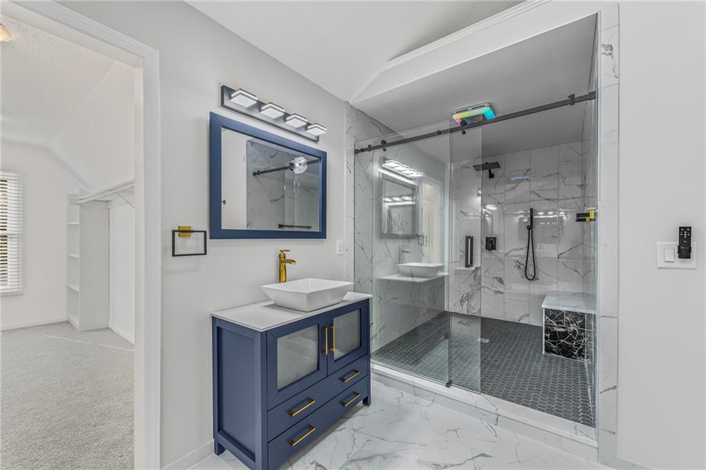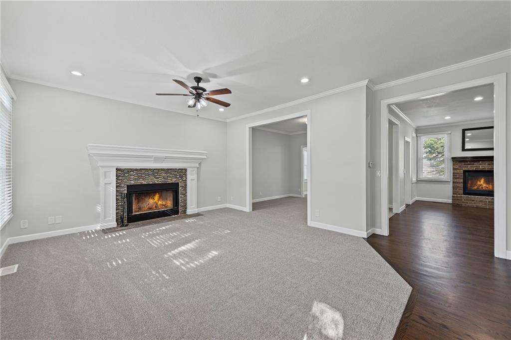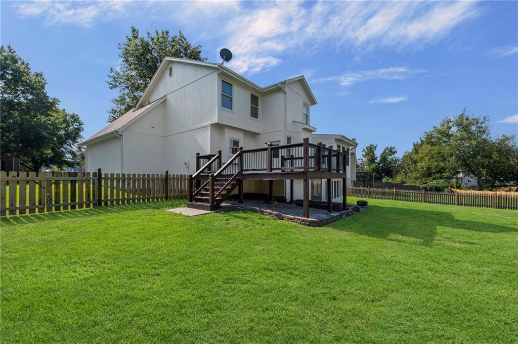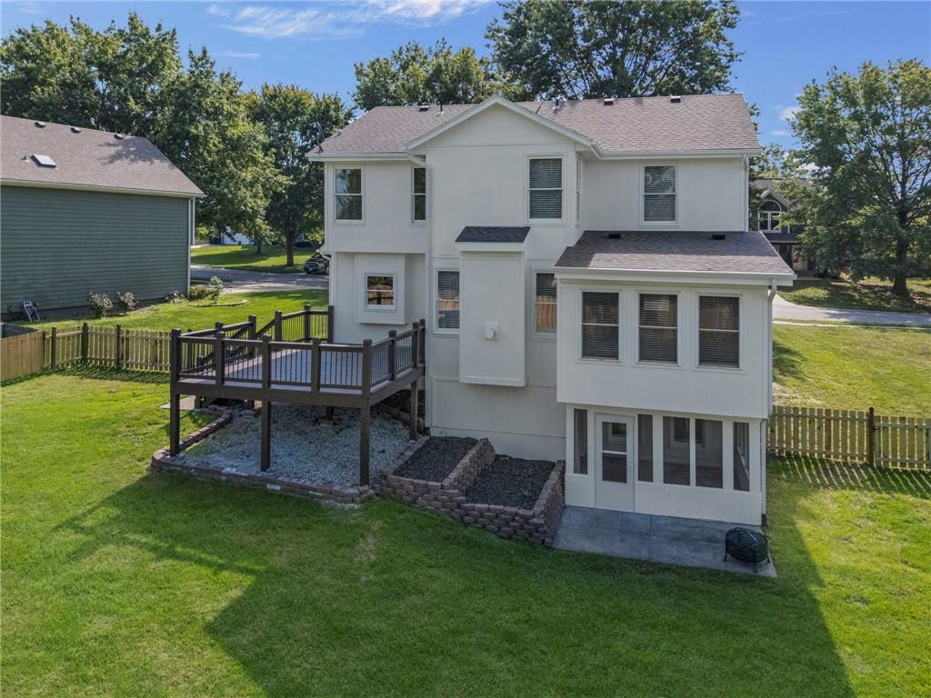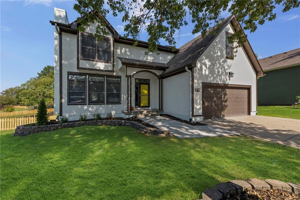 NEWLY REMODELED HOME CHECKS ALL THE BOXES! 4 bdr, 2 story, finished walk-out basement, two laundry areas, two fireplaces, nice sized garage with plenty of cabinets, spacious deck, huge fenced in backyard, close to shopping and easy access to 71 to 435/470. Easy access to the Kansas side. SO MUCH NEW FOR THE PRICE!!! Freshly painted, exterior and interior, landscaped, new concrete front walkway. Kitchen and Hearthroom room updated with stained cabinetry, refinished hardwoods, new backsplash, sink and faucet. Master bedroom/bathroom have been remodeled with barn door, new vanities/sinks/hardware...new toilet closet...amazing new huge 7.5 x 5.5 walk-in tiled shower! Large walk-in master closet w/natural lighting. Walk-in master closet has laundry hookups/stackable washer & dryer...such convenience to have laundry on two levels! Master bedroom had French Doors...Barn Door to Master Bath and another adjoining door for added convenience to 4th bedroom/office/sitting room/nursery. Updated hall bath and half baths. Enjoy family evenings in the large finished walk out basement with all new flooring. Finished basement has half bath as well as bar/sink area w/additional cabinetry...walks out to an enclosed sun room/porch for additional space/entertaining. Peaceful early mornings sitting on the spacious deck sipping coffee overlooking the back yard. Back yard would be great for fall barbecues and soccer games. This home with its family room and hearth room fireplaces exudes comfort and coziness. Forget projects...this home is ready for you to move in and relax!
