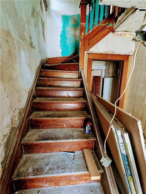 Investor special, sold as is. Surrounding area has seen housing improvements so this is a great opportunity to make an impact on your pocketbook as well as the community. Demolition and some reconstruction has begun, as it needs all major upgrades. Many new windows have been installed, a wall was removed to expand the kitchen space, and some rooms have been sheet rocked. Original wooden oak floors throughout, as well as original doors, trim and baseboards. Some plumbing and wiring have been installed. With a nice front porch, potential rear deck, large bedrooms and bathrooms, open concept kitchen/dining area, and appreciation of classic old homes, what looks like a challenge can become someone's showcase.