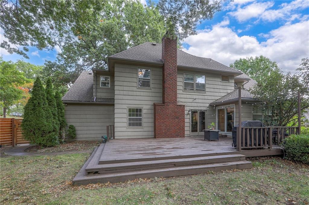 Set on an oversized, tree-lined lot, this beautifully updated home blends French Country charm with modern function. With five bedrooms upstairs, a sixth non-conforming bedroom in the walk-up finished lower level, five tiled bathrooms, and two laundry rooms, this home offers the space and flexibility for today’s families' needs. Blonde hardwood floors and fresh paint brighten the main level. The recently updated kitchen features custom cabinets, quartz countertops, and stainless steel appliances, flowing into multiple living and dining areas. A bonus room off the mudroom works well as a home office or flex space. The finished lower level includes a full bath, non-conforming bedroom, wet bar, wine fridge, and spacious living area that suits guests, in-laws, or potential rental income. Upstairs, refinished cottage oak floors and updated bathrooms enhance comfort. The primary suite features a double vanity, soaking tub, walk-in shower, and two closets, along with an additional closet that includes its own laundry hookups and extra storage space. A connected non-conforming bedroom extends from the primary, offering the perfect setting for a nursery or private office. You’ll also find the remaining bedrooms along with two recently remodeled bathrooms, including one that serves as a private ensuite. Outside, mature trees and perennial gardens frame a large backyard with four raised beds, a tree swing, and open space for a play-set or neighborhood games. A front yard basketball hoop is ready for play! Located minutes from Blue Hills Country Club and South KC favorites, this home offers timeless style, modern updates, and everyday versatility.