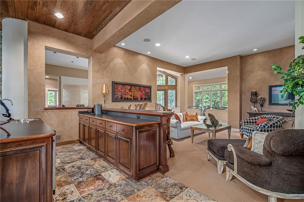 Welcome to an exquisite contemporary residence nestled in prestigious Hazelwood in Leawood. This remarkable home offers an impressive 7,085 square feet of sophisticated living space, designed to cater to modern lifestyles. Upon entering, you’ll be captivated by the expansive open-plan living areas.The home features four generously sized bedrooms, each with its own en-suite bathroom, ensuring privacy and convenience. The main floor primary suite is a tranquil sanctuary, offering a spacious layout and a beautiful view of the treed yard. The primary bathroom features high-end finishes, double vanities, large shower and separate tub and TWO walk-in closets. The kitchen is a culinary enthusiast's dream, equipped with sleek countertops, premium appliances, and ample storage. It seamlessly connects to a spacious dining area, ideal for hosting intimate dinners or larger gatherings. Ample natural light floods the interior, highlighting the elegant design elements and tasteful finishes throughout. The large great room, featuring a massive stone fireplace, provides a perfect spot for relaxation and socializing. Adjacent to the great room, you'll find a light-filled atrium, including a grill! A formal living space, also featuring a marble fireplace, includes a custom bar. The beautiful deck, accessible from both the living room and great room, allows for viewing of the firepit area and lots of nature. The lower level encompasses three additional bedrooms, all en-suite, a large office with fireplace, spacious family room, gaming area, non-confirming fifth bedroom. Situated on a large lot, the outdoor space is equally impressive, offering lush landscaping and ample room for outdoor activities or future customization. This is a one and a half acre lot - please see county map for description. This home combines luxury, functionality, and modern design, creating the perfect setting for your next chapter. Experience the epitome of sophisticated living at this stunning Leawood home.