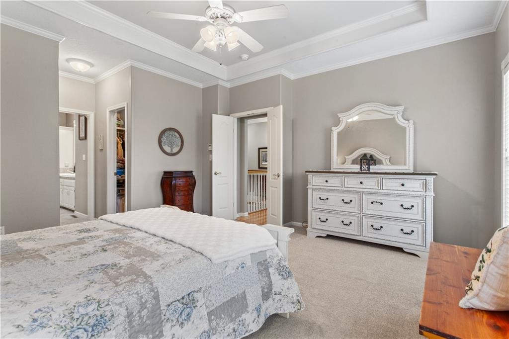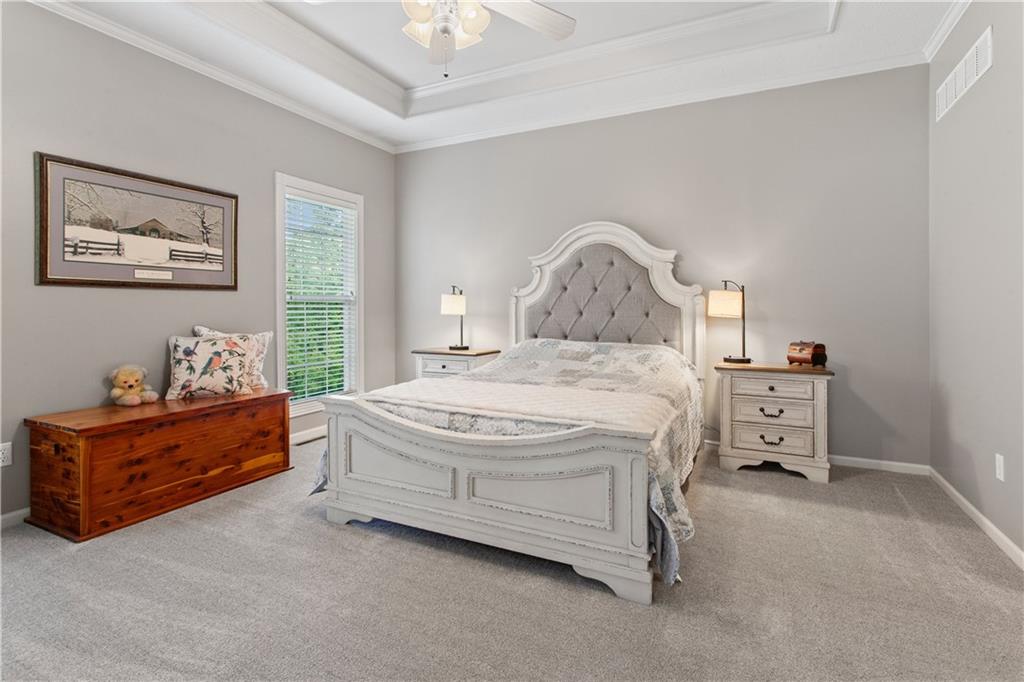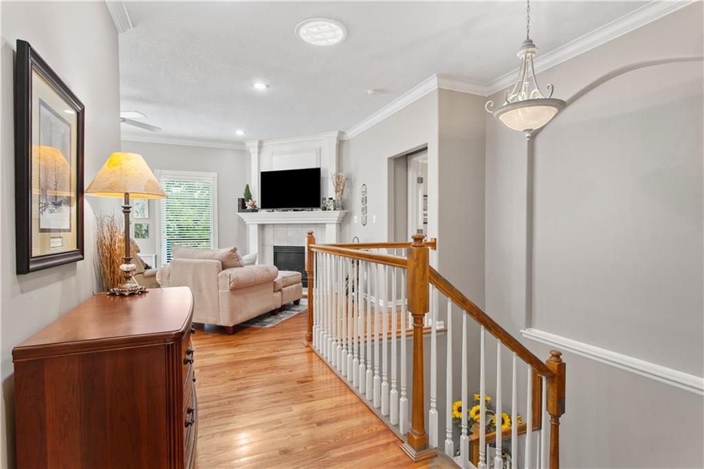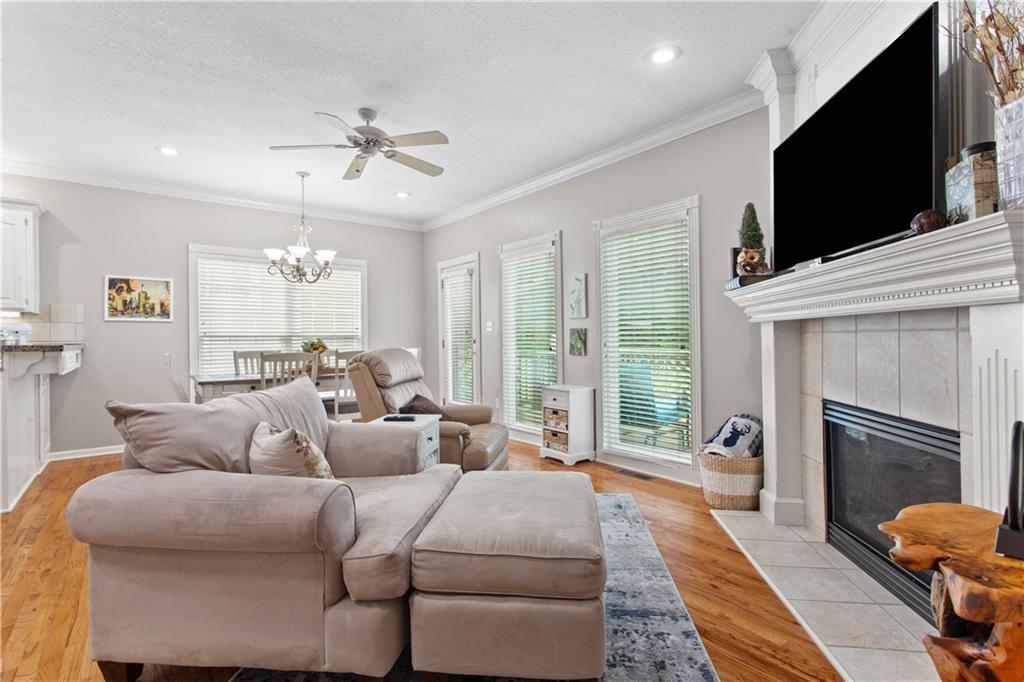 Add elegance to your life while keeping things simple in this gorgeous home. From the impressive curb appeal to the thoughtful details inside, this one stands out. Tall ceilings bring a sense of space and grandeur, while upgraded trim, crown molding across the main level, and rounded drywall corners add a refined touch. Built-ins and beautiful wood floors flow throughout, and natural light is everywhere thanks to large windows and solar-tube skylights. The kitchen offers granite counters, crisp, painted cabinetry, and opens to a cozy hearth room with gas fireplace overlooking the freshly refinished deck and treelined backyard. An additional oversized living room with space for dining makes entertaining easy. The master suite is a true retreat with gorgeous windows, double closets, dual vanities, jetted tub, and shower. The walk-out basement is another highlight—featuring a generous bedroom with attached full bath, plus an office or TV room space, the additional finished areas perfect for a workout, craft room, or expanded living, yet still with ample storage space. The outdoor space of this home is also amazing. Wonderful 15x13 deck overlooking tree lined backyard and below( accessed through the walk-out basement) a great 21x15 new patio. And with the HOA handling lawn care, sprinklers, trash, shrub trimming, and even exterior paint, you can simply relax and enjoy this beautiful home, inside and out. Also, don't miss the tankless hot water heater.. never run out of hot water!