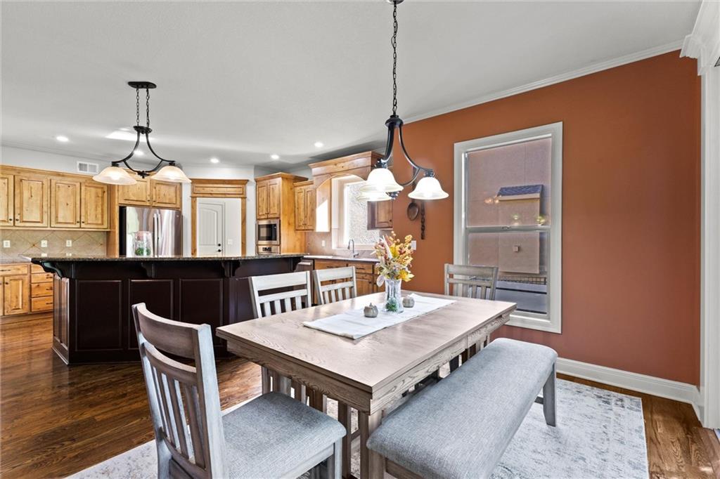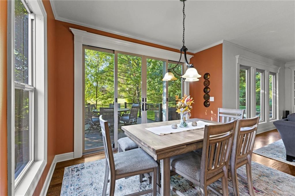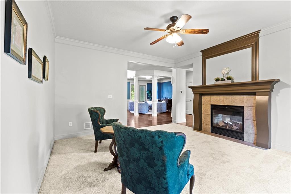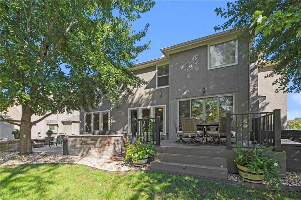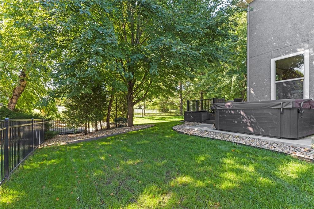 Welcome to this beautifully maintained two-story home in Coffee Creek Crossing- Overland Park. Step inside to find hardwood floors, quiet sitting area, private office, and a grand room with a see-through fireplace. The open floor plan flows into the spacious living room and an eat-in kitchen, featuring high-end stainless steel appliances, granite countertops, and a walk-in pantry. Updated windows allow abundant natural light to pour in, or step outside for private outdoor living space-relaxing backyard perfect for entertaining—with beautiful landscaping, a new patio, a built-in fire pit, and a private hot tub. Upstairs offers new carpet throughout all bedrooms, including a spacious primary suite, with convenient laundry access from the primary closet and hallway. There are three additional spacious bedrooms with generous walk in closets. A Hollywood-style bathroom connects two of the bedrooms, ensuring privacy, and the third has its own private bath. The finished lower level is multifunctional that is ideal for hosting- offering a living space, kitchenette, half bath, home gym, play area, and plenty of storage. Close to amenities, with easy access to Coffee Creek trail. Conveniently located near shopping, entertainment, near major highways, and award-winning Blue Valley Schools.