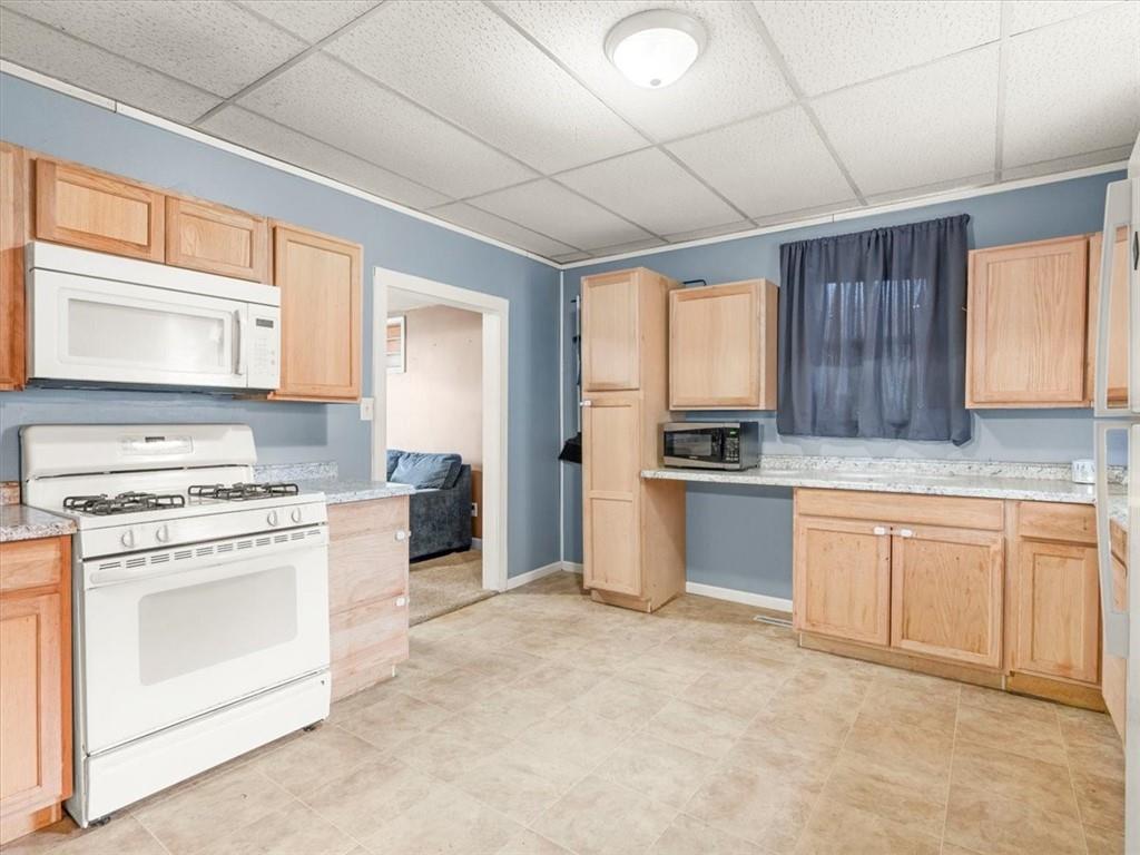 Looking for an economical place to call your own? This 2-bedroom, 1-bath home offers a spacious layout designed with practicality in mind. The kitchen comes fully equipped with appliances, making move-in simple and stress-free. A newer roof adds peace of mind, ensuring low maintenance living for years to come. The seller is also offering a 1 year home warranty! Sitting on a level lot with off-street parking and a one-car garage or storage shed, this property provides both convenience and functionality. Whether you’re a first-time buyer, looking to downsize with one level living space, or searching for a smart investment, this home is the perfect choice!