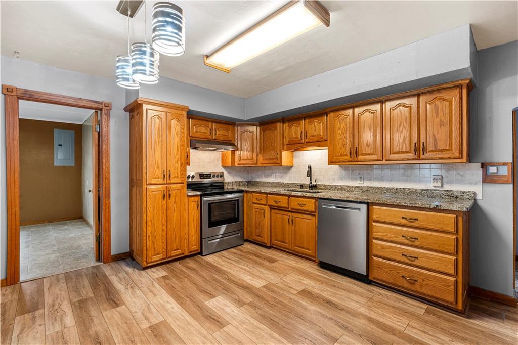 This well-maintained 3-bedroom, 1-bath ranch-style home offers comfort and convenience with 1,160 sq. ft. of living space. Step inside to an inviting eat-in kitchen featuring oak cabinets, granite countertops, stove, dishwasher, and beautiful wooden plantation blinds throughout. The bathroom includes a spacious shower for added ease. Outside, enjoy the fenced yard, carport, detached garage/shop, and a large covered deck—perfect for relaxing or entertaining. Vinyl siding and vinyl windows add to the low-maintenance appeal, while central heat and air keep the home comfortable year-round. Conveniently located near shopping, dining, and business districts, this property is an excellent candidate for FHA, VA, USDA, and conventional financing.