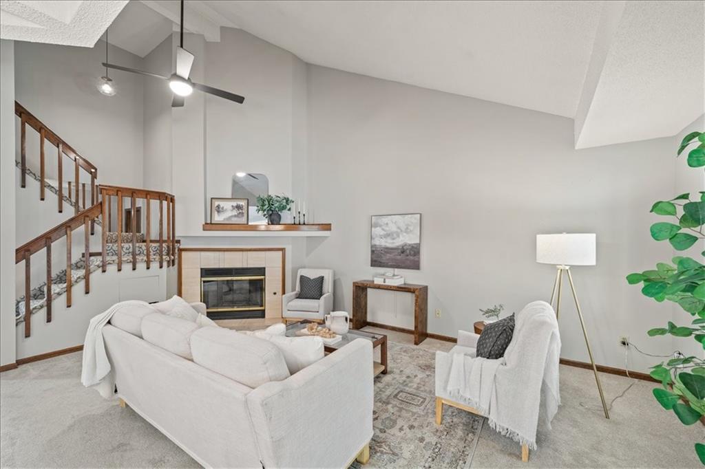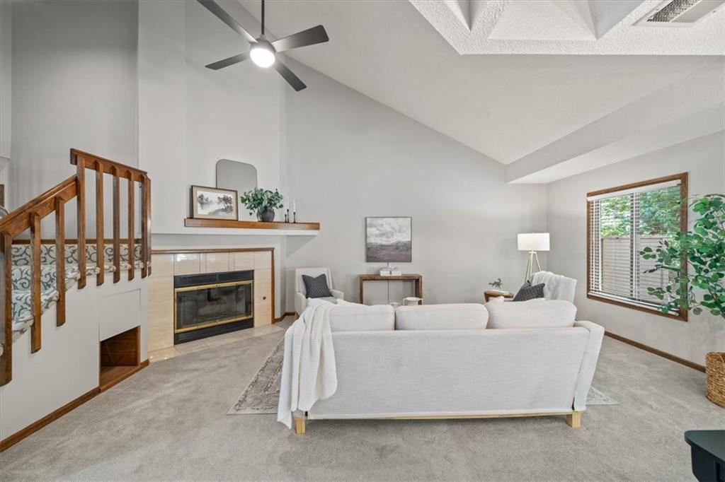 Welcome to Mission Lake! This maintenance-provided community offers a variety of amenities, including a boat dock, clubhouse, community center, exercise room, hobby room, swimming pools, social events, and scenic trails surrounded by nature. This townhome has soaring vaulted ceilings, a cozy fireplace, a private patio to enjoy a morning cup of coffee or glass of wine to top off your day, updated kitchen and main floor bathroom, plus a spacious primary suite with an extra room perfect for an office or hobby space. Located in southern Kansas City, it’s just minutes from Martin City's renowned spots like Jack Stack and Martin City Brewing, with easy highway access for seamless commuting. The HOA covers numerous services, including lawn care, snow removal, water, trash, roof repair and replacement, and siding maintenance. With its wealth of community amenities and extensive HOA coverage, this townhouse is a steal at its current price.
