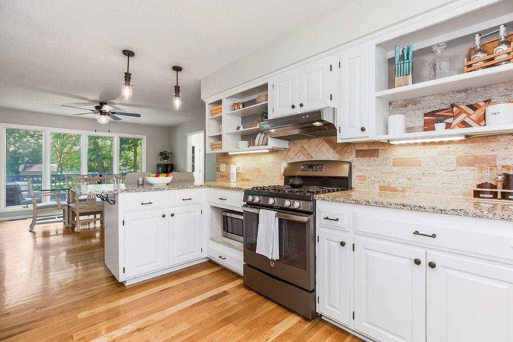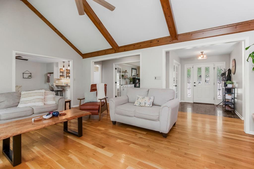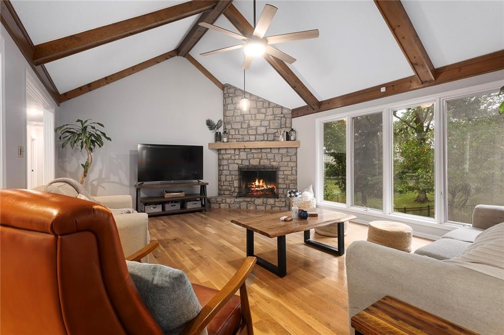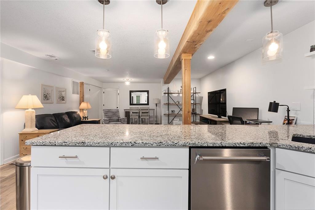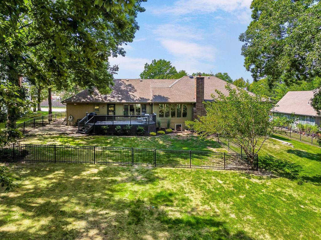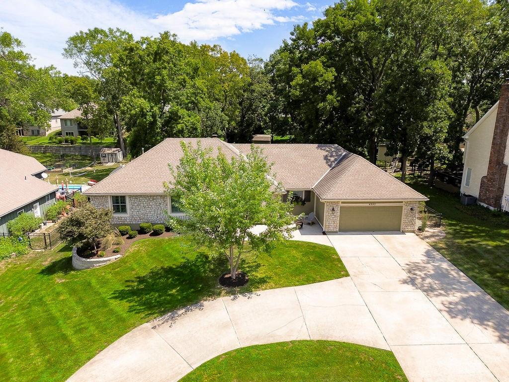 This charming 5-bedroom, 3.5-bathroom home in Lee's Summit offers more than meets the eye—boasting over 4,500 square feet of living space in the highly desirable Blue Springs South school district. Step inside to find beautiful wood floors, vaulted ceilings, granite countertops, and an abundance of natural light throughout. The open-concept main level features a large kitchen, expansive living room with fireplace, and a huge master suite that’s sure to impress. The walk-out lower level is truly like having a second home! Complete with a mother-in-law suite featuring its own full kitchen, living room, bedroom, and bathroom, it also includes a guest bedroom, rec room with wet bar, and a projector-ready movie area—perfect for entertaining family and friends. Outside, this home sits on over a half-acre treed lot with a partially fenced backyard, deck, and a utility shed for extra storage. The circle drive offers plenty of parking, while the thoughtful touches—like a custom dog door leading to a ramped dog house off the laundry room—make it unique and functional for every lifestyle. This home truly has it all: space, updates, character, and a one-of-a-kind layout ready to fit your family’s needs. Don’t miss your chance to make it yours!