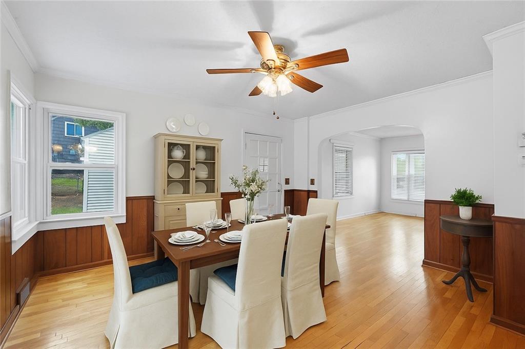 Step into this charming 1.5-story home offering 4 spacious bedrooms and 3 full bathrooms with over 2,300 square feet of living space. The main level features hardwood floors in the living and dining rooms, a full bath, and a flexible main-floor bedroom. The kitchen includes built-ins, a cozy bench, and access to an insulated porch, perfect for relaxing year-round. Upstairs, you’ll find three oversized bedrooms, including a large primary suite with its own ensuite bath and gas fireplace. Outside, enjoy a deck overlooking the fenced backyard, a two-car garage connected via the porch. Additional highlights include newer windows, wood-burning fireplaces in the living room and basement, and a walk-out basement with sump pump. Conveniently located off Brighton Avenue, this home combines historic character with generous space and potential.