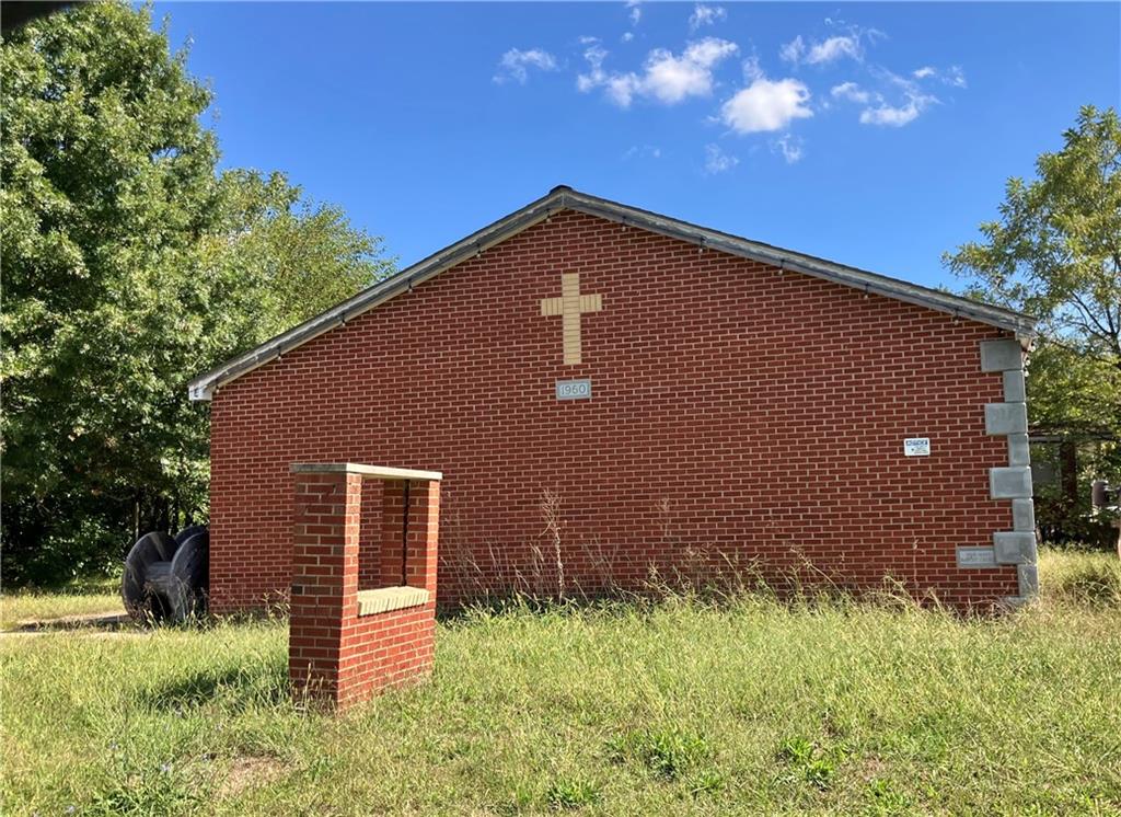 1 ACRE with a Spacious Brick Building & Metal Outbuilding, previously was a church & event center, now it's a Storage Facility. Everything church related has been removed except for several stained glass windows. There are THREE levels & two have Garage Doors so you can drive in, park or store large items. Concrete Floors throughout. There are TWO half baths & a kitchen. 1st level = 30 fr x 50 ft. 2nd level = 30 ft x 54 ft. 3rd level = 30 ft x 60 ft. Do not walk property without permission.