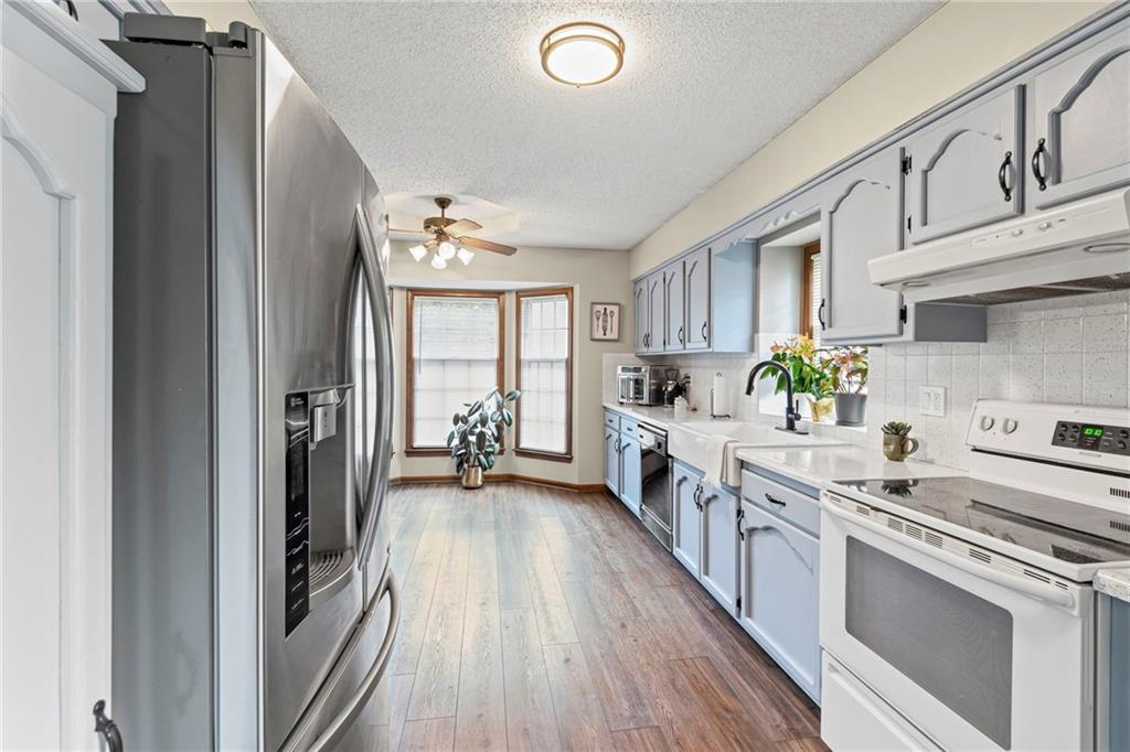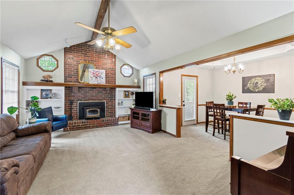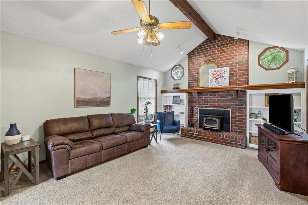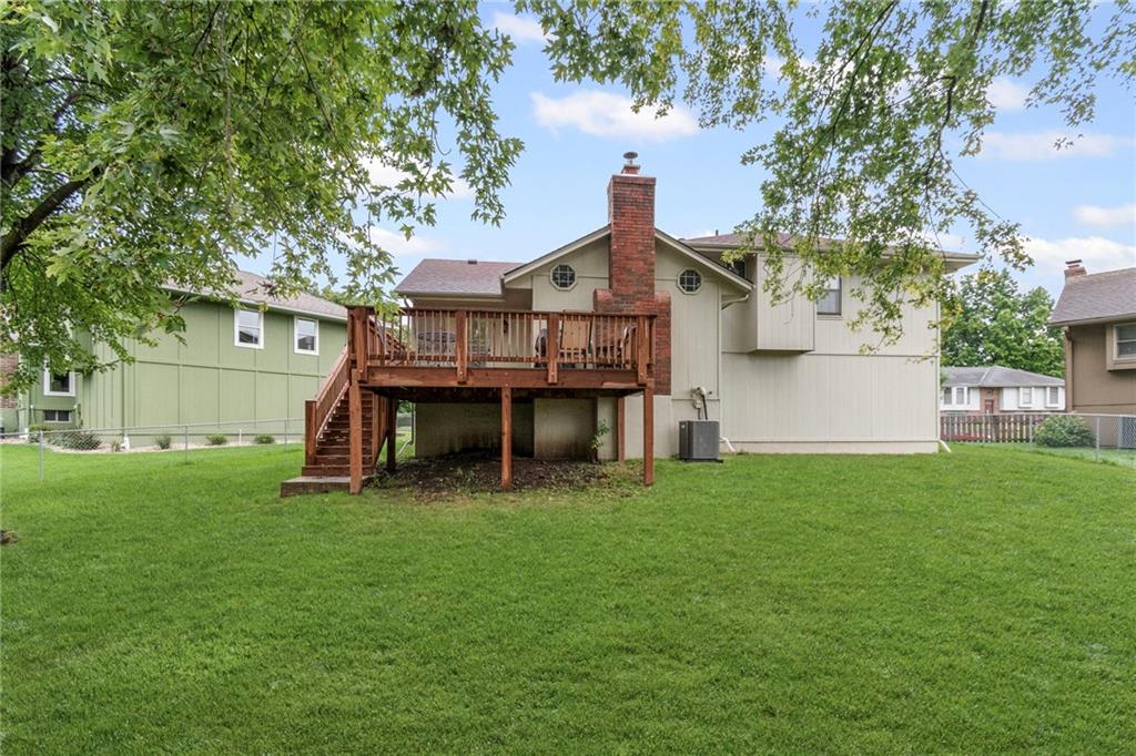 This Lee's Summit gem will win you over! Nestled in a cul-de-sac with mature landscaping and beautiful, winged brick detail. Kitchen features freshly painted cabinetry, window ledge perfect for plants, all appliances stay, plenty of counter space, eat-in kitchen space, as well as a dining room. Charming living room with cozy brick wood-burning fireplace, built-in shelving, vaulted ceiling with wood beam. Make your way to the upper level to find the full hall bathroom and two additional bedrooms on your way to your very own Primary Owner's Suite. Suite complete with walk-in closet, tray ceiling, and gorgeous remodeled bathroom. Spacious lower level offers ample storage. Extra deep garage with room for hobbies. Tree shaded backyard with large deck perfect for fall BBQs. Features newer furnace, AC, & deck. Roof is only 5 yrs old. Amazing location near parks, recreational options, restaurants, shopping, easy highway access, and highly rated schools. It's more than just a house, it's a home for creating memories!