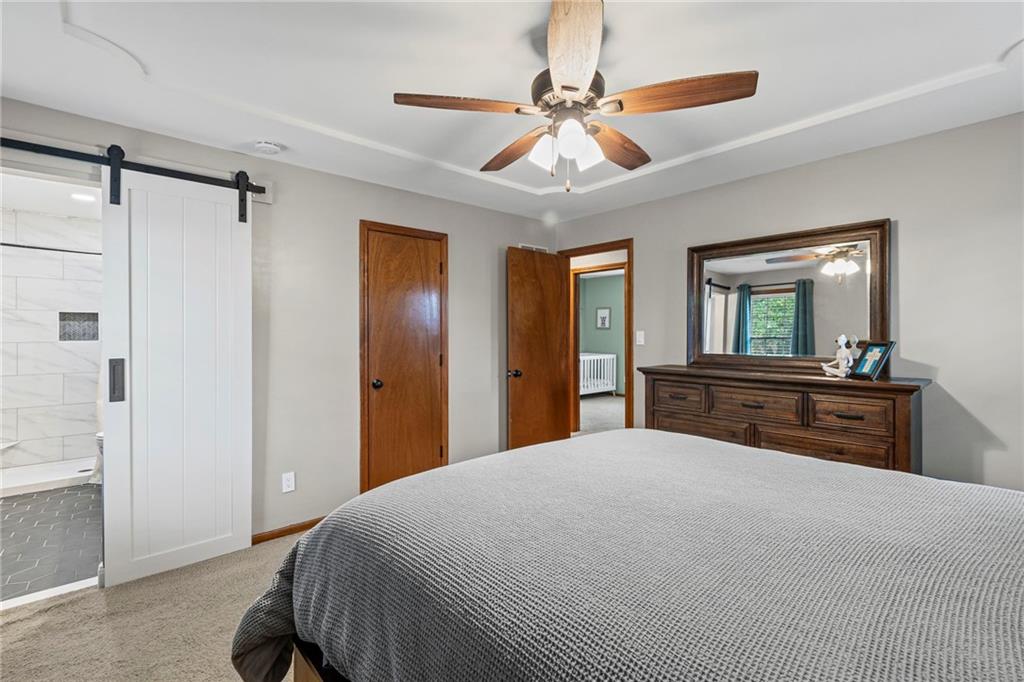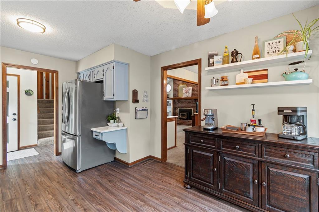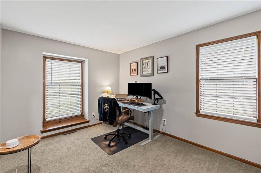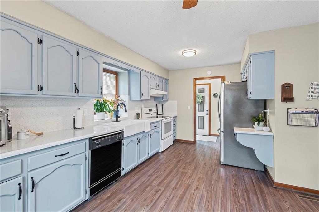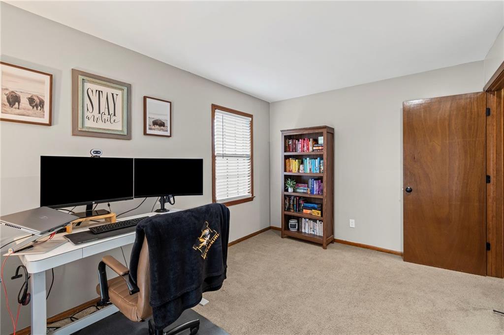 This Lee's Summit gem will win you over! Nestled in a cul-de-sac with mature landscaping and beautiful, winged brick detail. Kitchen features freshly painted cabinetry, window ledge perfect for plants, all appliances stay, plenty of counter space, eat-in kitchen space, as well as a dining room. Charming living room with cozy brick wood-burning fireplace, built-in shelving, vaulted ceiling with wood beam. Make your way to the upper level to find the full hall bathroom and two additional bedrooms on your way to your very own Primary Owner's Suite. Suite complete with walk-in closet, tray ceiling, and gorgeous remodeled bathroom. Spacious lower level offers ample storage. Extra deep garage with room for hobbies. Tree shaded backyard with large deck perfect for fall BBQs. Features newer furnace, AC, & deck. Roof is only 5 yrs old. Amazing location near parks, recreational options, restaurants, shopping, easy highway access, and highly rated schools. It's more than just a house, it's a home for creating memories!