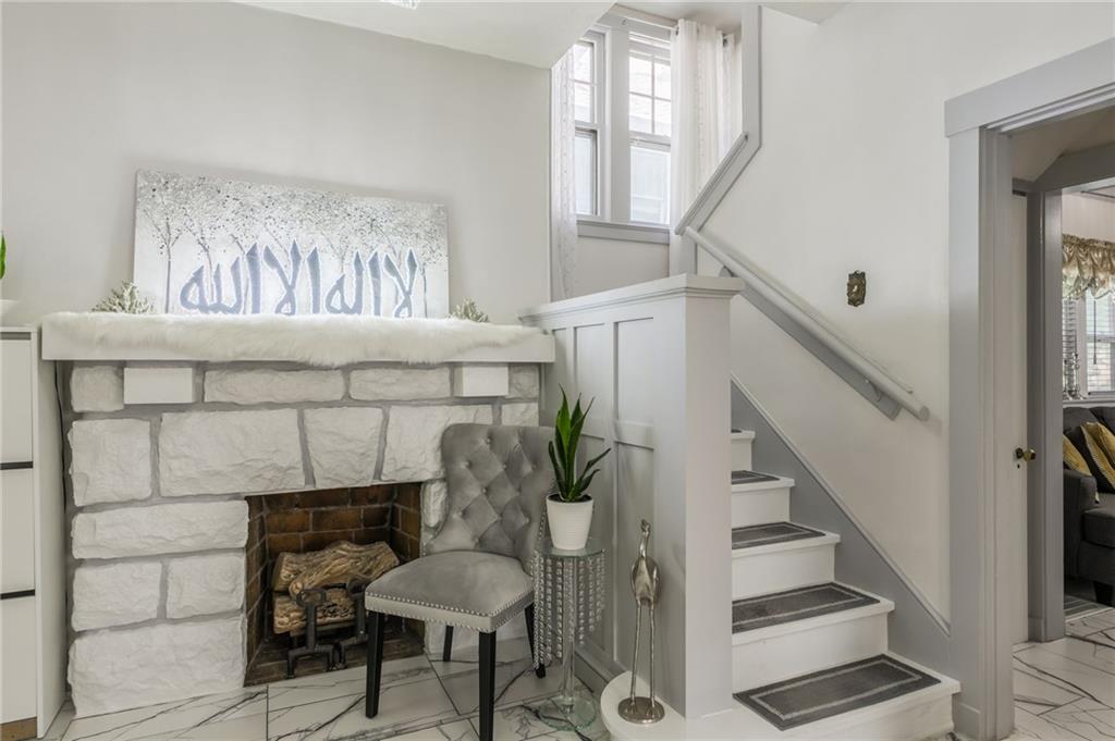 Welcome to this beautifully remodeled Shirtwaist home in Kansas City’s Historic Northeast. This classic turn-of-the-century style blends timeless character with modern updates, featuring its signature stone base, front gable, and inviting covered porch—perfect for relaxing with neighbors. Step inside to a bright foyer with a striking white masonry fireplace, marble-patterned tile, and fresh paint throughout. The main floor offers a formal living and dining room with updated lighting, bay window, and new blinds, along with a cozy family room and a stylishly remodeled ¾ bath (2024). The kitchen shines with new cabinetry, countertops, sink, faucet, and appliances (2024). There is a gas line behind the current electric stove!! Upstairs, you’ll find two comfortable bedrooms plus a spacious primary with access to a sunny three-season room that doubles as a laundry space. The second-floor bath has been refreshed, and the attic offers excellent storage or potential for finishing. The attic is already equipped with a zoned HVAC covering the attic and 2nd floor. The lower level includes a finished office area, utility space, and additional shower. Outdoor improvements feature widened driveway, updated concrete, landscaping, patio, three-sided privacy fence, detached garage, and lean-to. With extensive 2024 updates—including fresh paint throughout, remodeled baths, new kitchen, and improved outdoor spaces—this home perfectly combines historic charm with modern living. A must-see! Professional pics coming soon!!