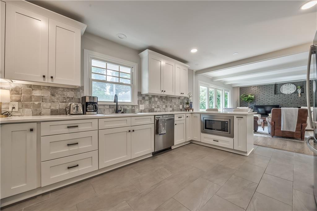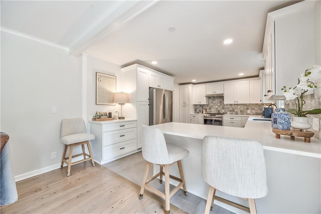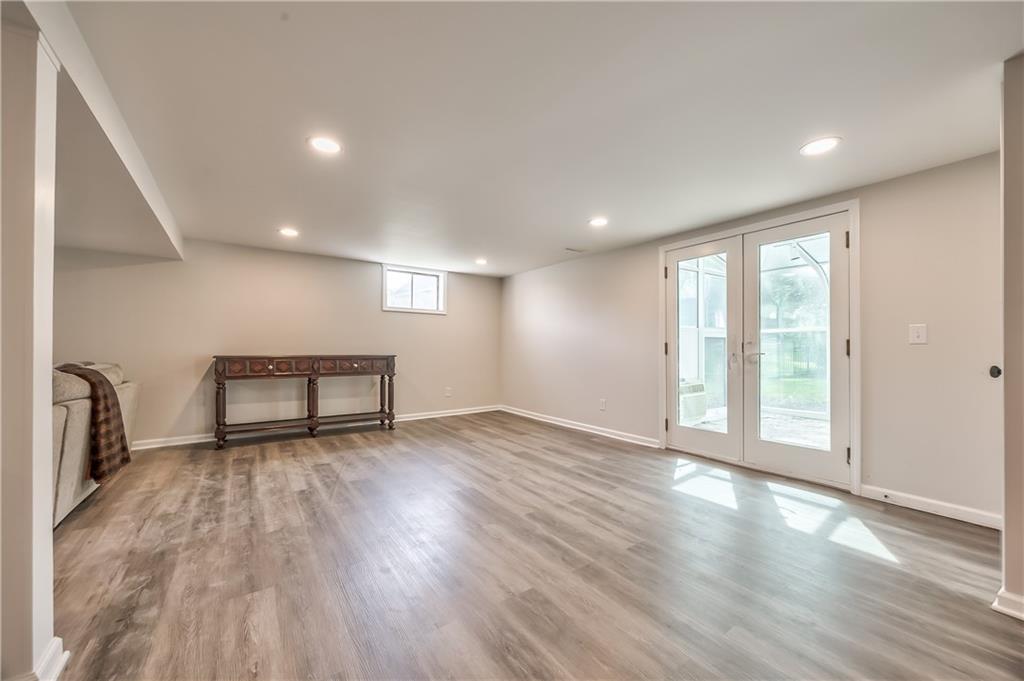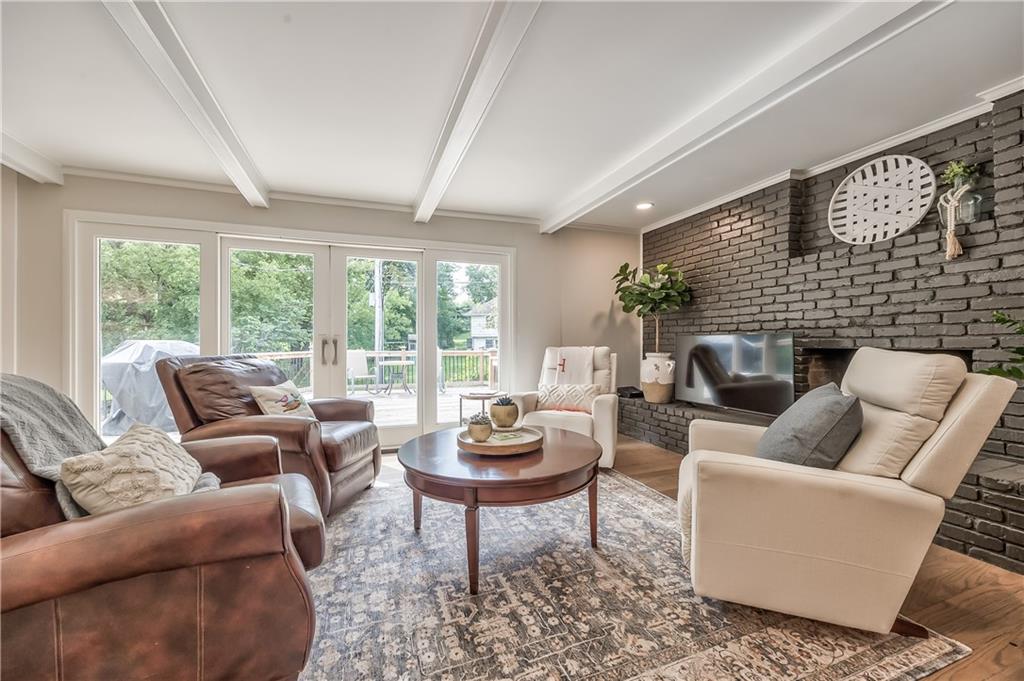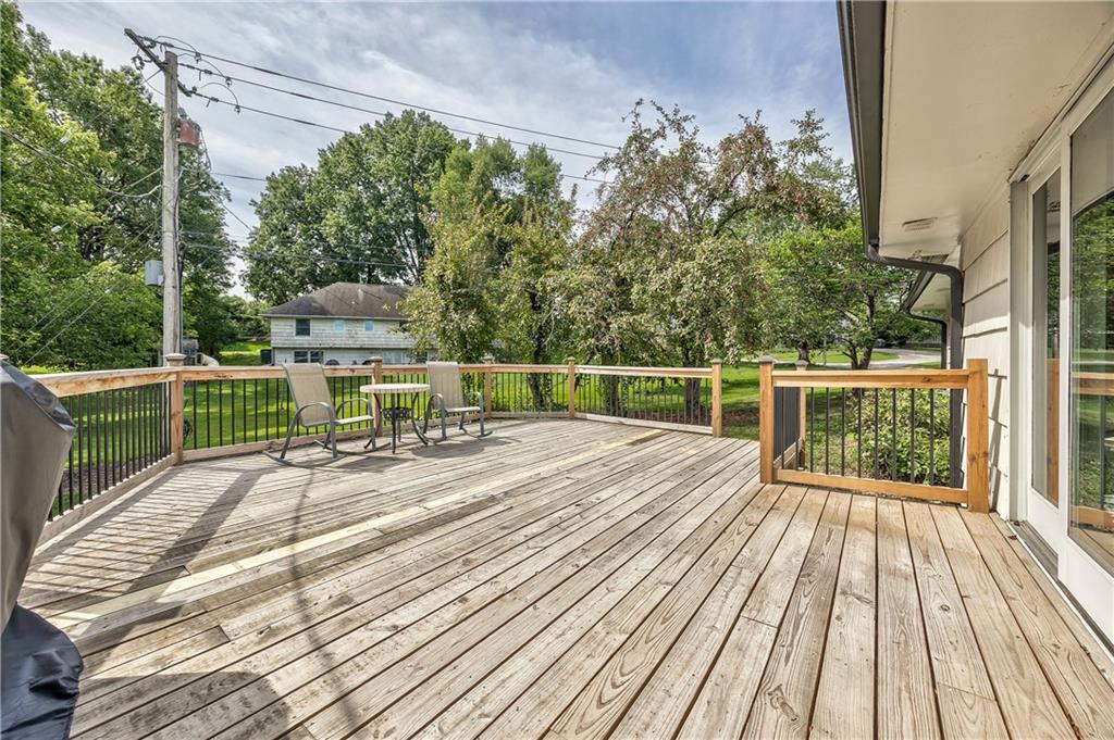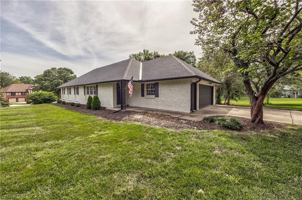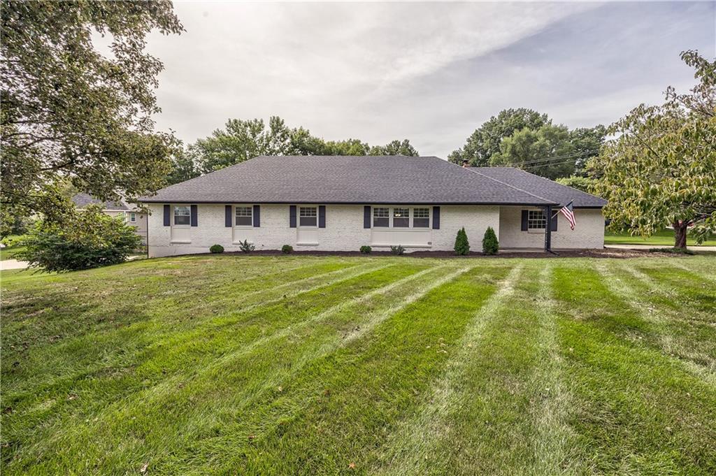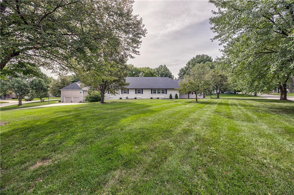 Stunning remodeled 1.5 story home featuring 4 bedrooms, 4 full bathrooms and a finished, walkout lower level. This charming home is situated on a half acre corner lot, near the Blue Hills Country Club and close to all of the best Leawood shopping and restaurants. Bright & open completely remodeled kitchen featuring quartz countertops, composite under mount sink, an abundance of new cabinetry - including pantry cabinets, soft close drawers/doors, stainless steel appliances and tiled floor. The gorgeous kitchen is adjacent to the cozy family room featuring a fireplace and steps out to the large deck and fantastic backyard...perfect for entertaining. Beautiful, refinished hardwood floors in the spacious formal living room, formal dining room, family room & main level bedrooms. This home features 2 primary suites - one on the main level and one on the second level. Both feature private, en-suite bathrooms with double vanities and showers. The second level primary bedroom features double walk-in closets. Huge, finished, walk-out lower level rec room with so many possibilities + additional full bathroom. All bathrooms completely updated with newer cabinetry, quartz countertops and modern tile. The bonus, attached greenhouse and adjacent garden area are waiting for your creativity and ideas. This space would be perfect for keeping plants green all year around. Newer roof and HWH's. This home is the perfect blend of modern living, finishes and comfort!