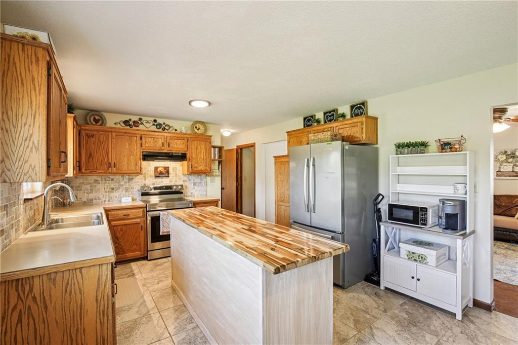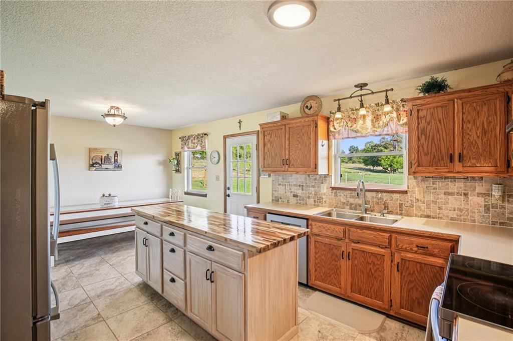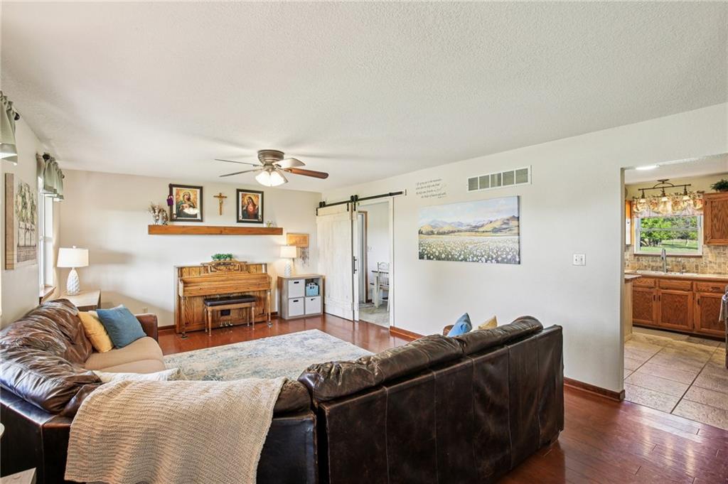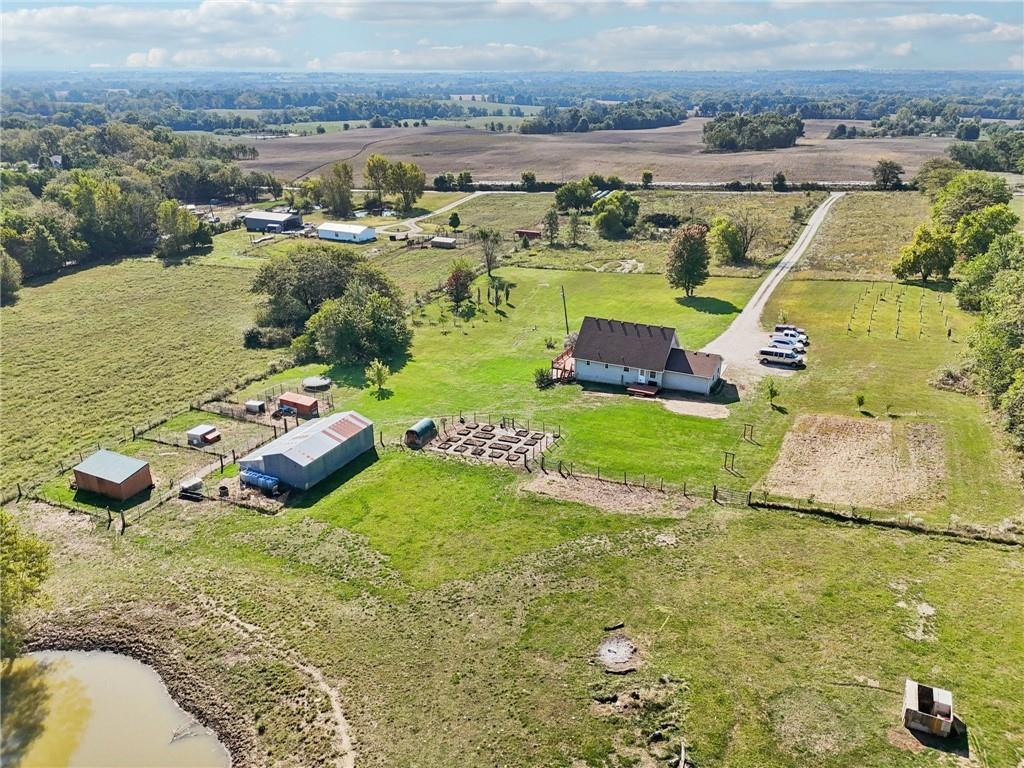 Low cost Geothermal Heating and Cooling! Acreage lifestyle with a fully stocked pond! Property offers opportunity for mini farm lifestyle. Large family room in lower level with full bath and bedroom and washer and dryer. Walkout door to allow for privacy for multi-generational living. Main floor features additional washer and dryer and primary suite. Living room and country kitchen finish out this large space. Upper level has two large bedrooms with a full bath. Lots of storage areas! Quick! Take a Look and Make this House Your New Home! Buyers to verify all measurements and claims.