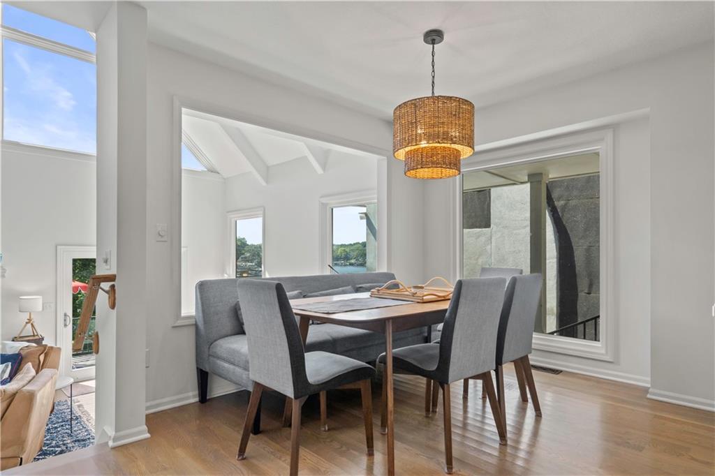 Lovely and welcoming lake home with main body views! This beautifully updated property offers ample living space and stunning lake views. Recent upgrades include new exterior and interior paint, a new dishwasher, new windows, a new roof, new flooring throughout, a new deck, a new double-tier dock with a sunning platform above. The large, open kitchen and dining area overlook the inviting living room with fireplace, perfect for entertaining or endless gazing at the scenic views. The main-level bedroom features an on-suite bath and private deck, while the primary loft bedroom provides additional breathtaking lake views. The generously sized second-level bedrooms are ideal for bunk rooms, perfect for family and friends to visit. The third bedroom has its own private stairway and bath, offering additional privacy for guests. Outside spaces include a spacious upper deck and a large lower-level patio, with easy access to the dock in deep water depth. An outside walkway ensures convenient lake access for guests. Home also features two car attached garage with spacious driveway for overflow and visitor parking. This home is ideal for a primary residence or second home and is move-in ready for lakeside enjoyment all year around!