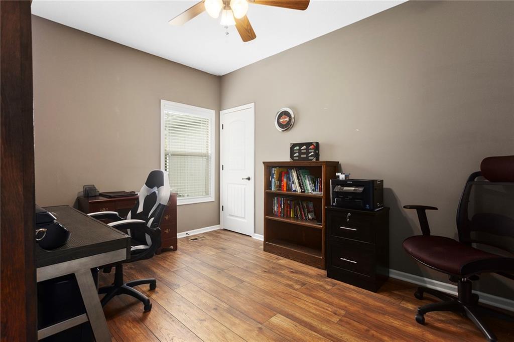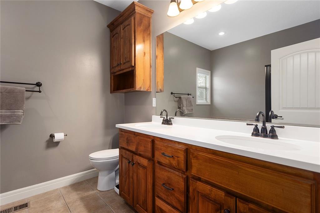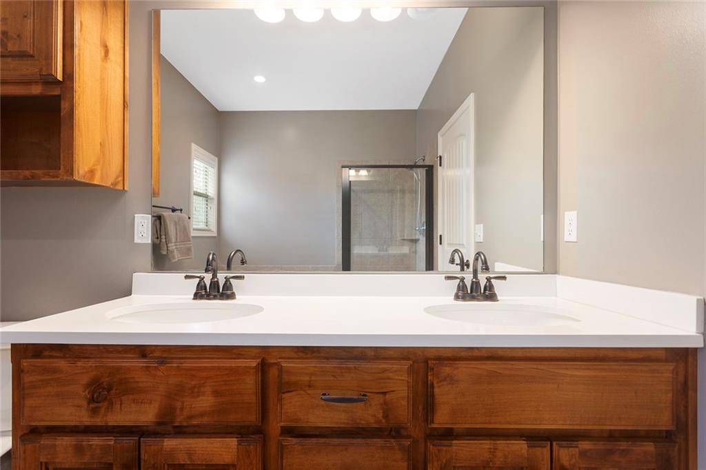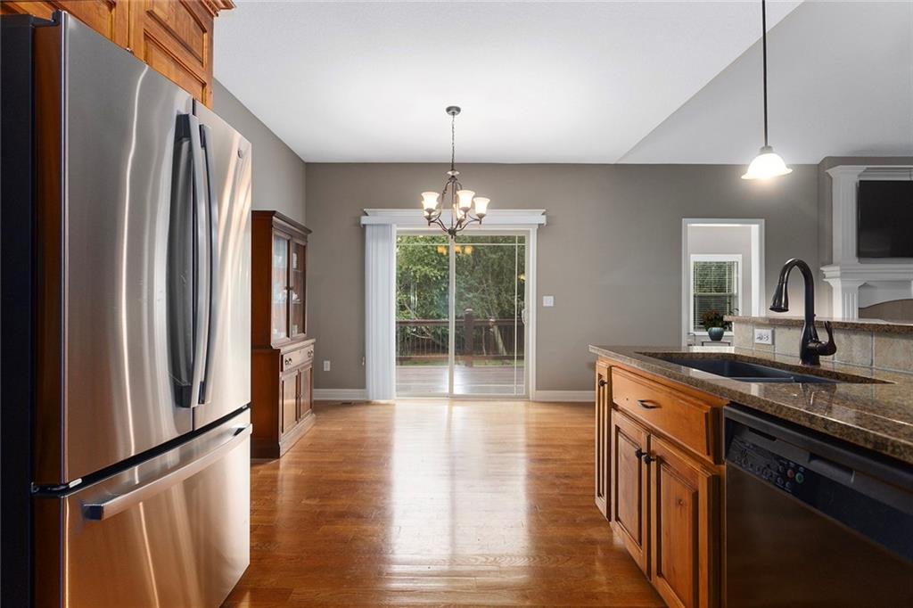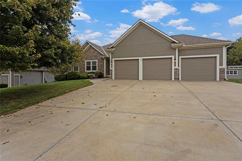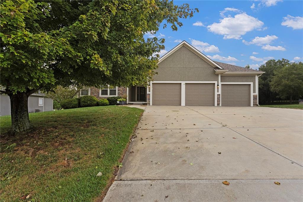 Welcome to this thoughtfully maintained 3-bedroom, 2-bath ranch nestled in the desirable Cedar Falls Community in Basehor. From the moment you step inside, you’ll appreciate the warm, open layout and thoughtful details throughout. The family room features a cozy see-through fireplace that connects seamlessly to the sunroom—perfect for year-round enjoyment. The kitchen features hardwood floors, custom cabinetry, granite countertops, a new microwave, and a refrigerator less than two years old. The spacious primary suite includes a luxurious bath with double vanities, a jetted tub, separate shower, and walk-in closet. Downstairs, the unfinished walkout basement offers endless possibilities for future expansion. Step outside and enjoy a beautifully treed lot, complete with a 12x16 outbuilding with power and lighting—ideal for a workshop, studio, or extra storage. Recent updates provide peace of mind, including a new roof (2021). Additional features include: 7-zone sprinkler system Mini-split HVAC in garage (heating & cooling) Water softener This property truly combines comfort, convenience, and natural beauty—ready for you to call it home!