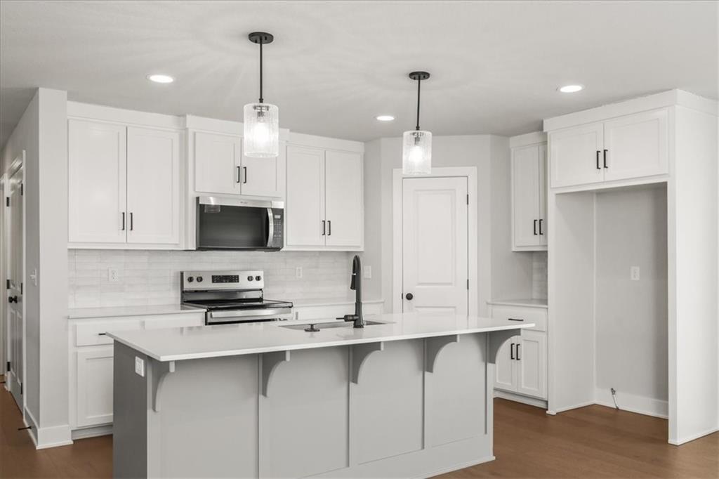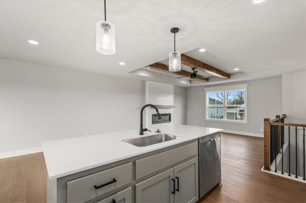 Beautiful New 4 bedroom split in Eagles Creek of Blue Springs! Lowest priced home in Eagles Creek! 4 Bedrooms, 3 Full Baths, Finished Family Room in lower level. Beautiful finishes throughout! Spacious dining area ready for a large table! Laundry on main. Inground sprinker system. Subdivision pool going in the 2nd phase.