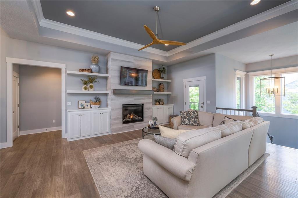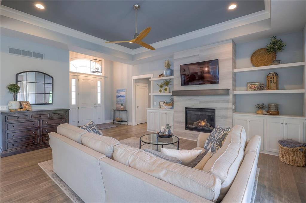 GOLF COURSE COMMUNITY! WELCOME HOME to this stunning Reverse 1.5 story patio villa Loaded with High-End Upgrades. Nestled at the end of a quiet cul-de-sac. Luxury touches in every room! The open-concept great room stuns with a gorgeous fireplace and built-in bookcases with floating shelving. This home has been incredibly loved and meticulously maintained. Soaring ceilings and doorways meet you as soon as you walk in the front door. BASK in the natural light as it floods in from all the windows. Designer Kitchen is a chef's dream with granite countertops, massive island, stainless steel appliances and a WALK-IN PANTRY. Breakfast room is perfect for all size gatherings of family and friends. Dreamy Primary suite offers treetop views, custom finishes, soaker tub, and the walk-in closet of your DREAMS! Beautifully finished WALK OUT basement includes 2 spacious daylight bedrooms and a full bath. Perfect space for entertaining with this full bar, Cozy Family room, Game area and full wall of windows. Suspended Garage area in basement makes for a great GYM, DANCE STUDIO or WORKSHOP! Huge 3 car garage is extra deep to accommodate even more storage space. Enjoy the privacy and serenity of the wooded area beyond the backyard from the covered deck. Located in the private, maintenance-provided Cedar Creek community designed for carefree, lock and leave living - this home is truly a rare gem! Come tour it today before it is gone! This home is ready for you now just in time for the holidays. Better than new! Cedar Creek amenities: 2 pools, fishing lakes, trails, tennis, indoor basketball, clubhouse. No need to wait to build - move in and start enjoying resort-style living now! See: https://cedarcreek-kc.com/ AND https://www.shadowglen.org/ for more info!