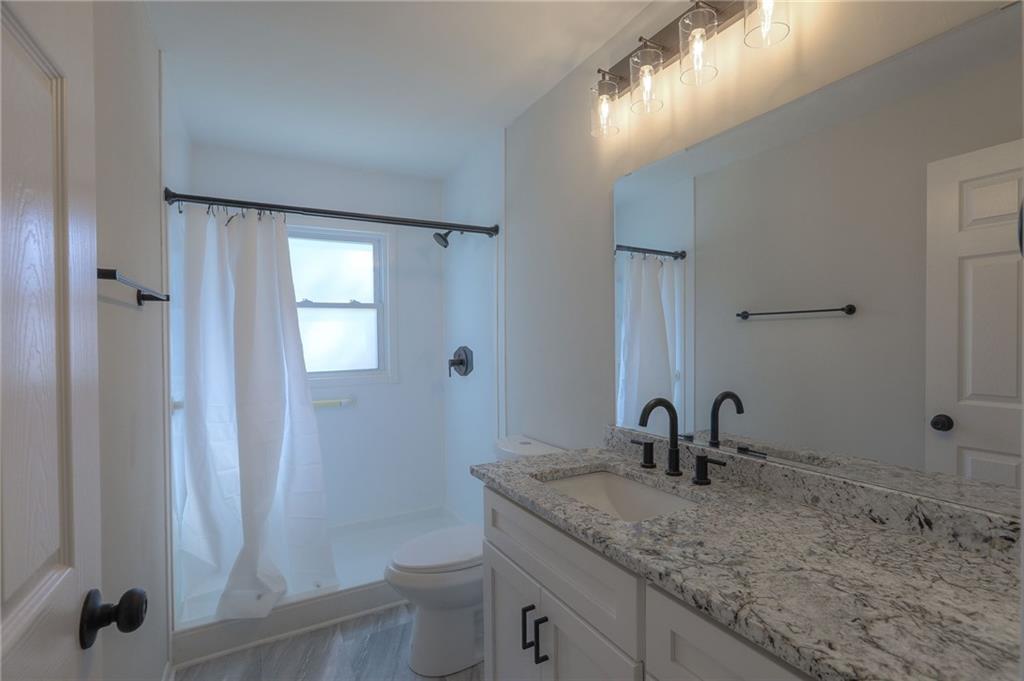 $15,000 below appraised value. This one has it all! Gorgeous remodel! New kitchen cabinets, granite countertops and stainless steel appliances. Refinished hardwood floors throughout first floor living area. All 3 bathrooms have been updated. Finished walkout lower level offers a huge finished area with a built-in bar, new carpet and pad. Fresh paint throughout. Updated light fixtures. Replacement windows, 12' x 12' deck, fenced back yard, storage shed. Nothing left to do but move in. Owner/Agent. Room measurements are approximate.